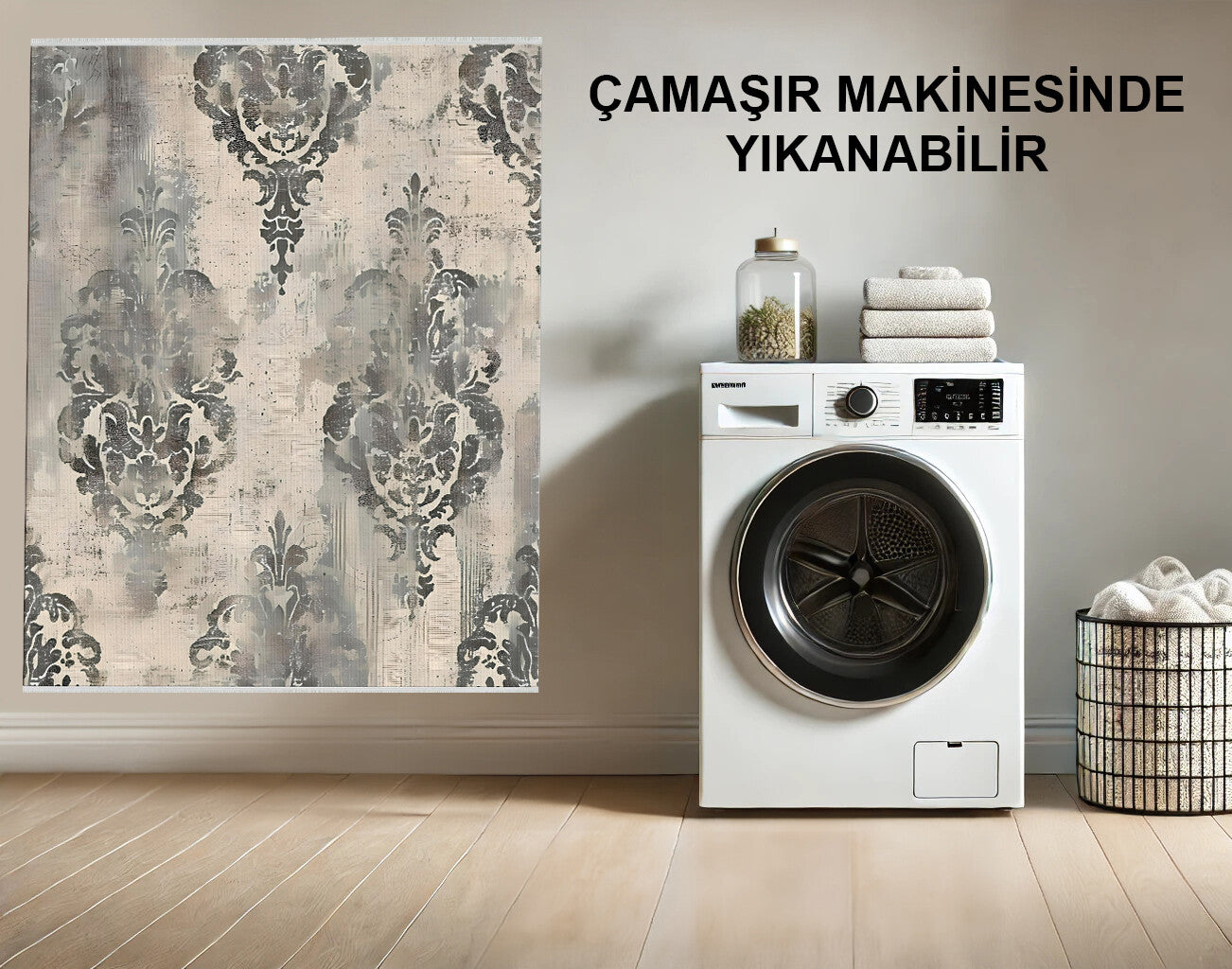 Eskitme Desenli Yıkanabilir Halı