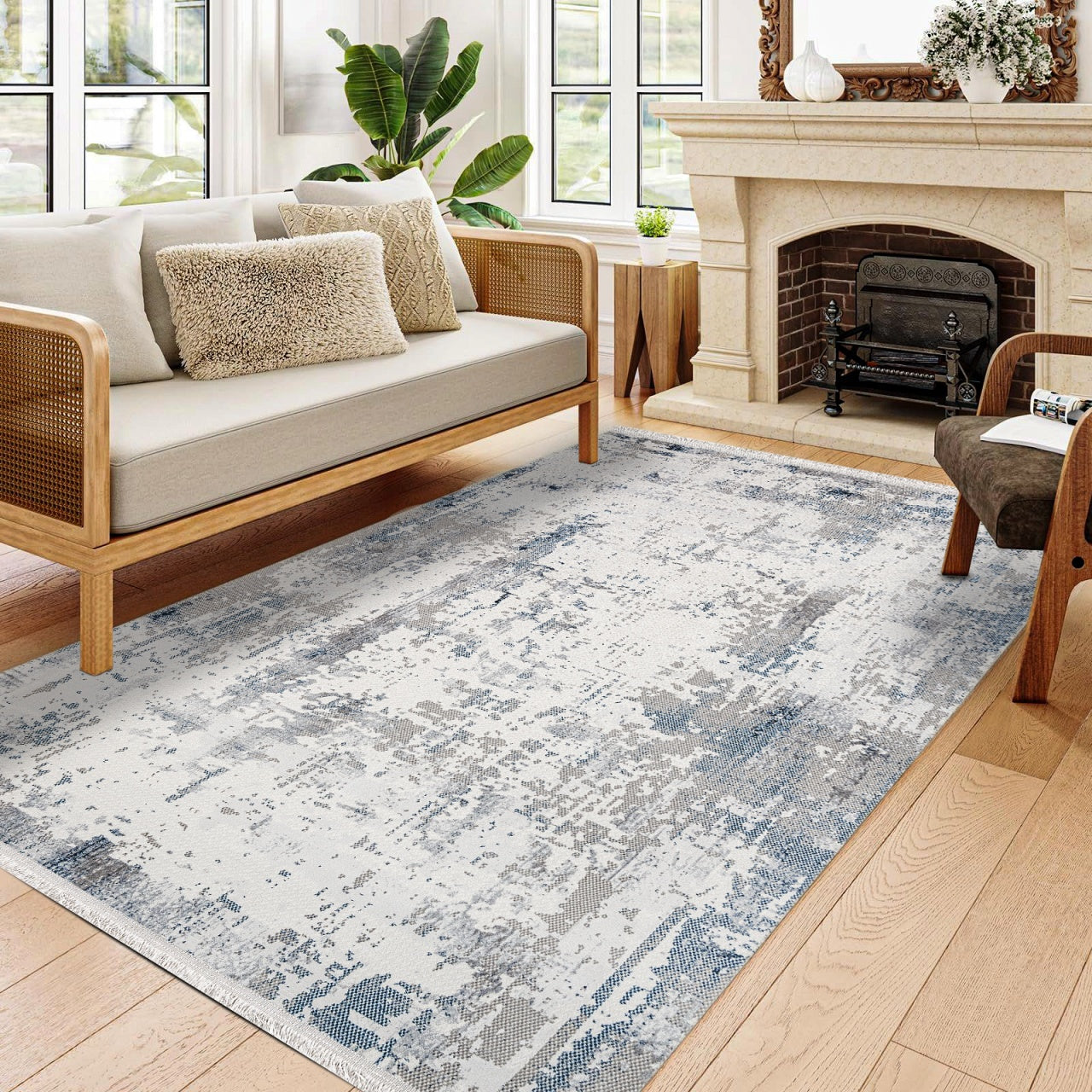 Genesise Gri Modern Polyester Makine Halısı