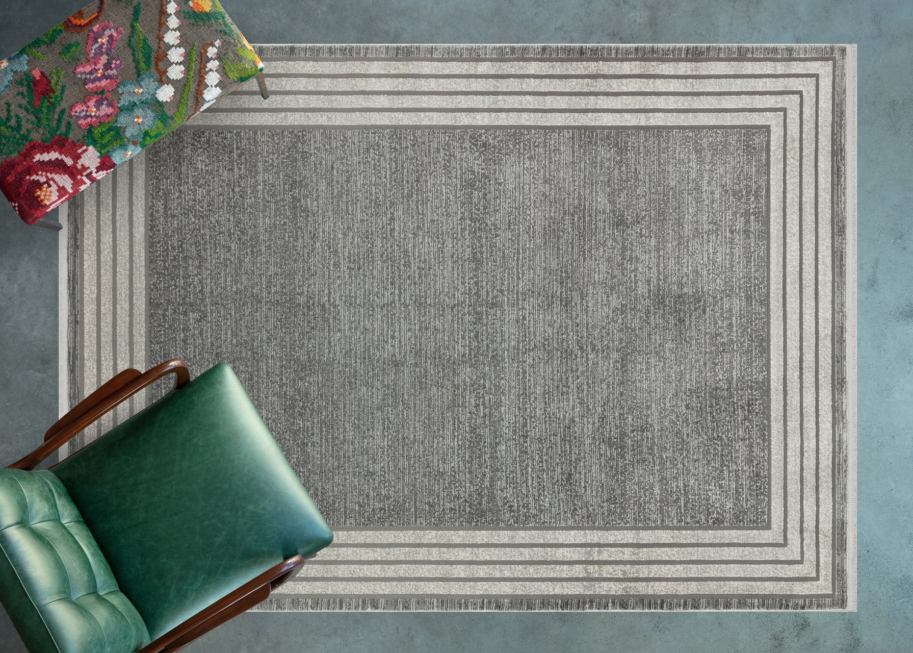 Gri Çerçeveli Modern Etnik Desenli Halı