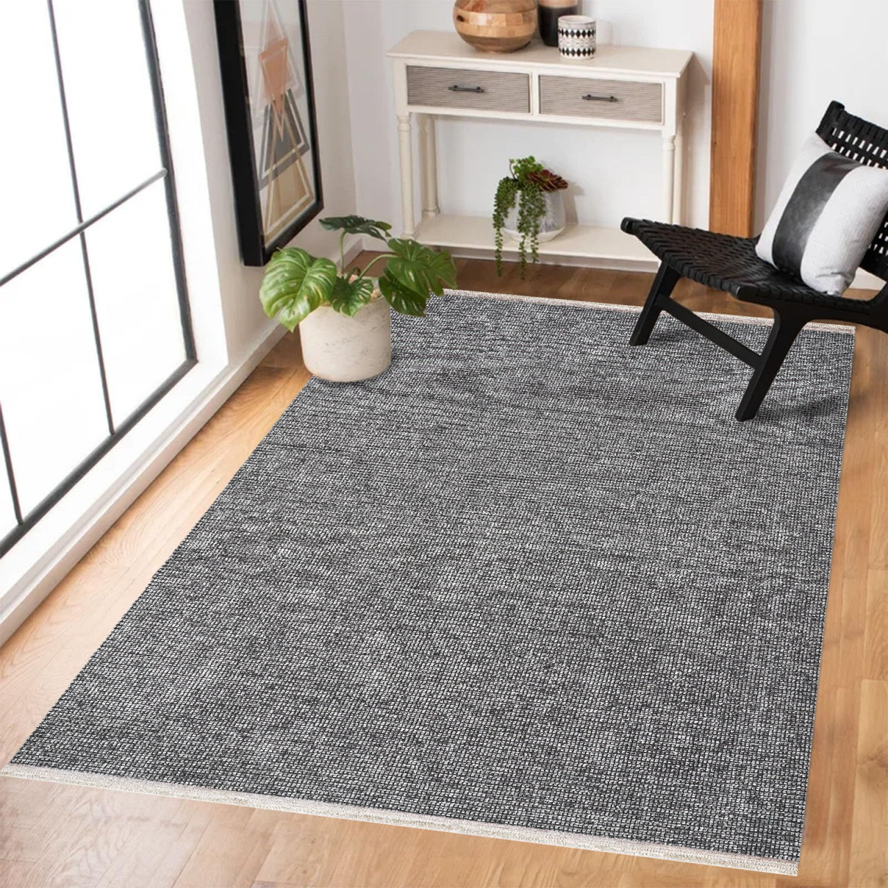 Gri Düz Modern Etnik Desenli Halı | Makinada Yıkanabilir | Hav Toz Vermez | Leke Tutmayan | Kaymaz Taban | Dijital Makine Baskı | Salon Yolluk Mutfak Halısı