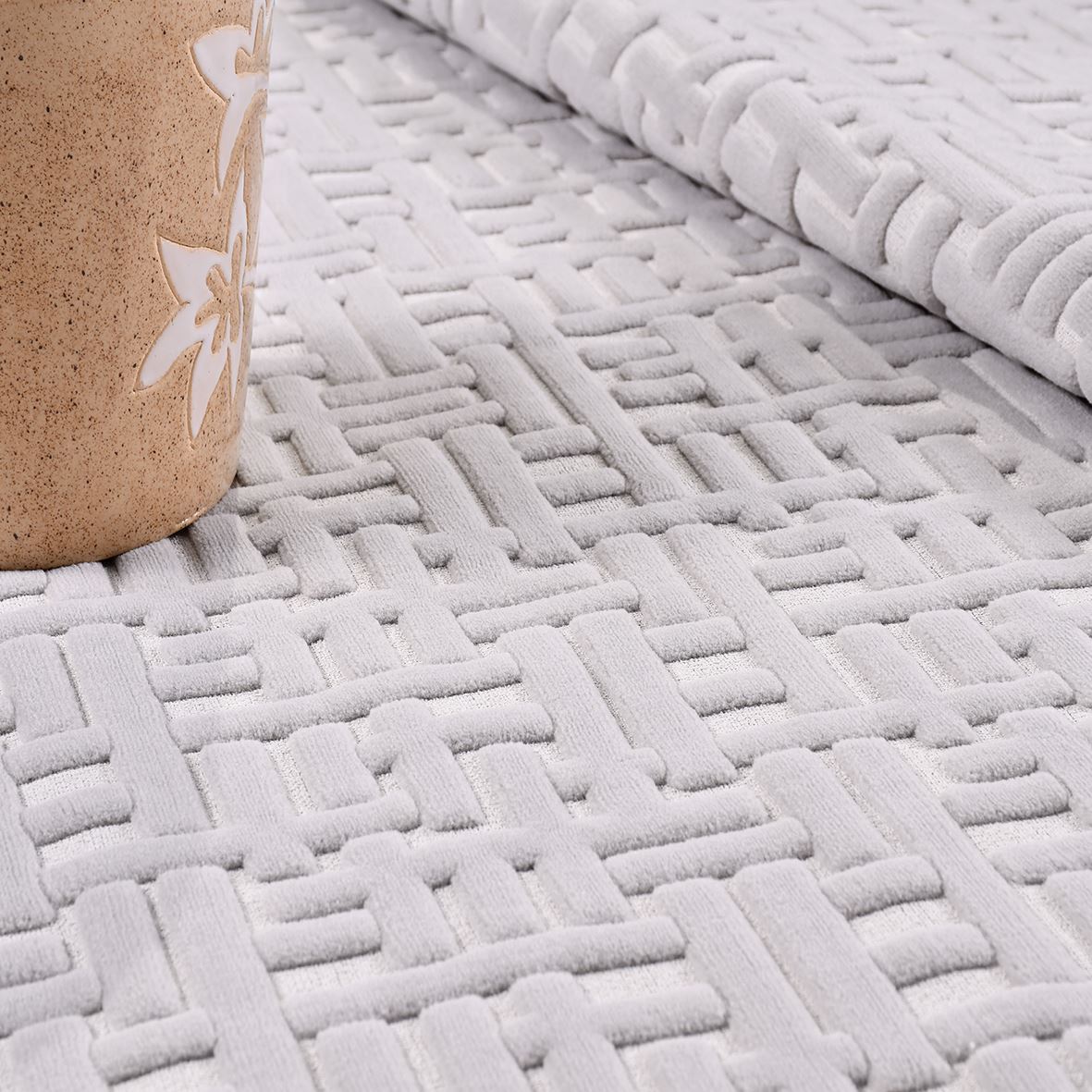 1.200.000 ilmek sıklığında, 7 mm hav yüksekliğinde, Polyester iplikten üretilmiştir.