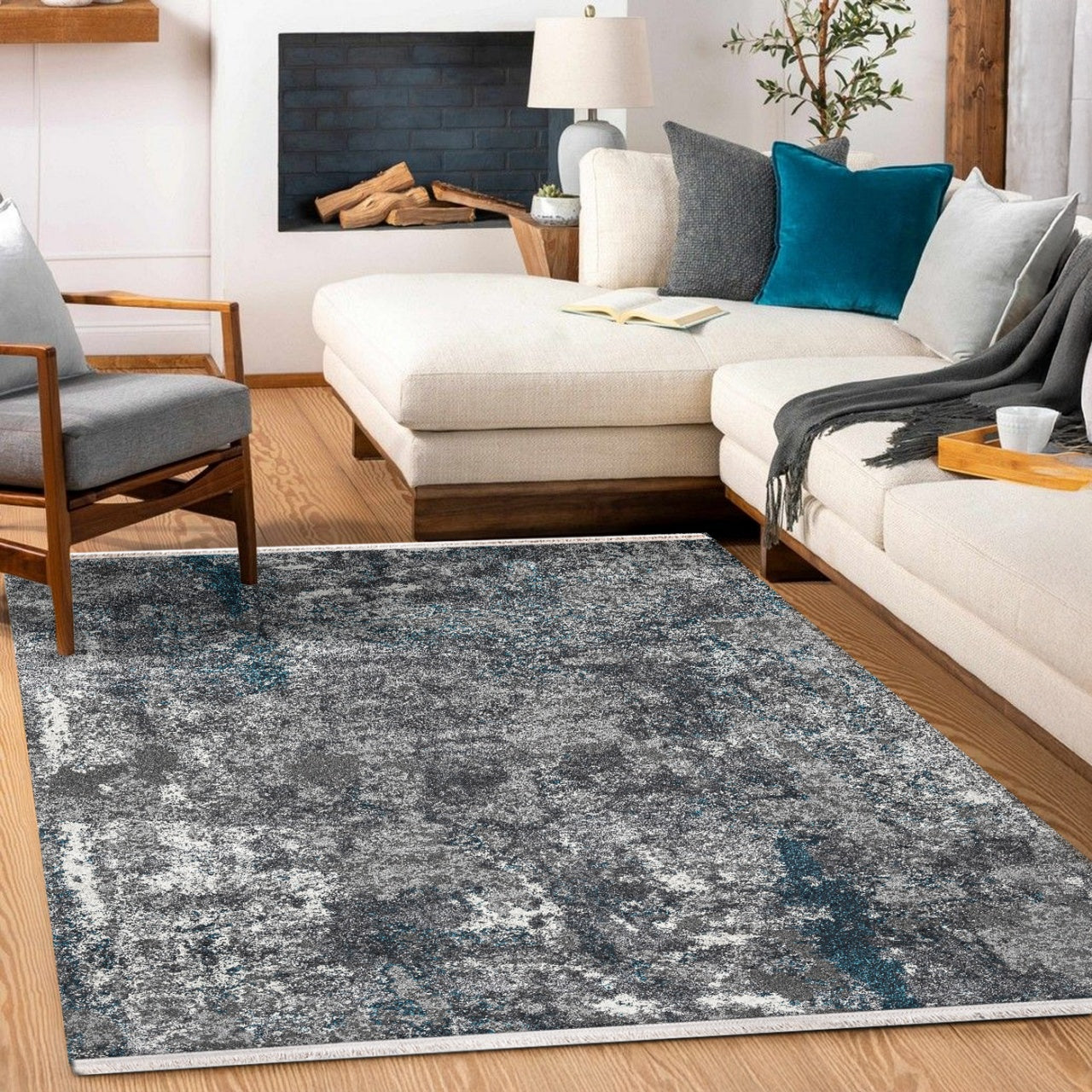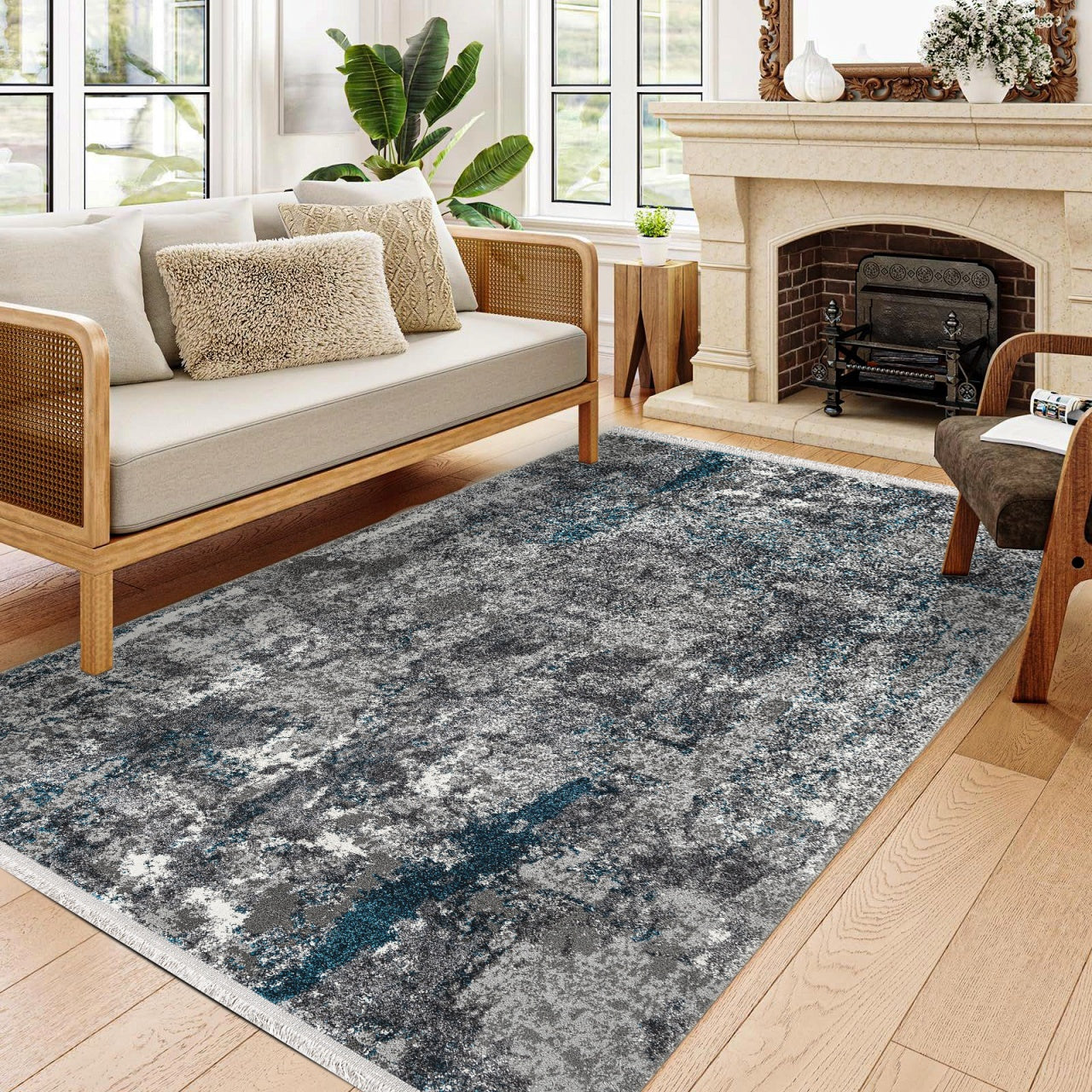 Halınet Monroe Gri Modern Pamuk Makine Halısı
