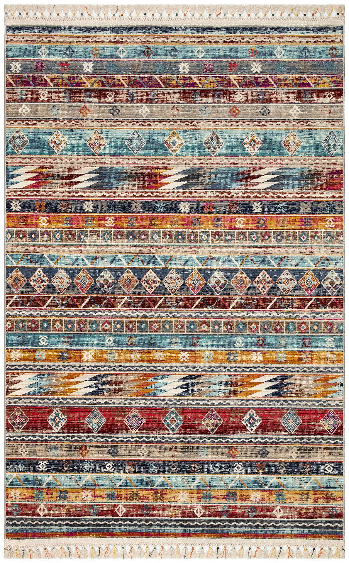 Renkli Saçaklı Halı - Etnik ve Modern Desenli Toz Vermez Makine Halısı