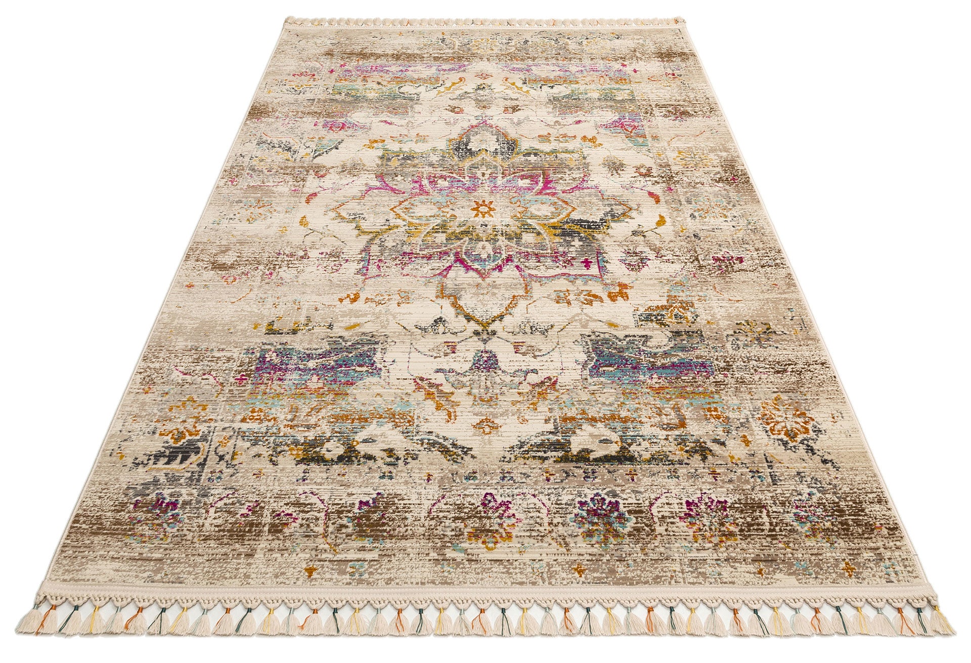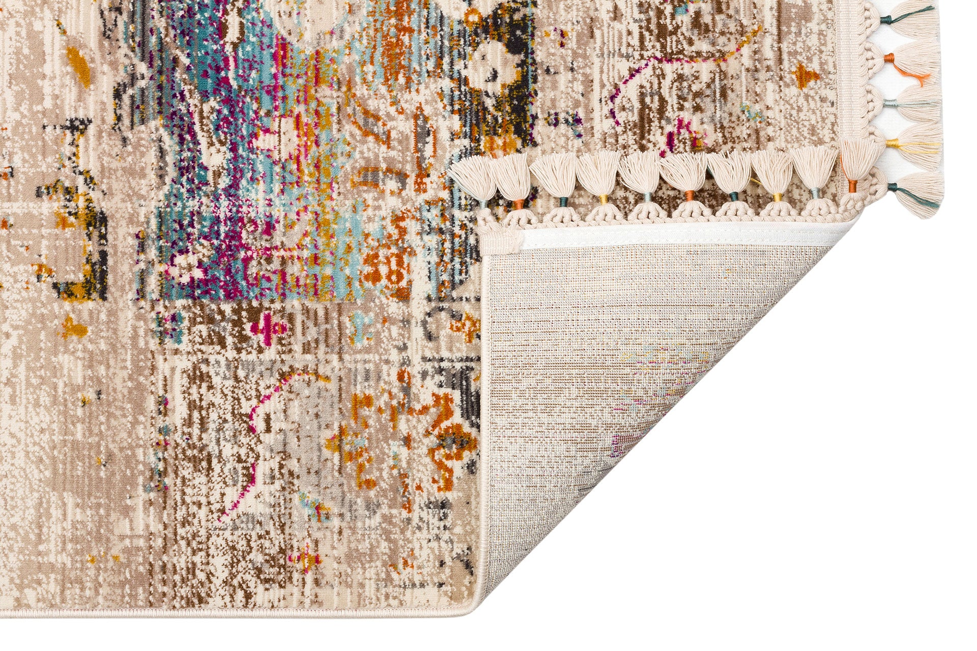 Renkli Saçaklı Halı - Etnik ve Modern Desenli Toz Vermez Makine Halısı