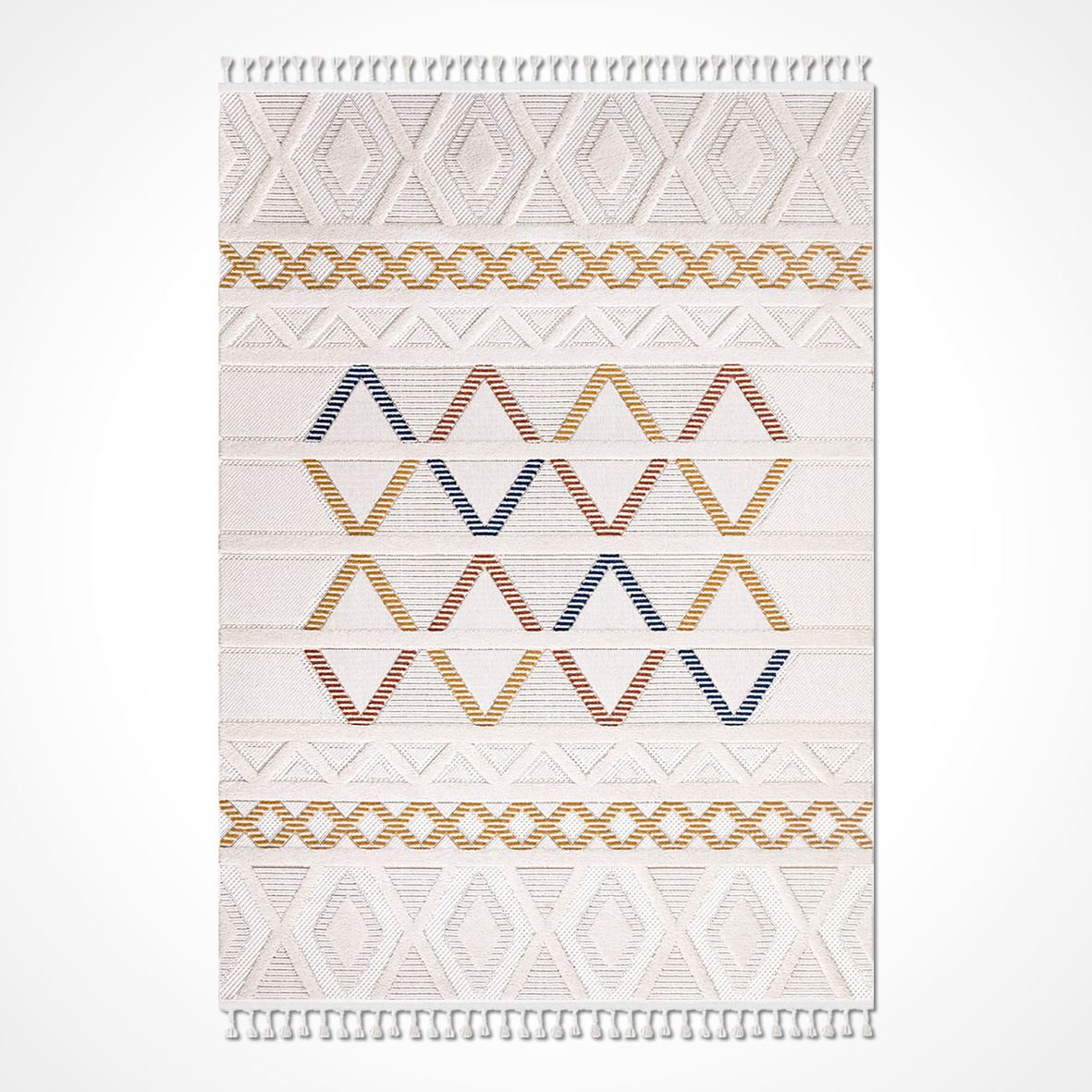 Hazela Bej Geometrik Polyester Makine Halısı