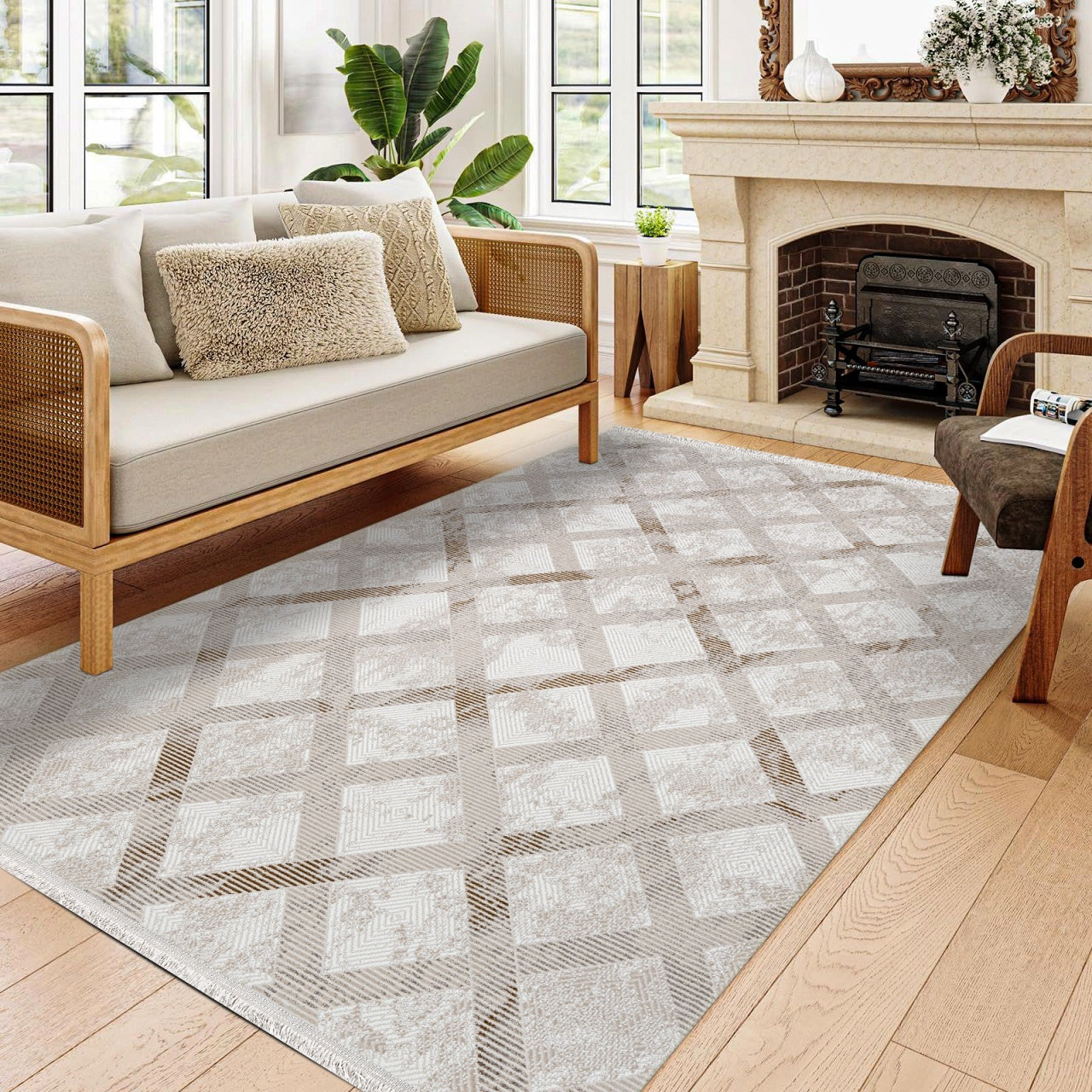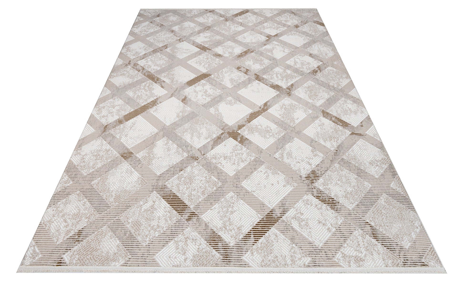 Jazlyn Krem Geometrik Polyester Makine Halısı