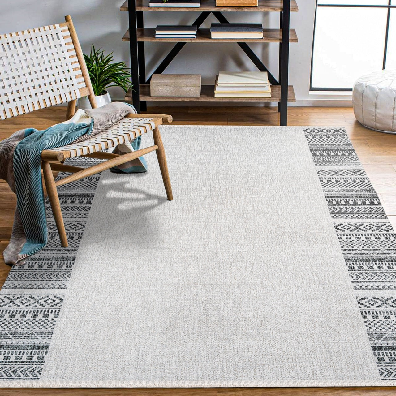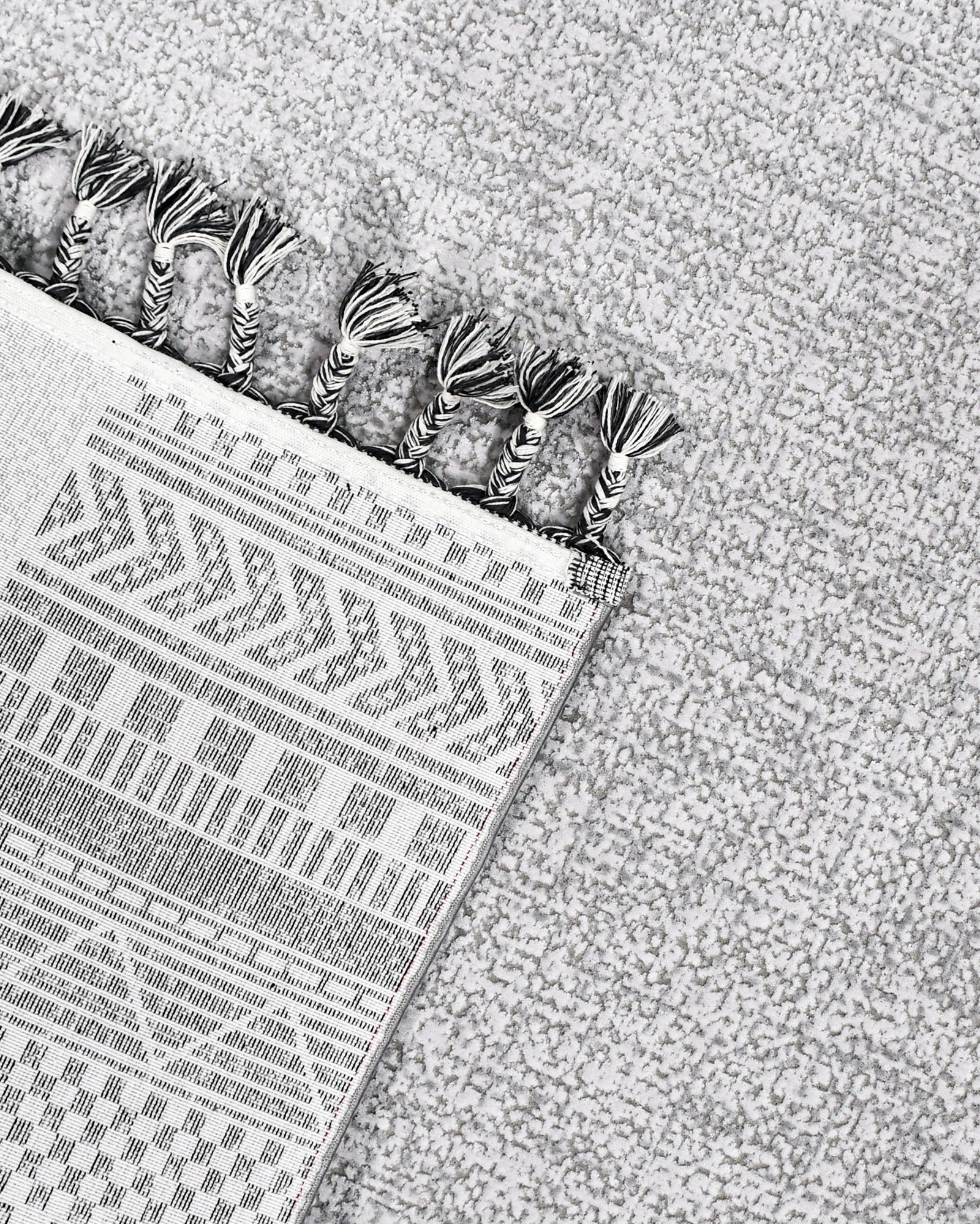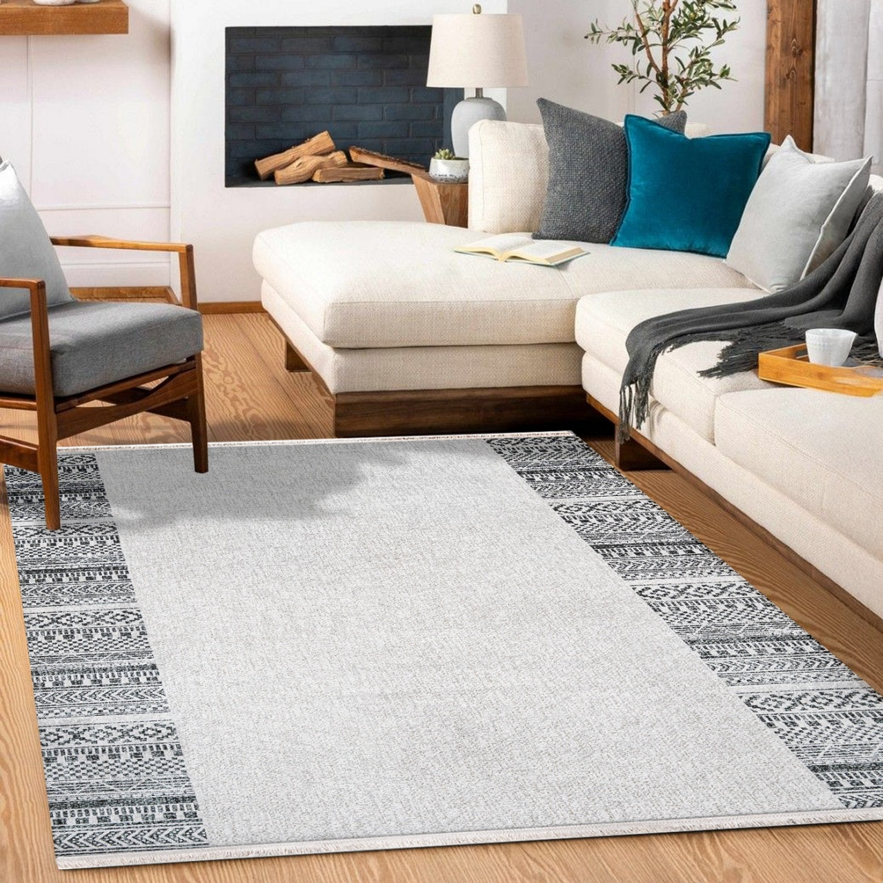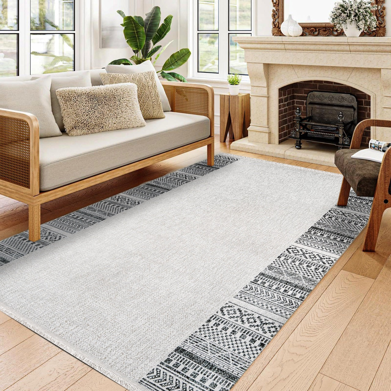 Katalina Gri Çerçeveli Triko Akrilik Makine Halısı