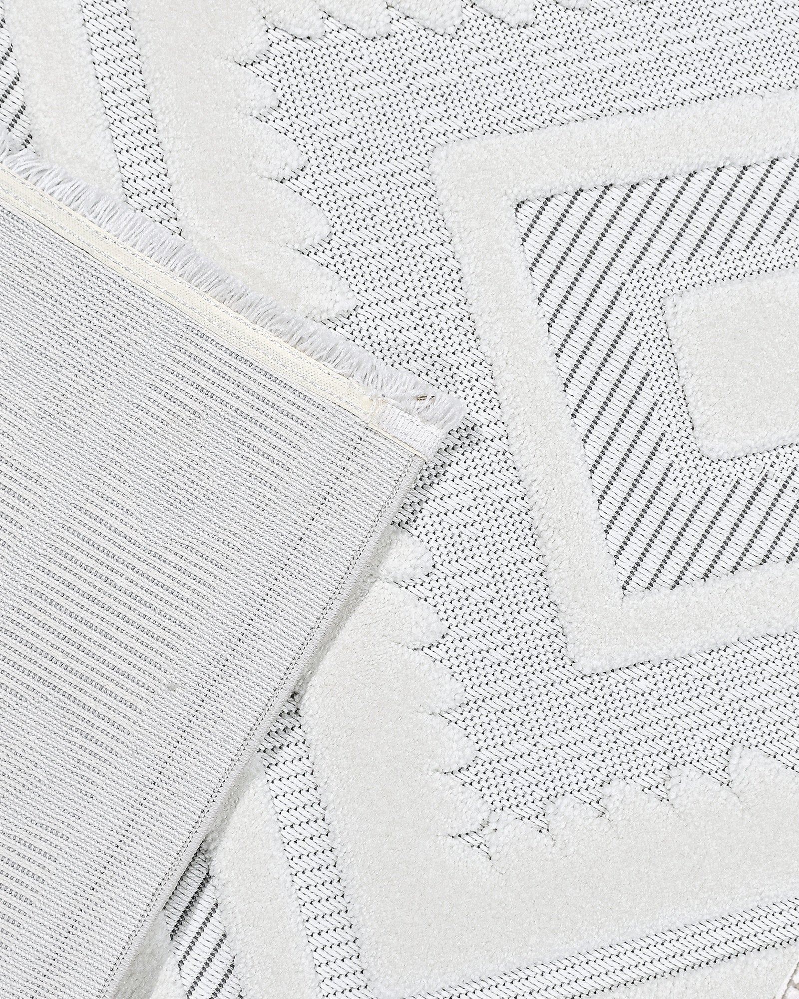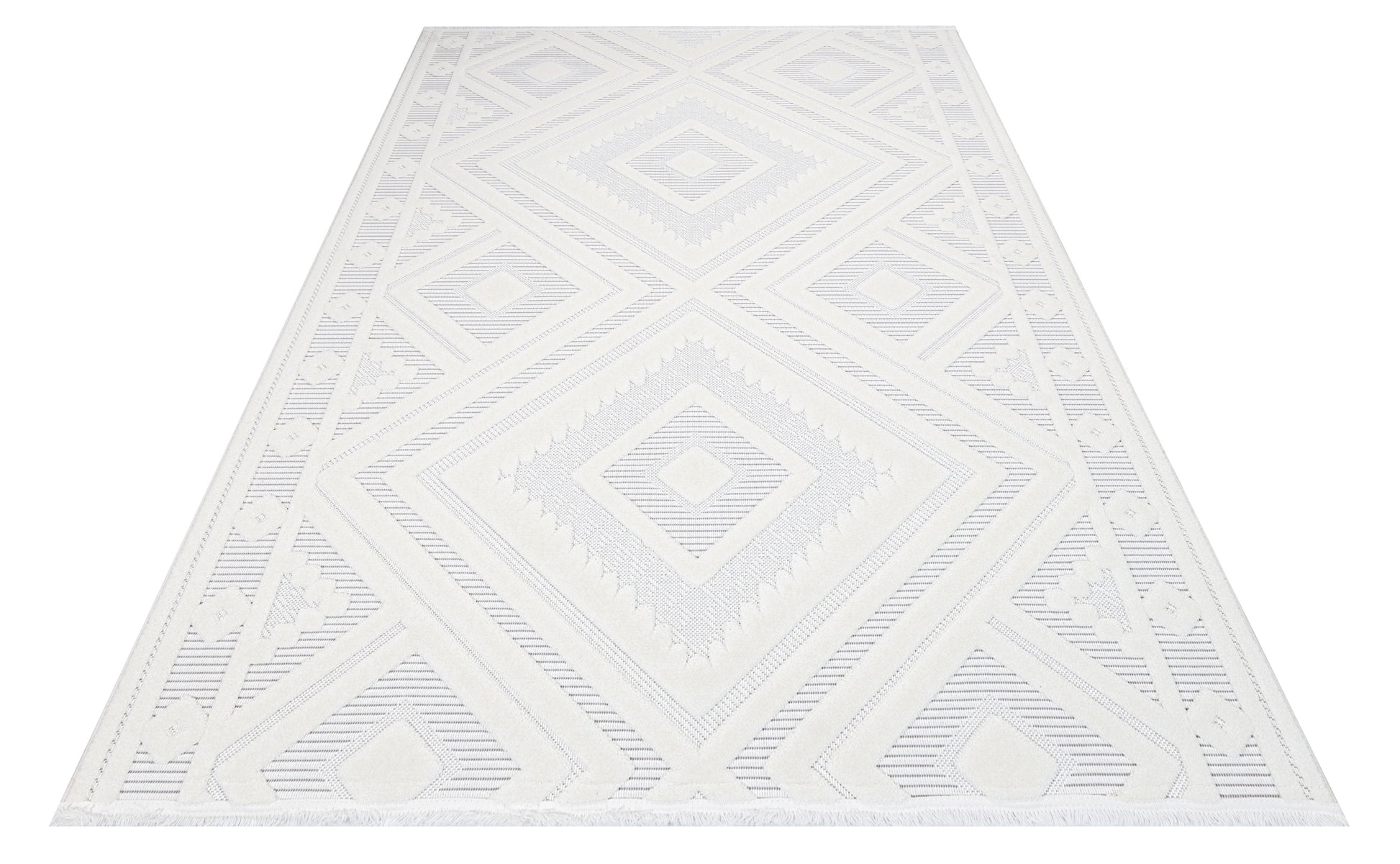 Kayla Beyaz Geometrik Polyester Makine Halısı