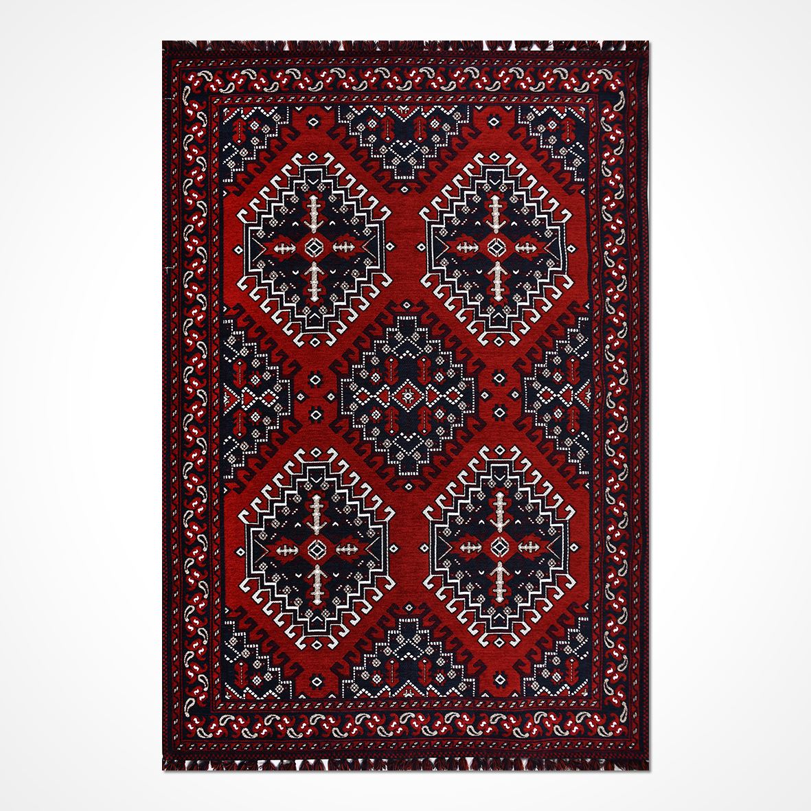 Kırmızı Çerçeveli Pamuk Makine Halısı