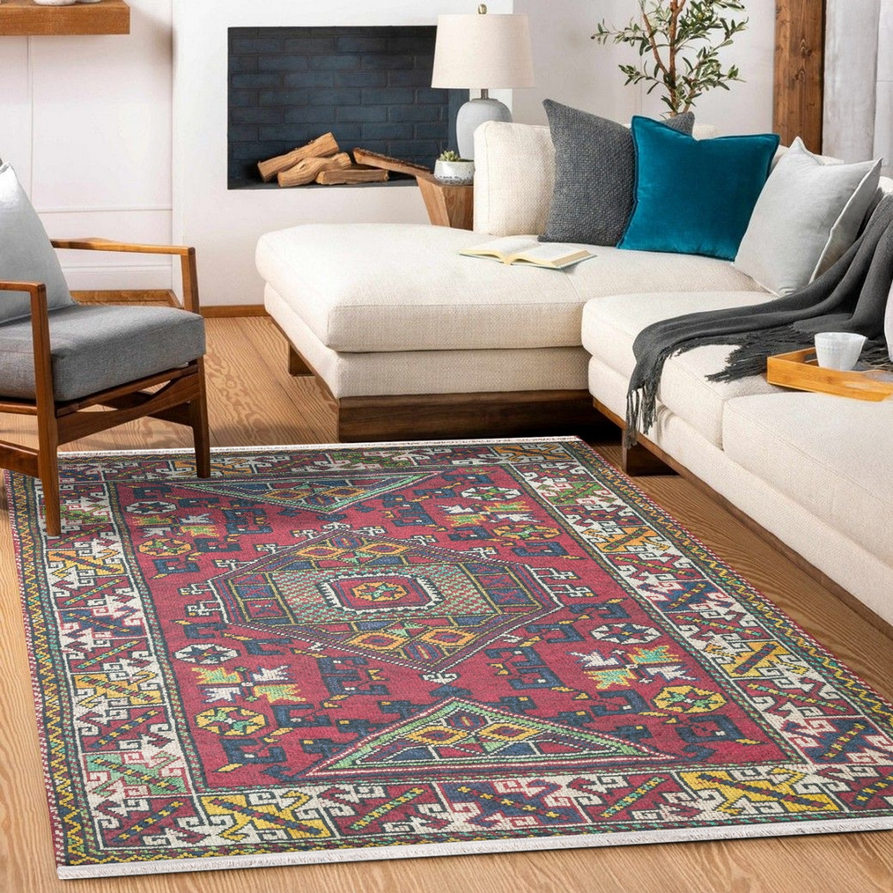 Kırmızı Göbekli Modern Etnik Desenli Halı