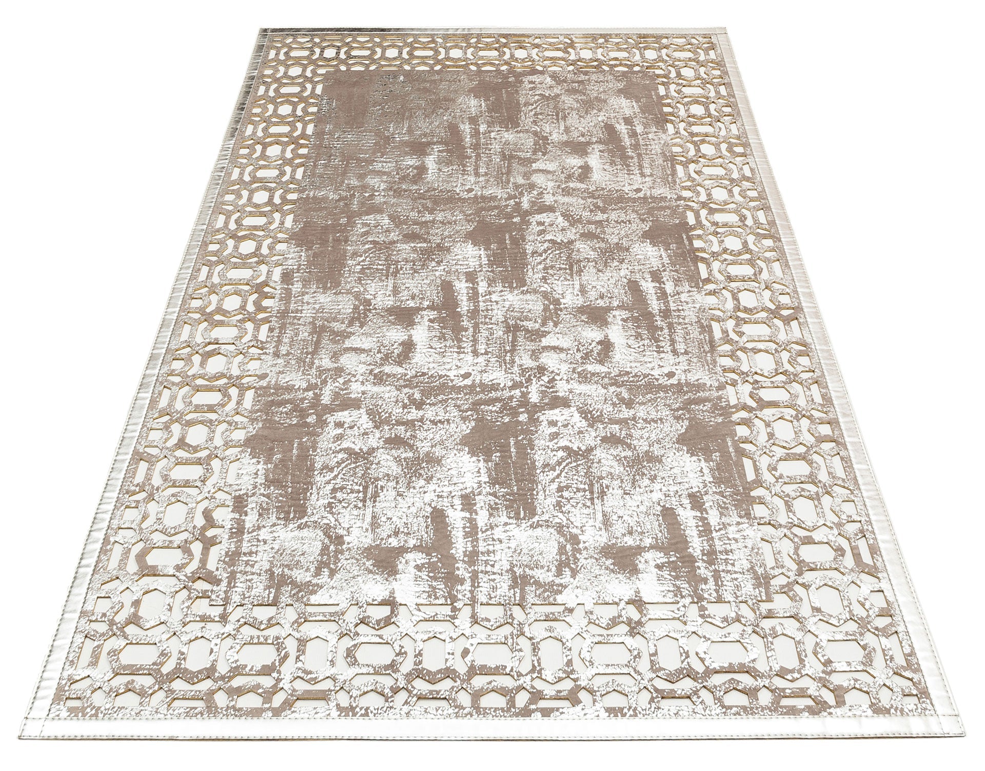 Klasik Ve Modern İşleme ve Oymaya Sahip Parlak Bordürlü Suni Deri Halı
