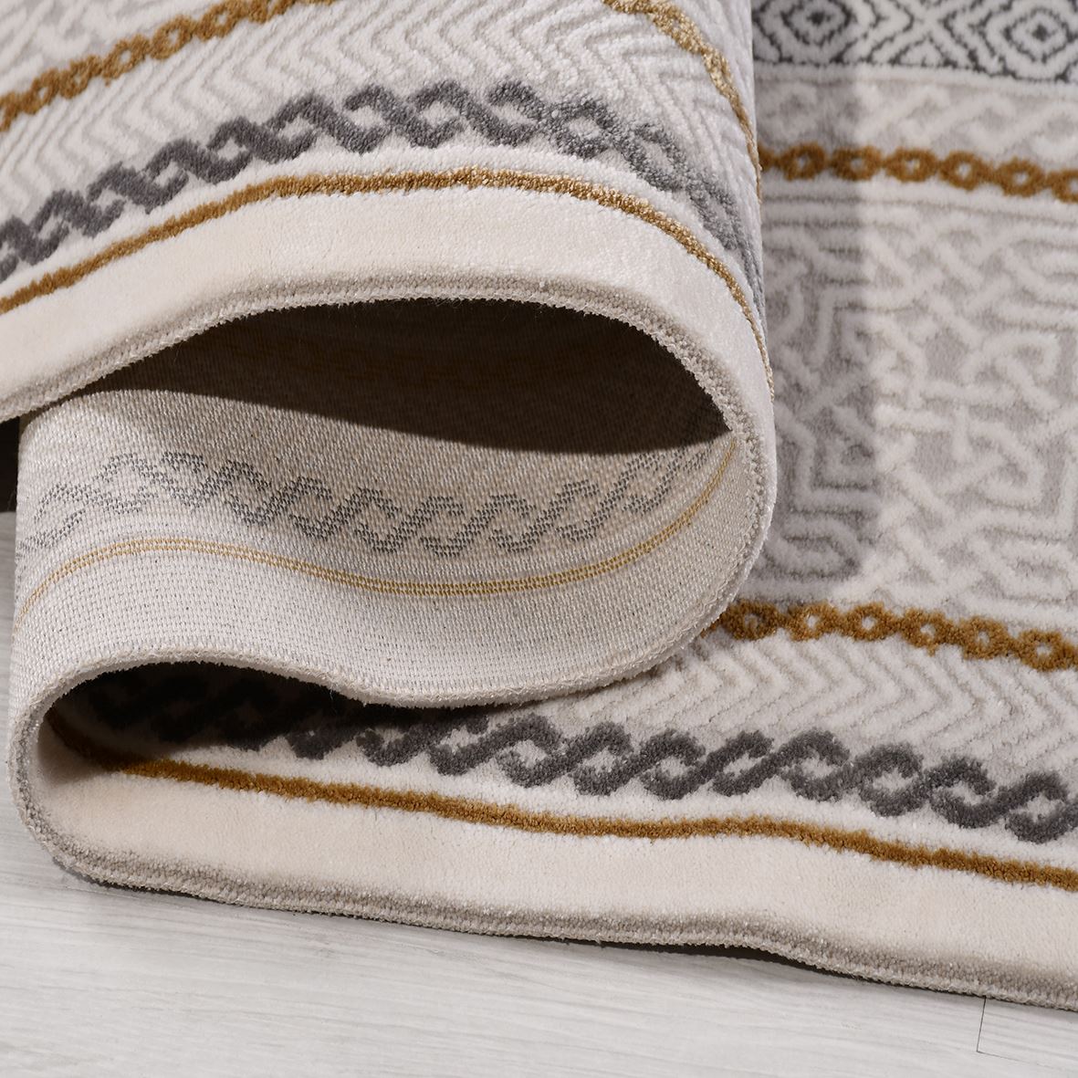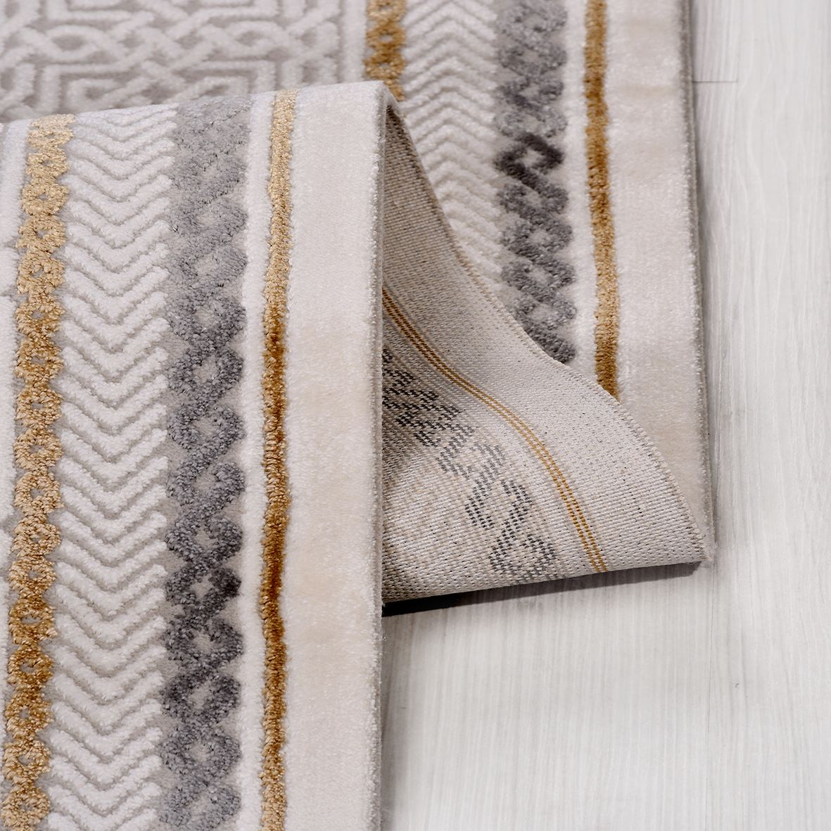 825.000 ilmek sıklığında, 7 mm hav yüksekliğinde, Pamuk atkı kullanılarak Akrilik iplikten üretilmiştir.