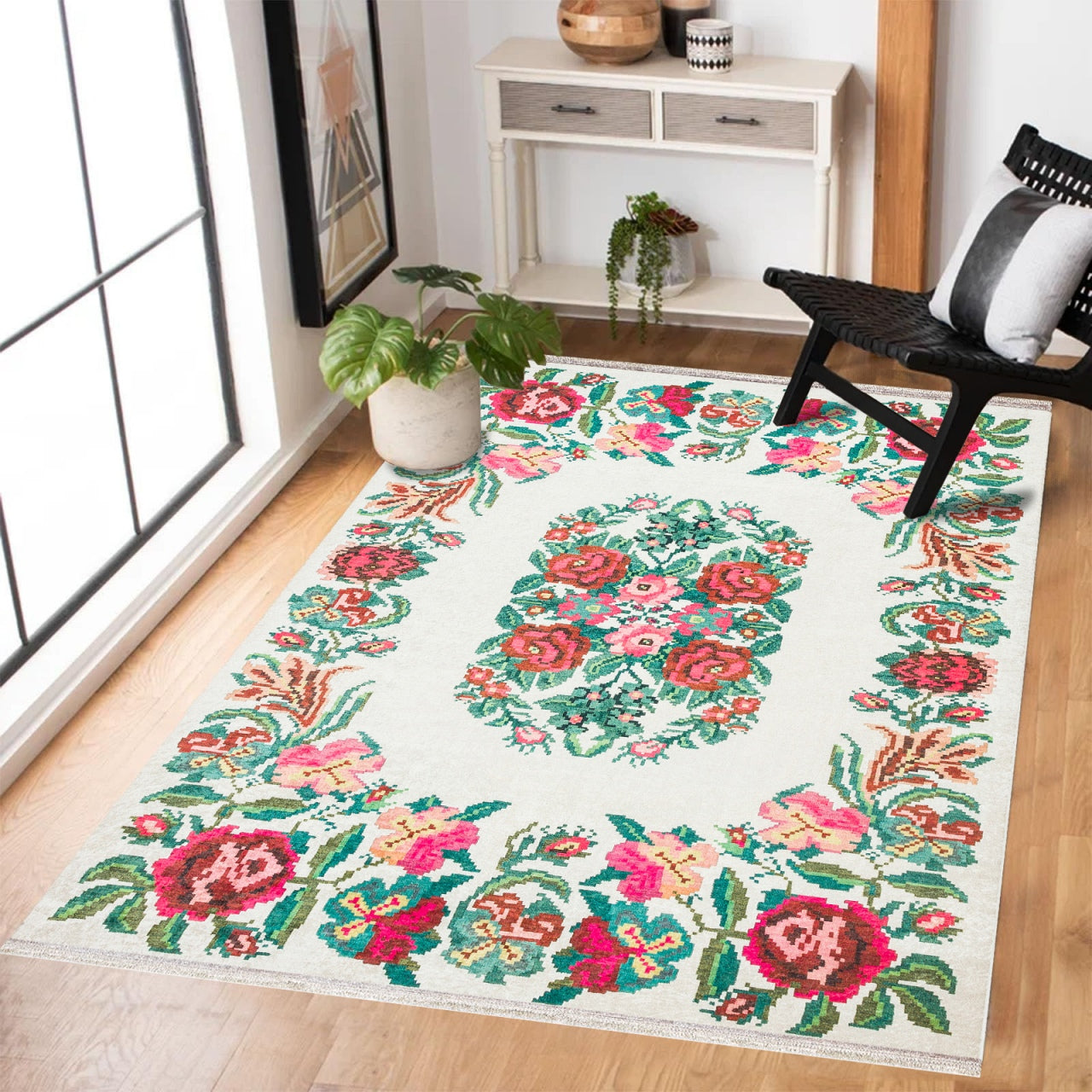Bu halı, kaymaz tabanı sayesinde zemine sıkıca tutunur ve güvenli bir kullanım sunar. Bu özelliği, onu evinizin her alanında, özellikle çocuk oyun odalarında, antrelerde veya banyolarda bile rahatlıkla kullanmanızı sağlar. İster oturma odası halısı, ister yatak odası halısı olarak kullanın, her yerde şıklığı ve konforu yakalarsınız. Ayrıca, mutfak halısı, antre halısı ve hatta ofis halısı olarak bile üstün performans sergiler. Dış mekan halısı olarak da kullanabileceğiniz bu ürün, yaşam alanınızın sınırlarını genişletir. Bakım ve kullanım detayları için halı etiketini incelemeniz yeterlidir.