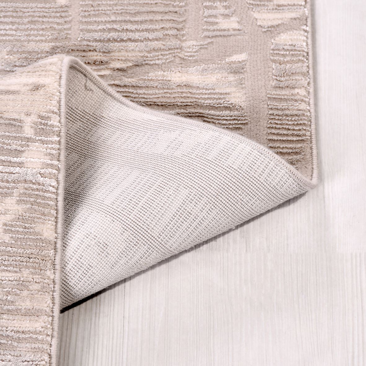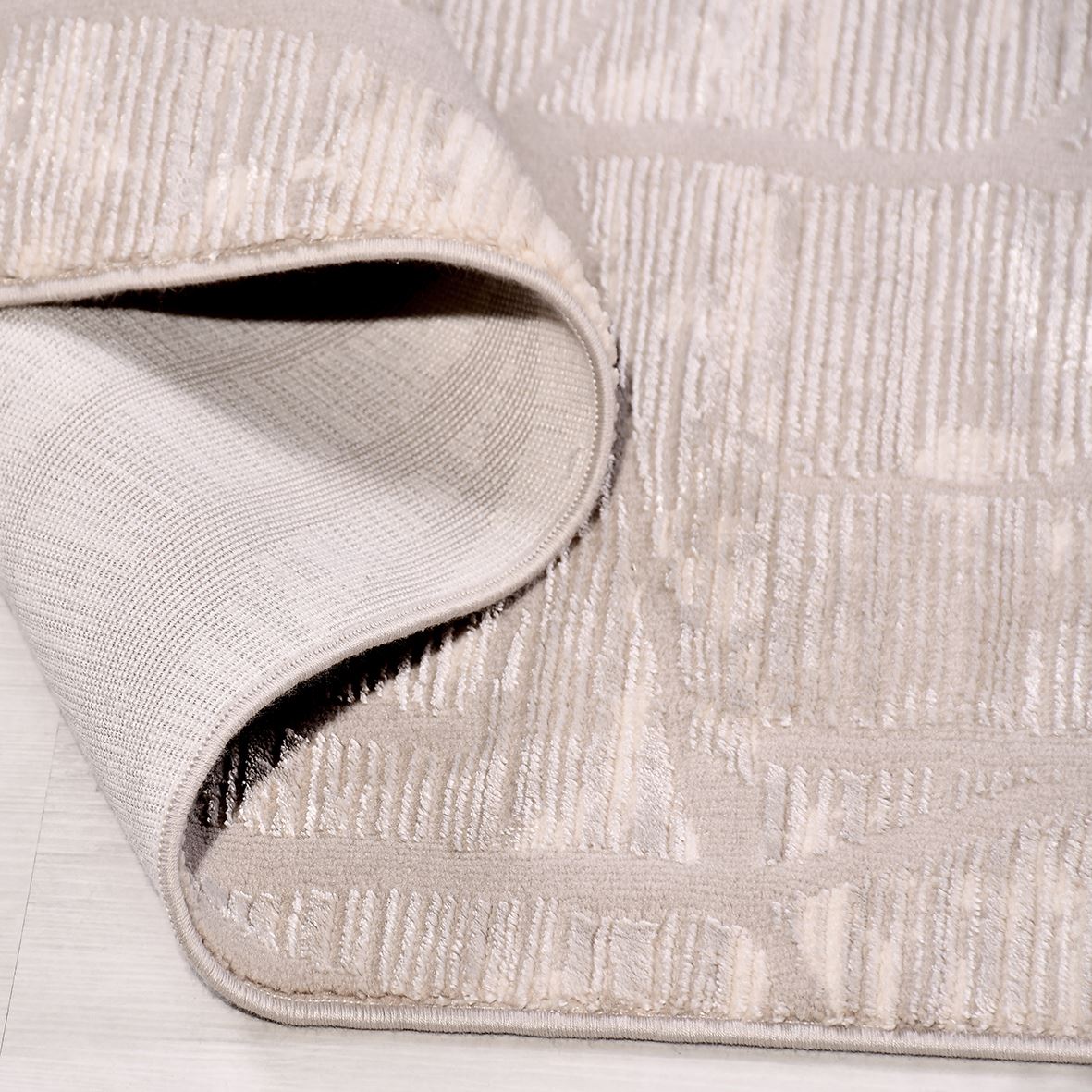 Krem Geometrik Polyester Makine Halısı