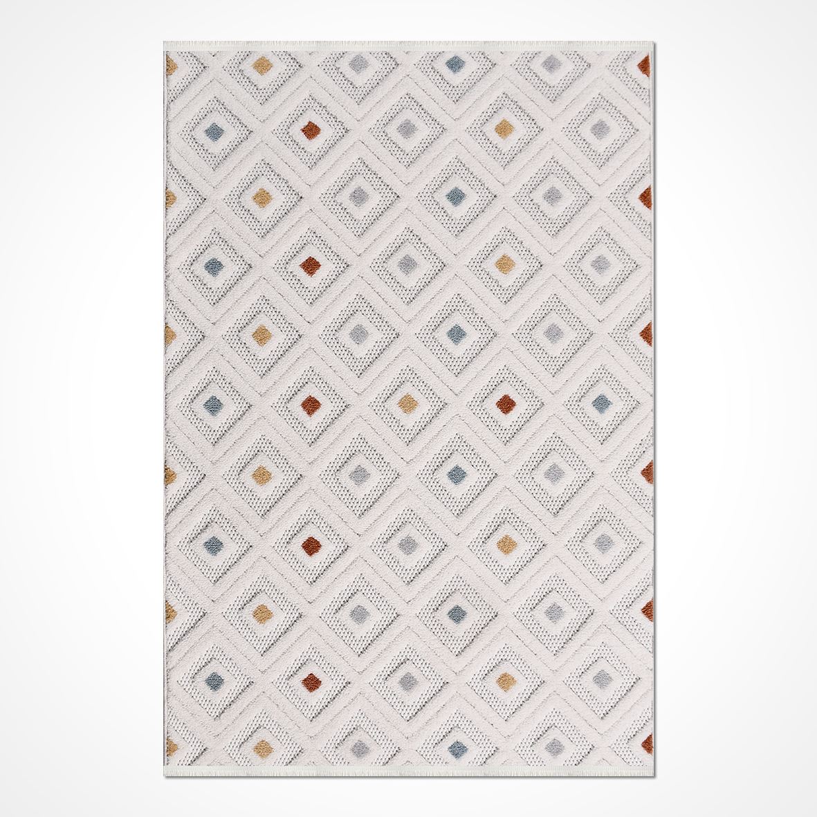 Krem Geometrik Polyester Makine Halısı
