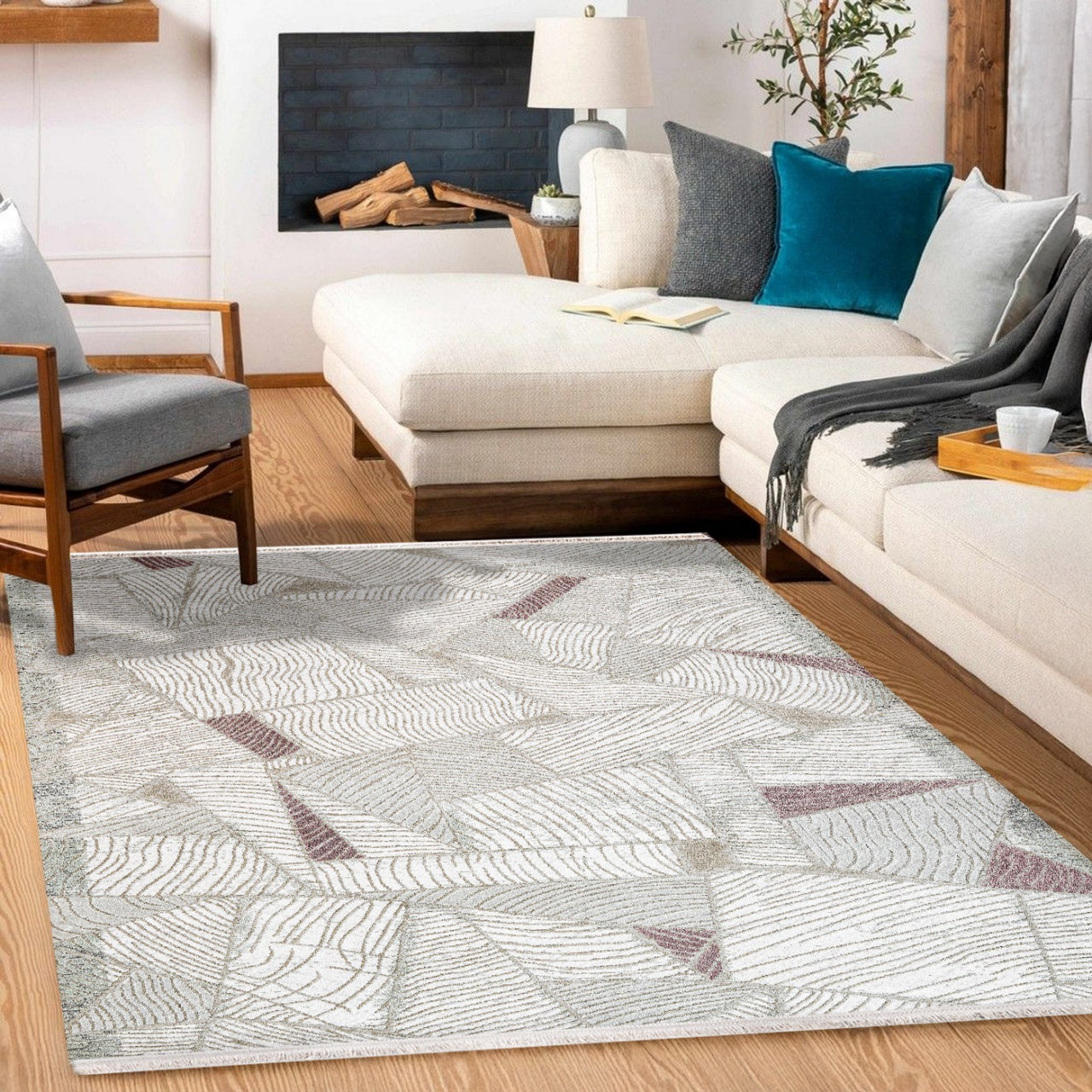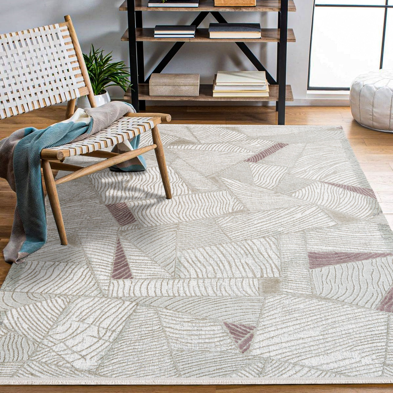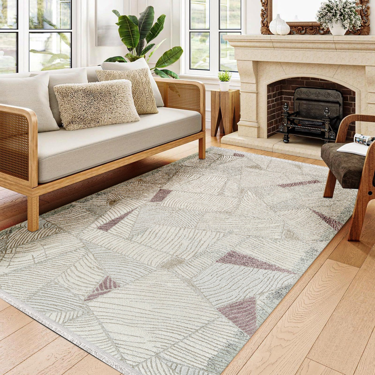 Laila Bej Geometrik Akrilik Makine Halısı