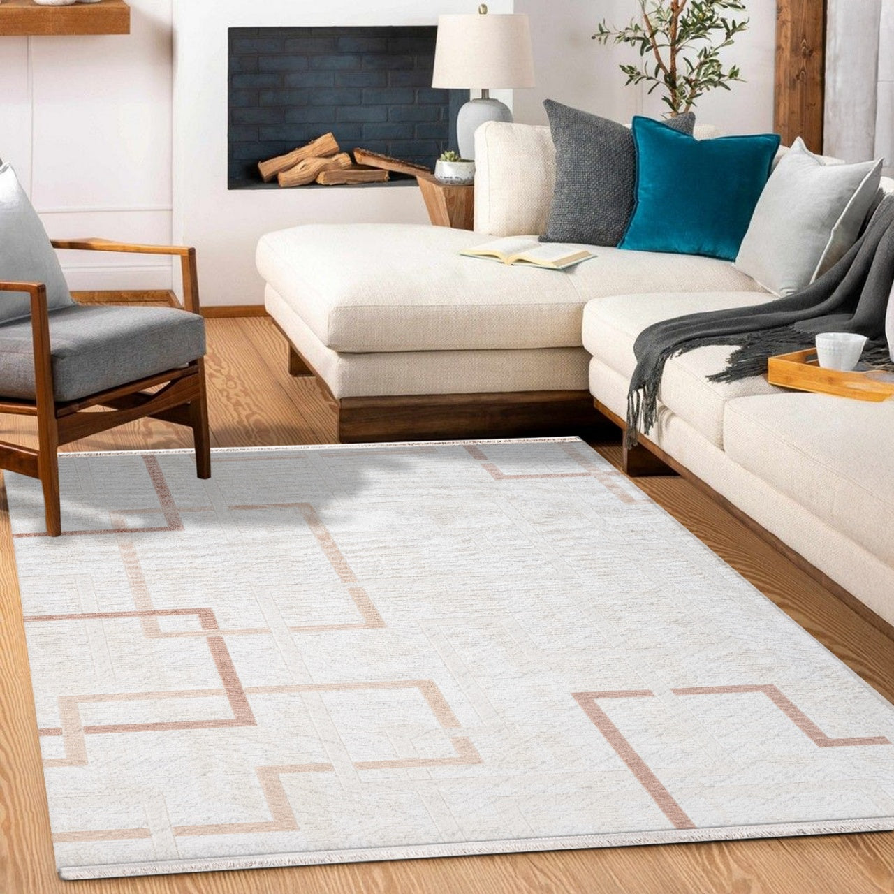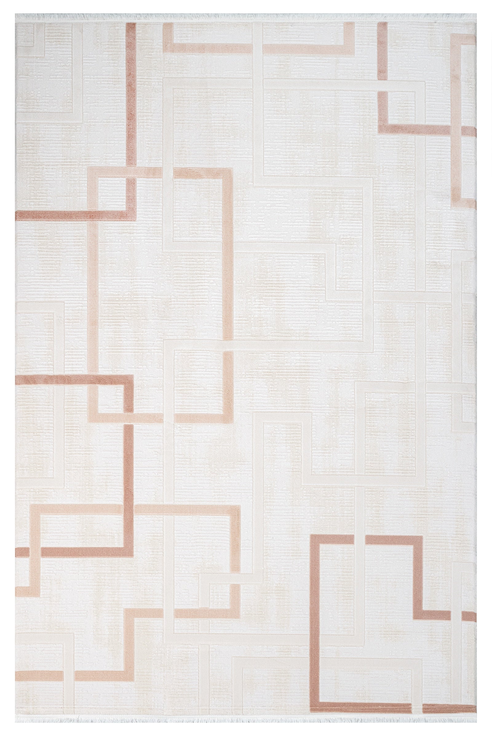 Maliyah Krem Geometrik Akrilik Makine Halısı