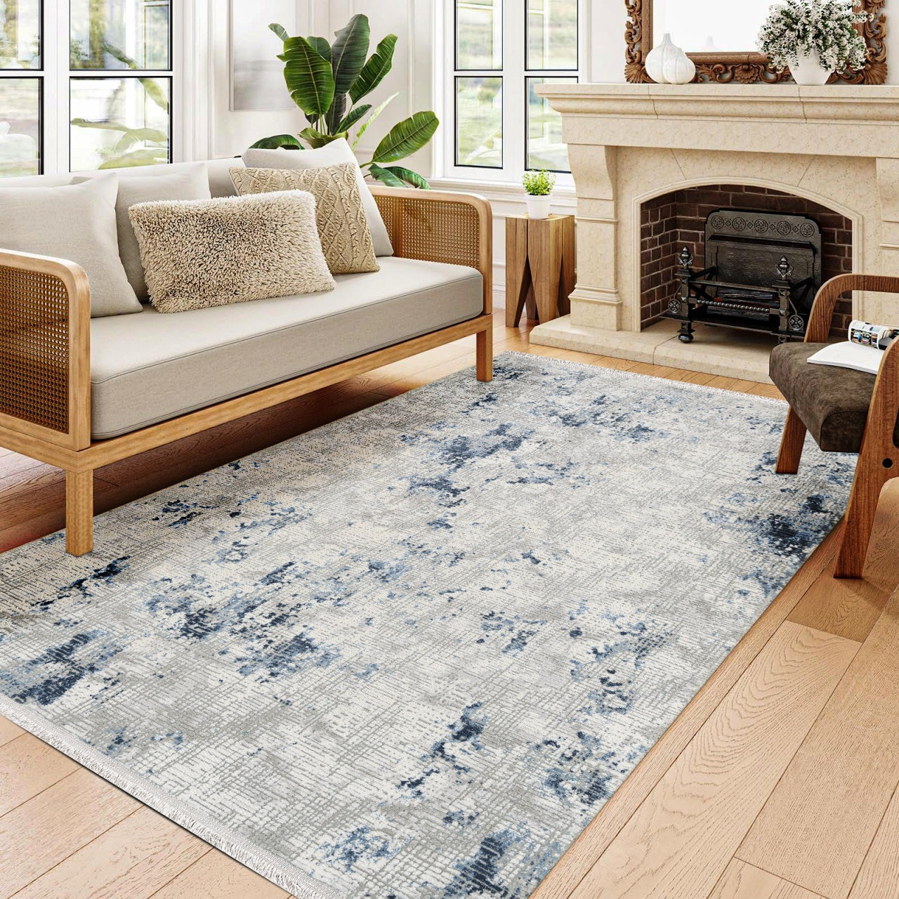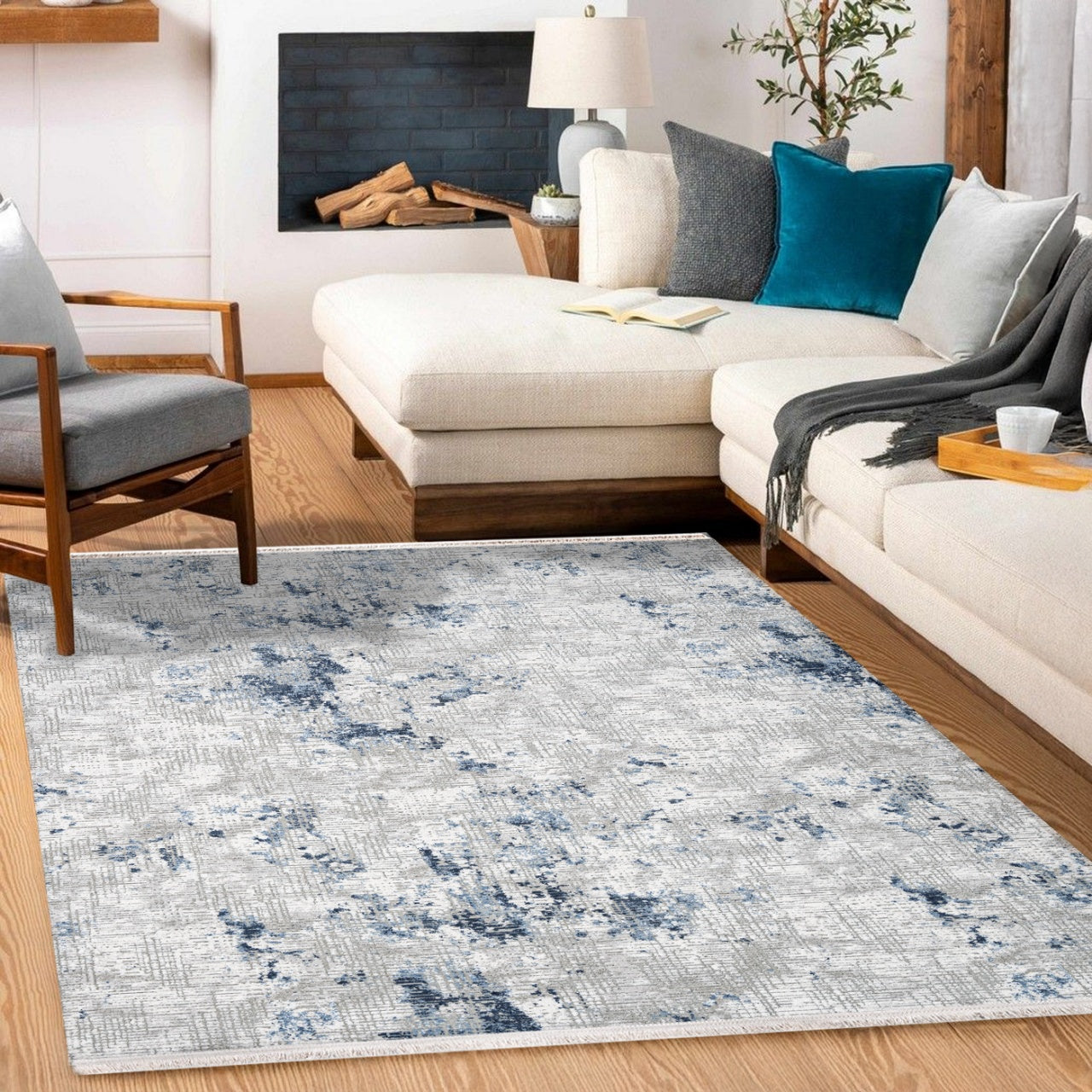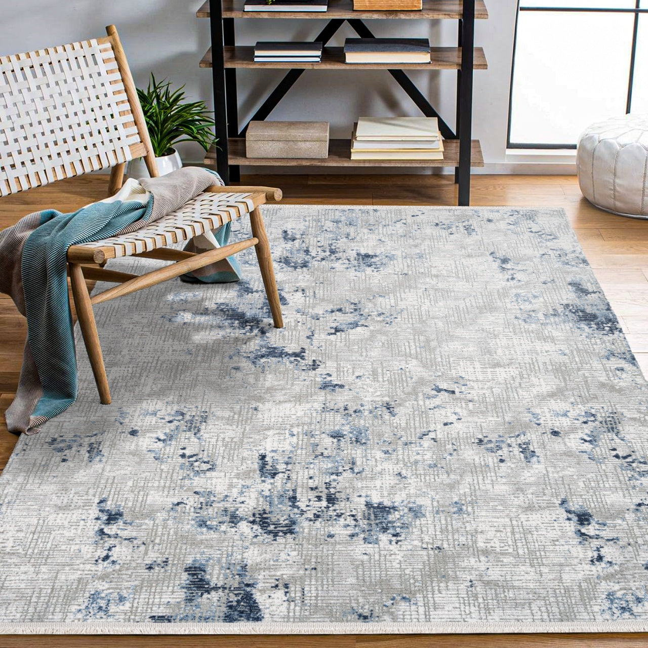 Miriam Gri Mavi Modern Triko Akrilik Makine Halısı