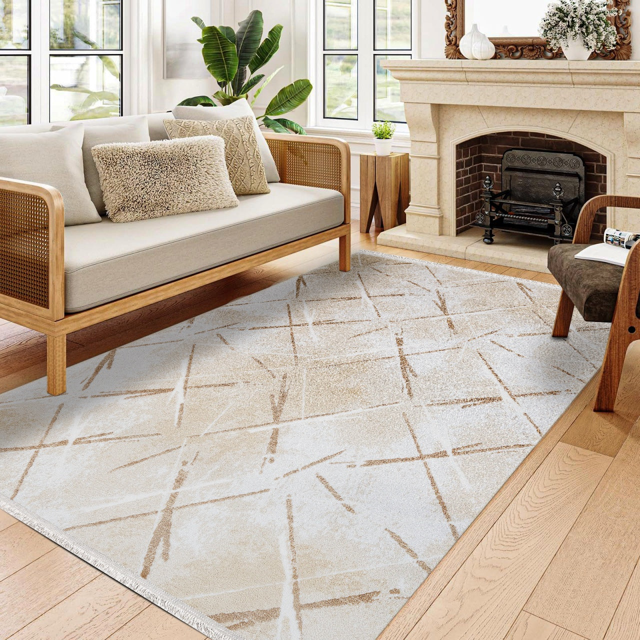 Oaklyn halının tasarımında kullanılan çizgili ve hafif baklava desenli motifler, mekana modern bir derinlik kazandırır. Soft tonlar kategorisinde yer alan krem ve bej geçişleri, odanızı olduğundan daha geniş ve ferah gösterir. Minimalist, İskandinav veya Modern Klasik dekorasyon stilleriyle mükemmel uyum sağlayan bu halı, karmaşadan uzak, göz yormayan bir şıklık arayanların ilk tercihidir. Dokusundaki hafif parlaklık (viskon etkisi), ışık açısına göre zarif yansımalar yaparak halının premium duruşunu destekler.