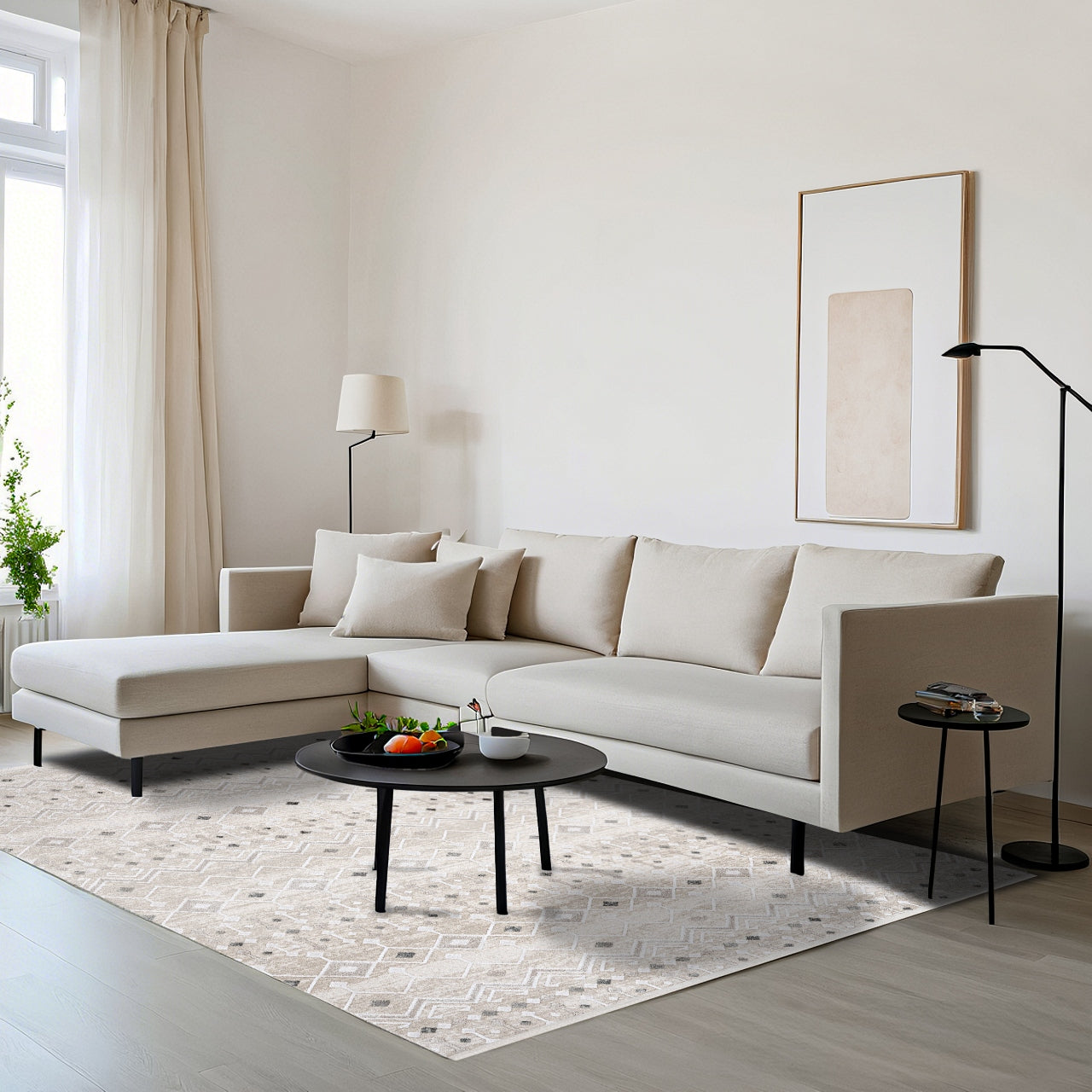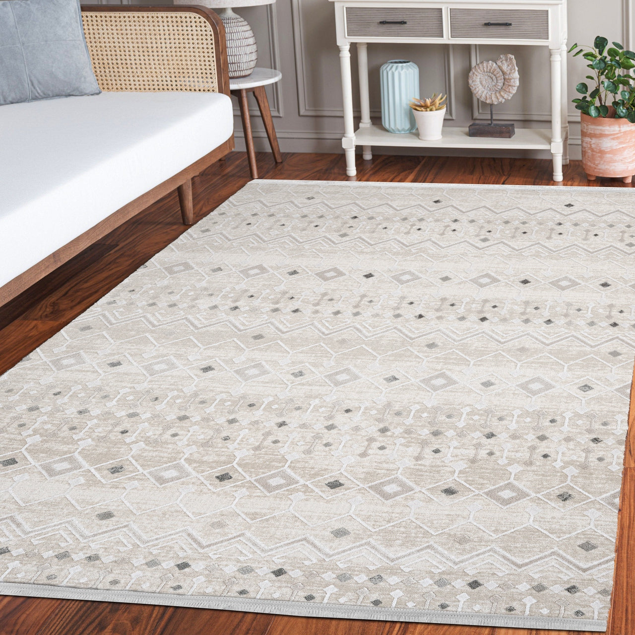 Oasis Gri Geometrik Triko Akrilik Makine Alan Halısı