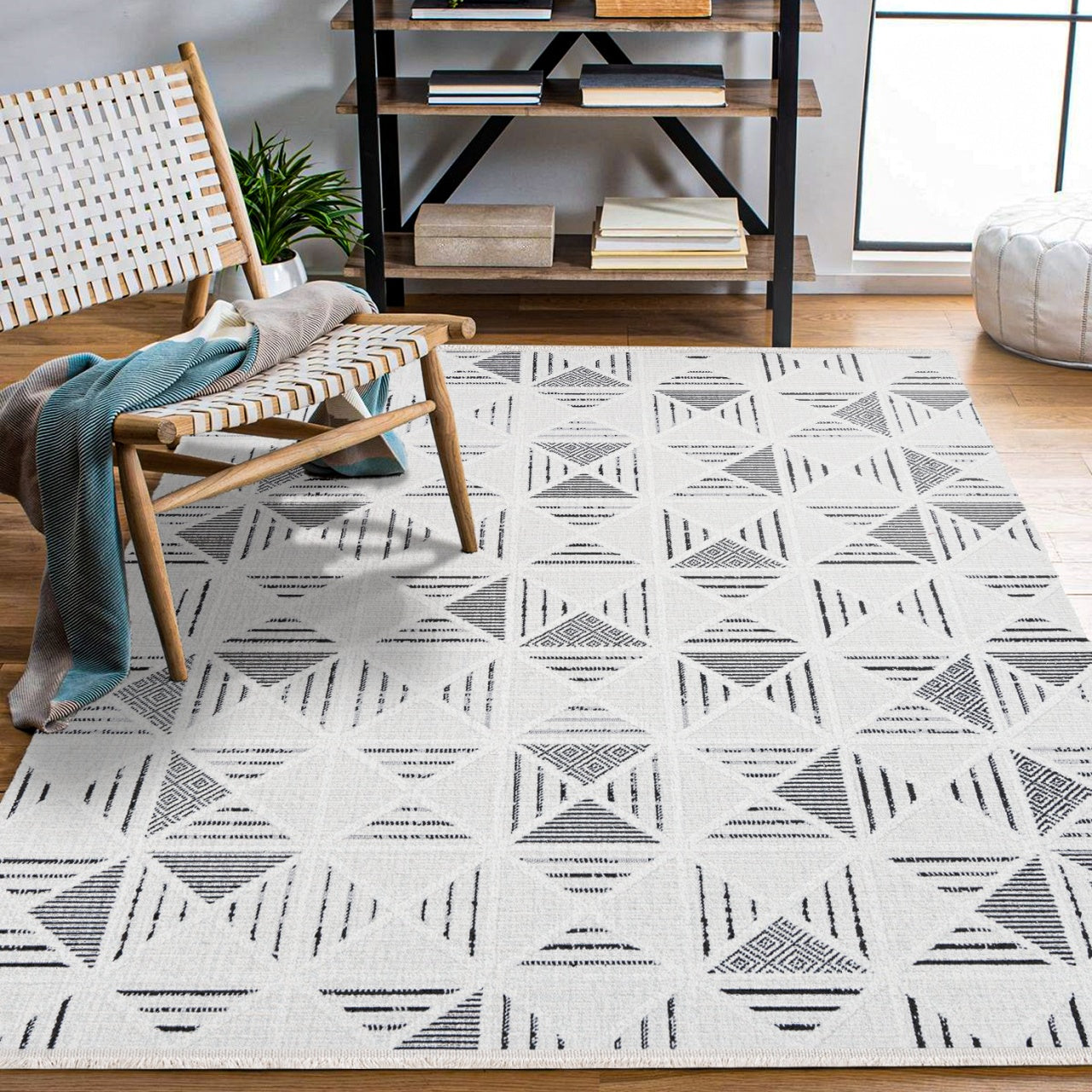 Onyx Krem Geometrik Polyester Makine Alan Halısı
