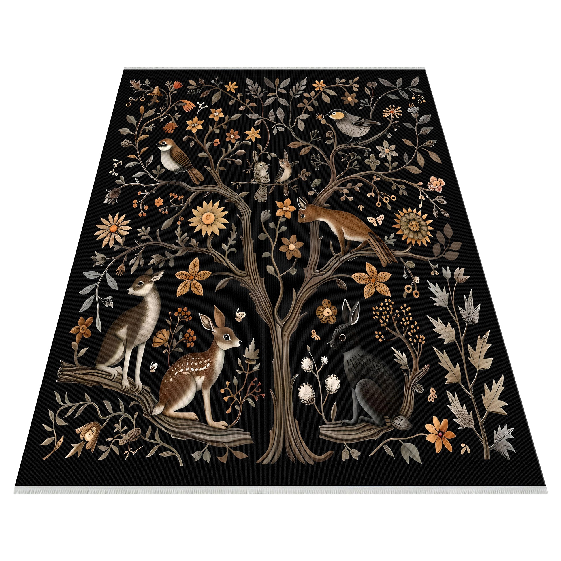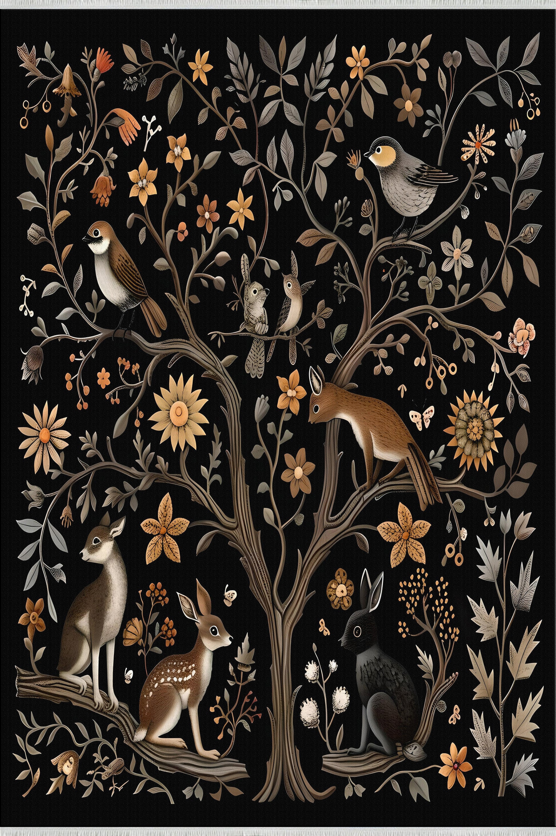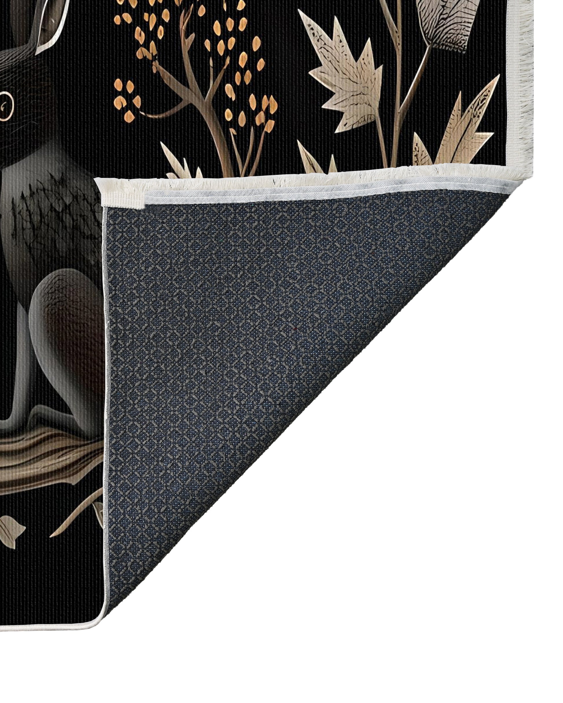 Retro Figürlü Temalı Siyah Kahverengi Hali