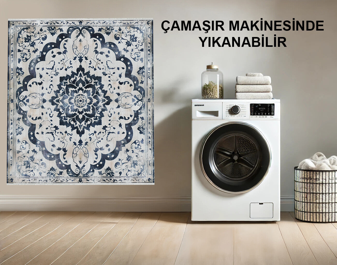 İncelemiş olduğunuz bu ürünün bakımı kolaydır; elektrikli süpürge ile kolaylıkla temizlenir, hafif nemli temiz bir bez ile bastırmadan, fırçasız bir şekilde silinebilir ya da 30 derecede sıkma olmadan ve zararlı kimyasal kullanmadan makinada yıkanabilir. Güneşte kurutulan halılar solma yapacağı için tavsiye edilmez.