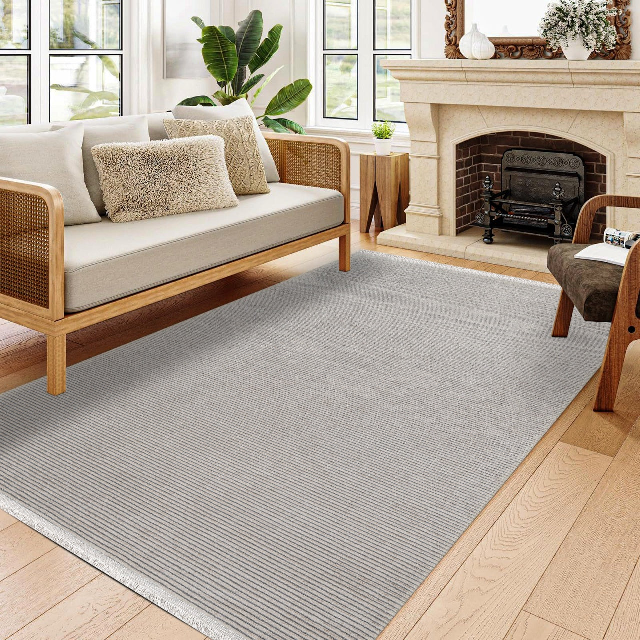 Tasarımında kullanılan gri çizgili desenler, mekanlara derinlik ve hareket algısı katar. Nötr gri tonu, halının baskın bir renk olmak yerine mevcut mobilyalarınızı öne çıkaran bir fon görevi görmesini sağlar. Sade tasarımı, göz yormayan bir estetik sunarken, triko dokuma detayları halıya zengin bir doku derinliği ekler. Minimalist yaşam felsefesini benimseyenler için "az çoktur" ilkesini temsil eden bu model, odanızın daha geniş ve ferah görünmesine yardımcı olur. Modern çizgiler, geleneksel makine halısı sağlamlığıyla birleşerek uzun yıllar modası geçmeyecek bir stil sunar.