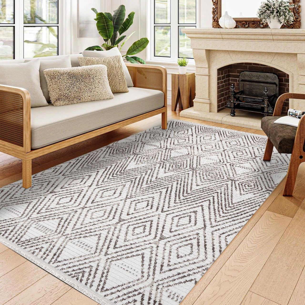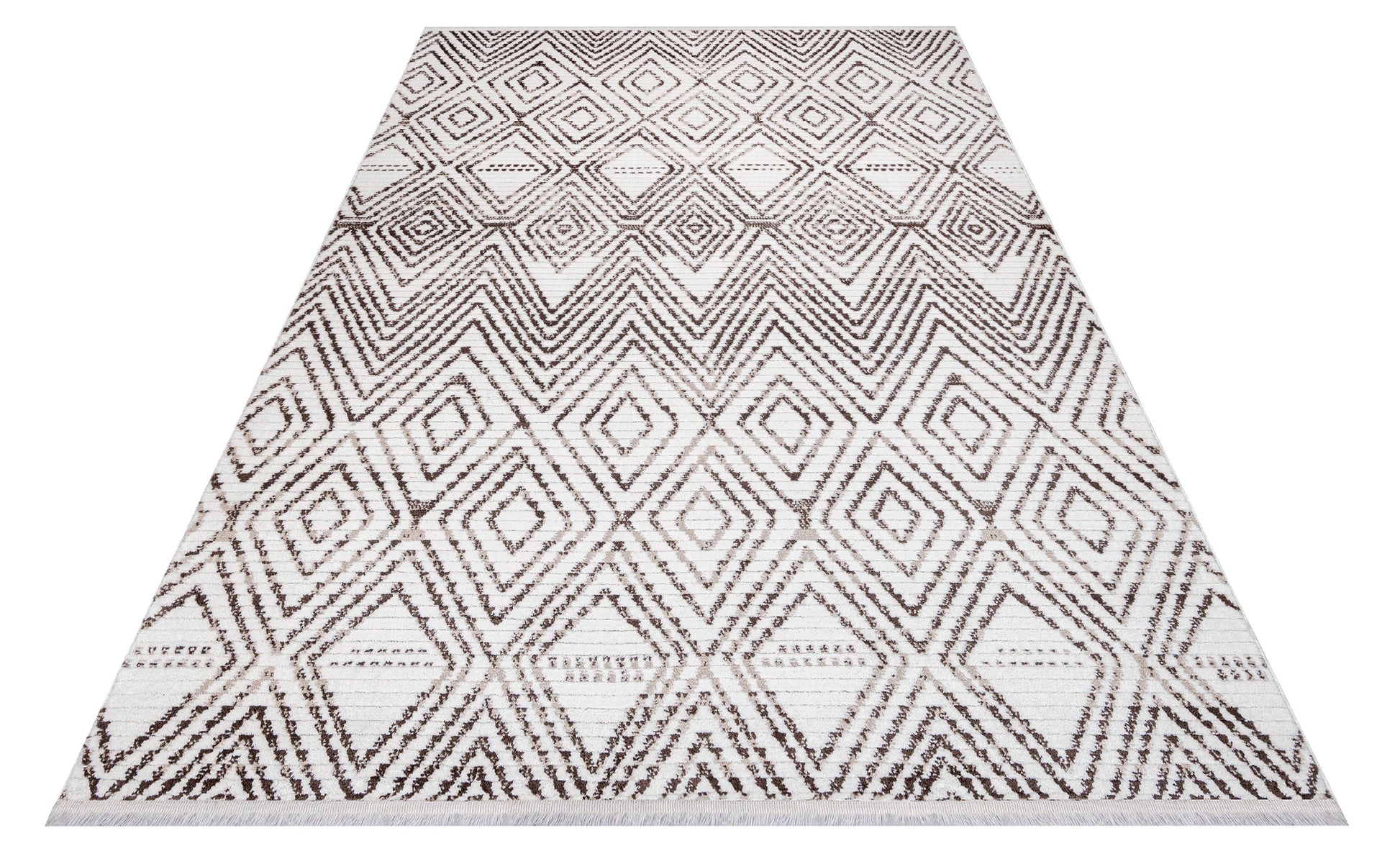 Pappy Krem Geometrik Polyester Makine Alan Halısı