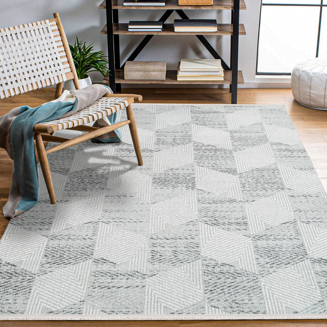 Phoenix Gri Geometrik Akrilik Makine Halısı