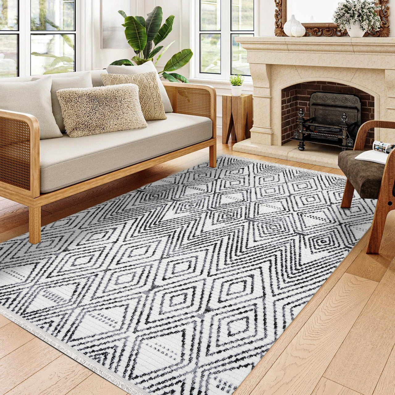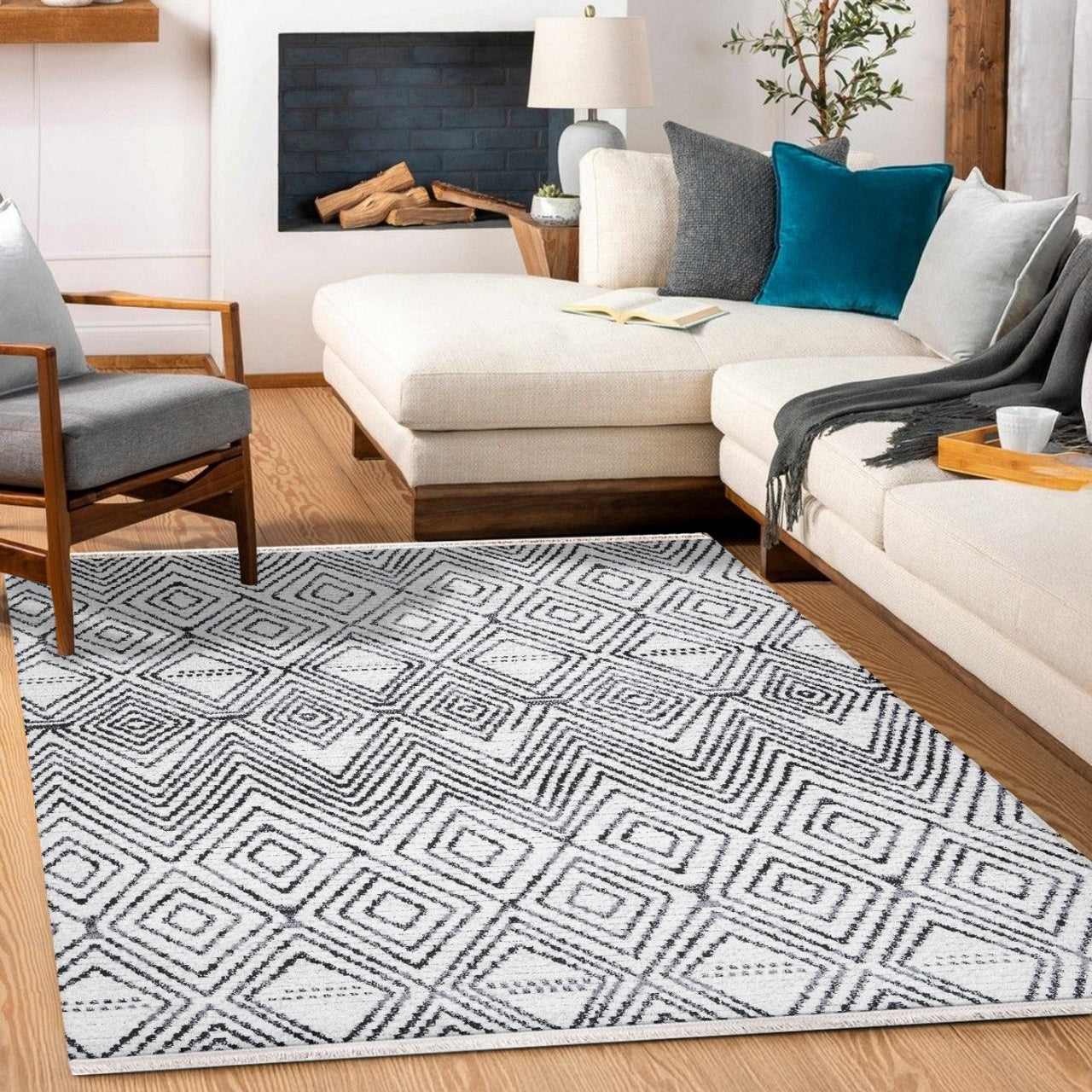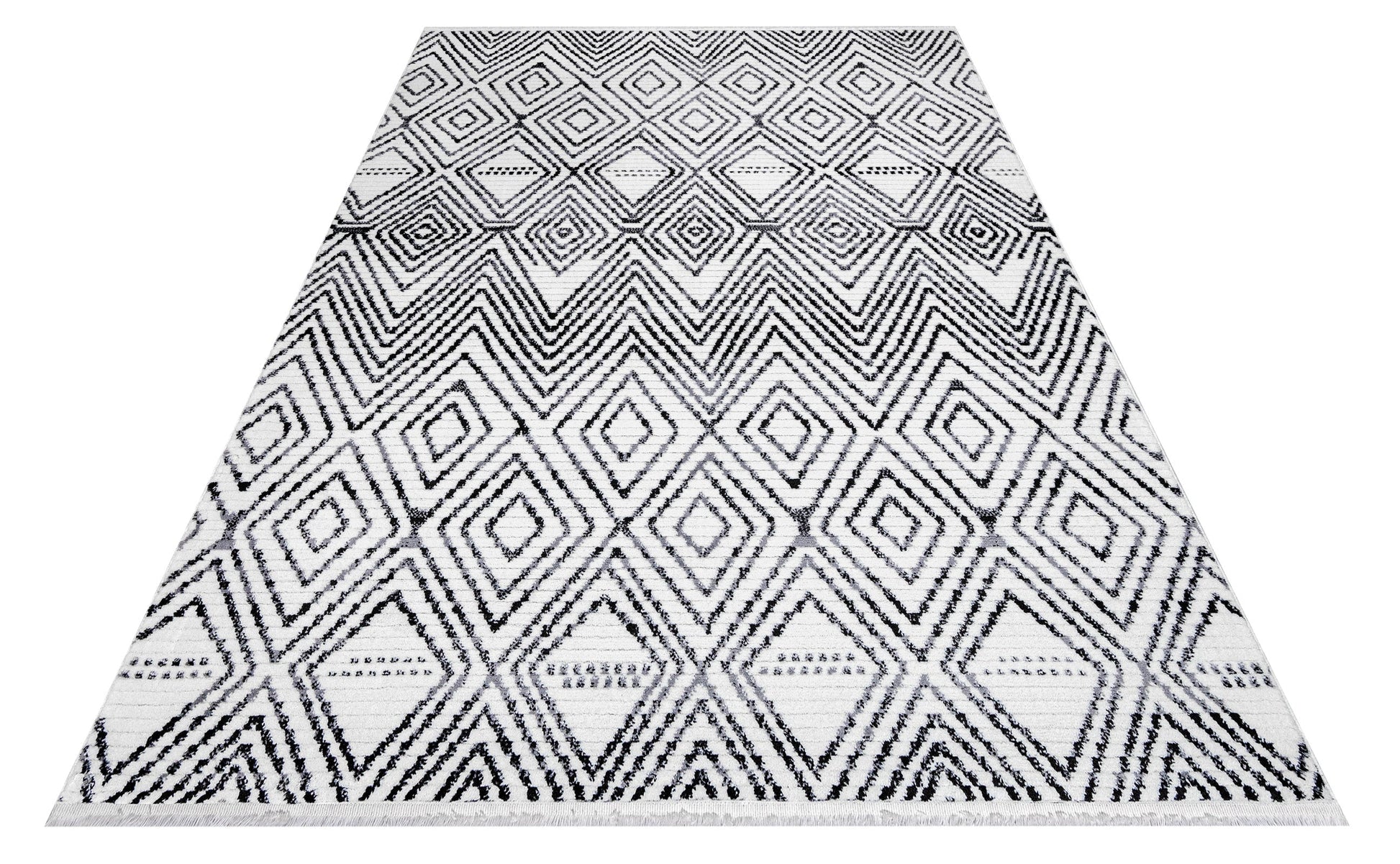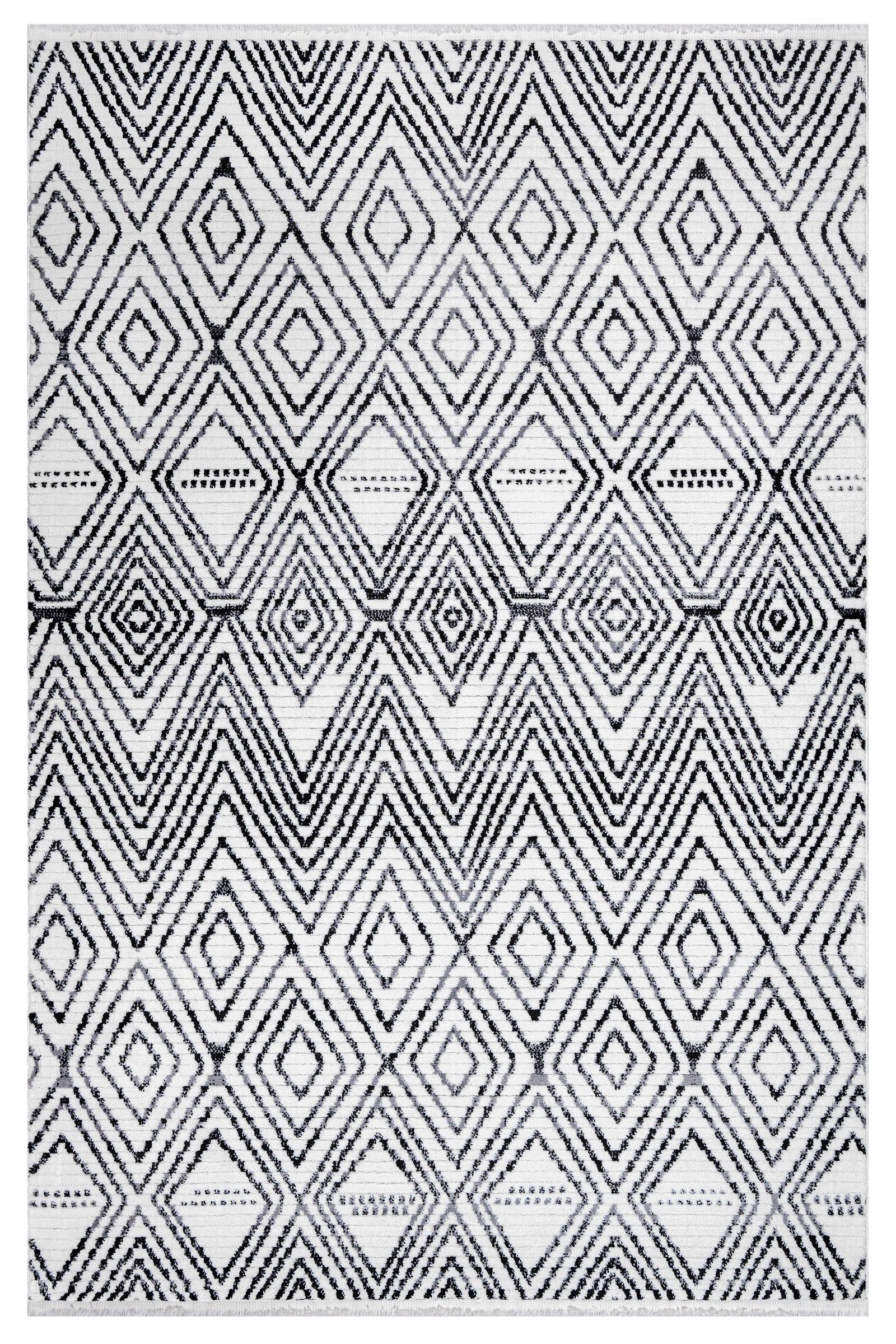 Pomegranate Beyaz Geometrik Polyester Makine Alan Halısı