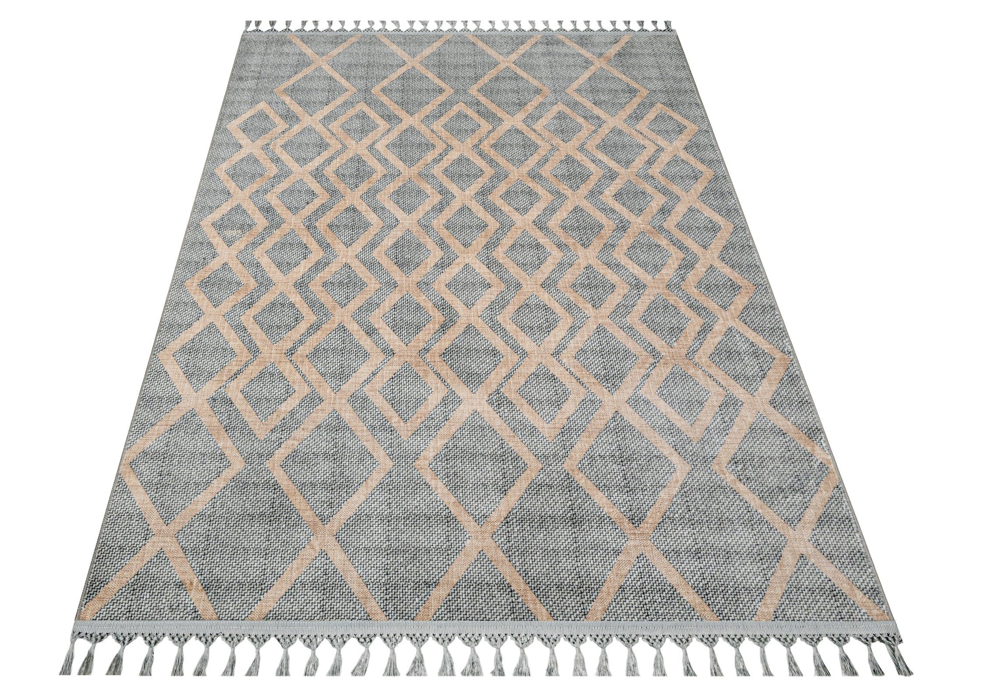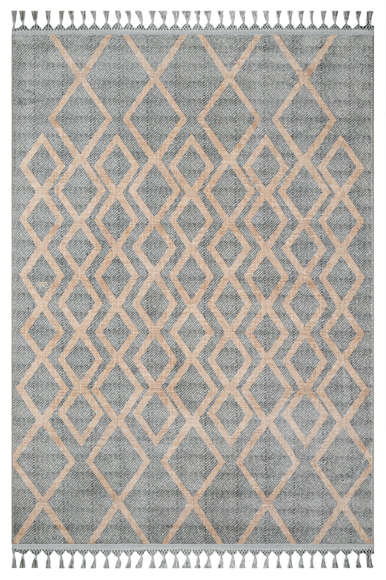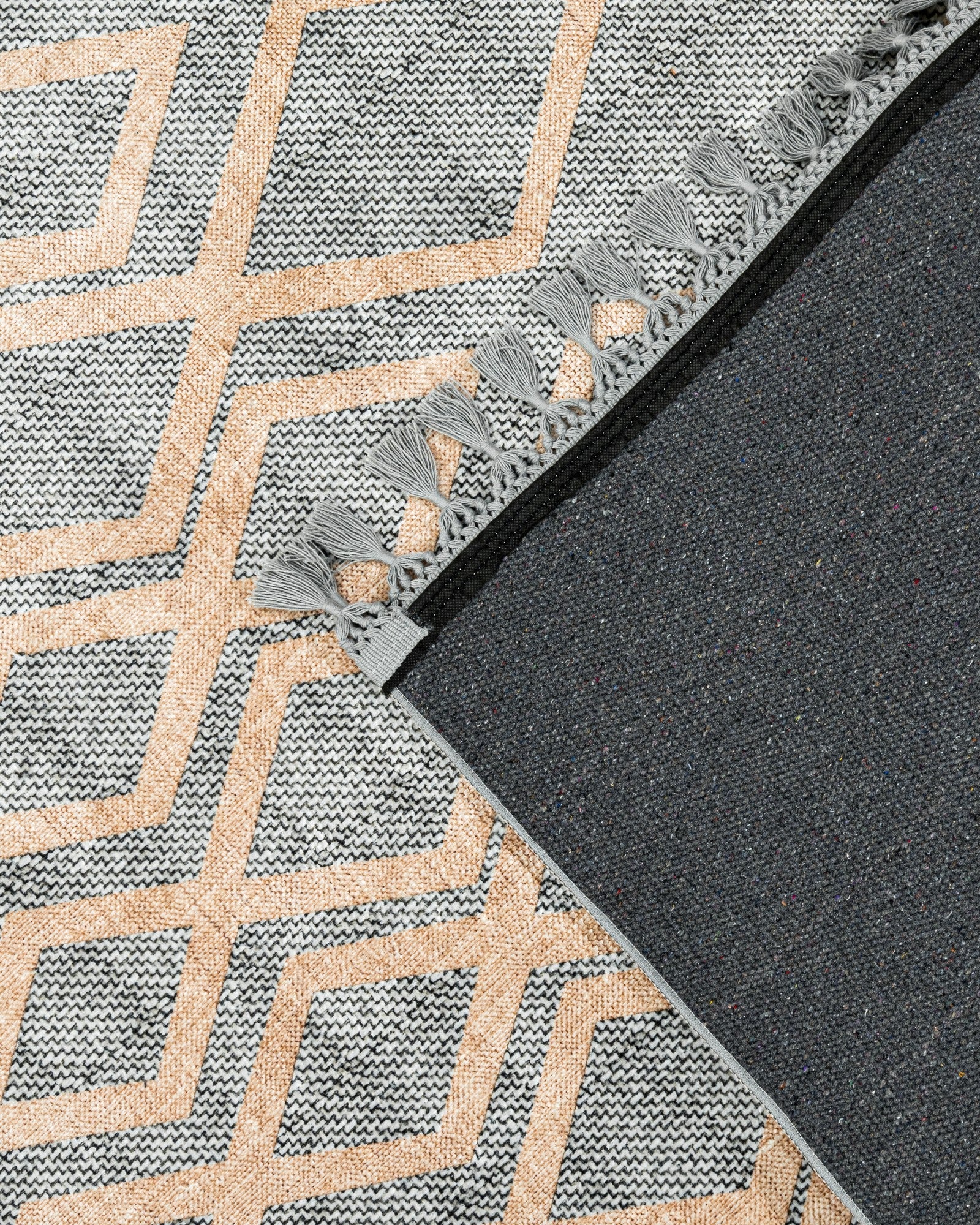 Pranay Geometrik Gri Bambu Dijital Baskı Halı