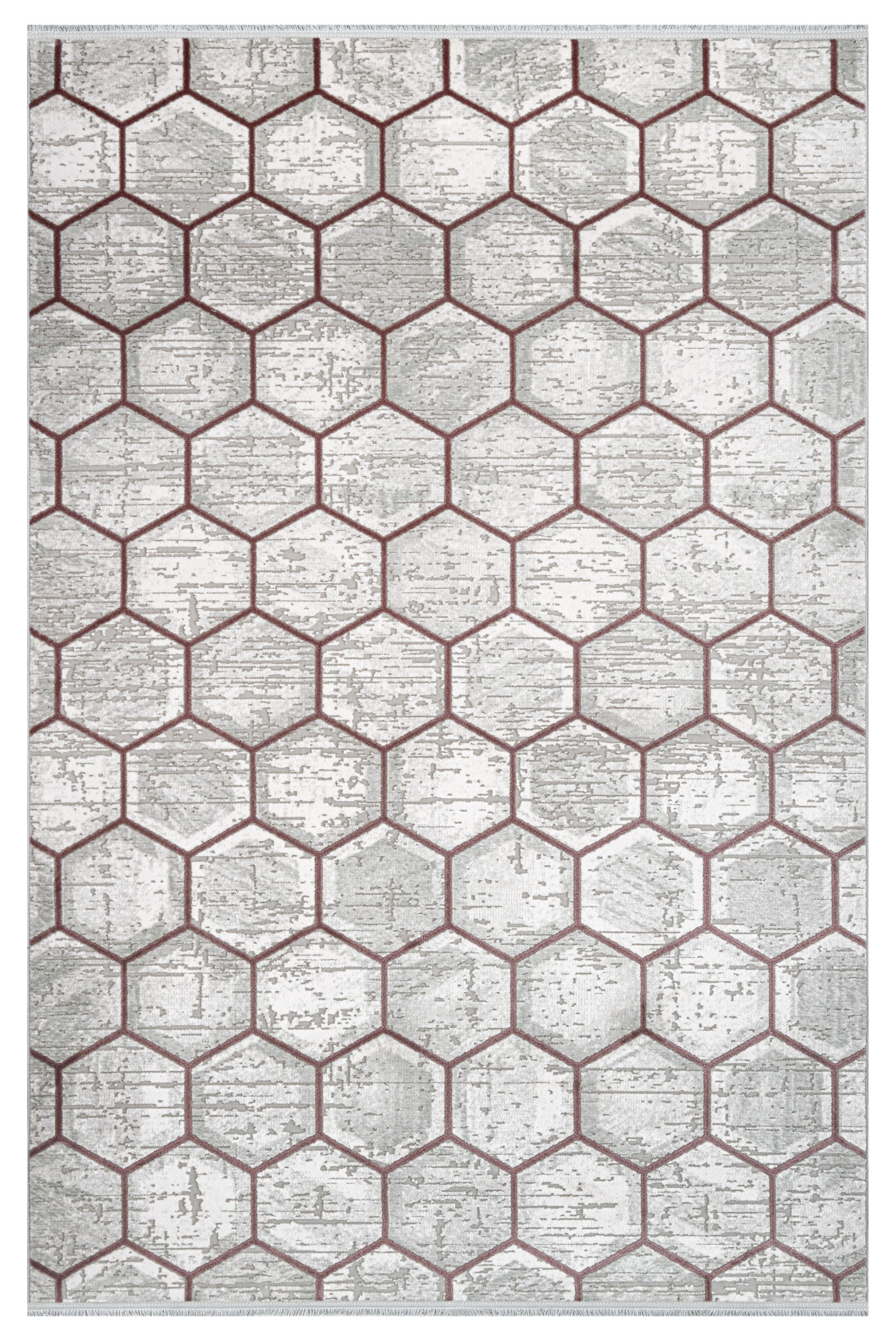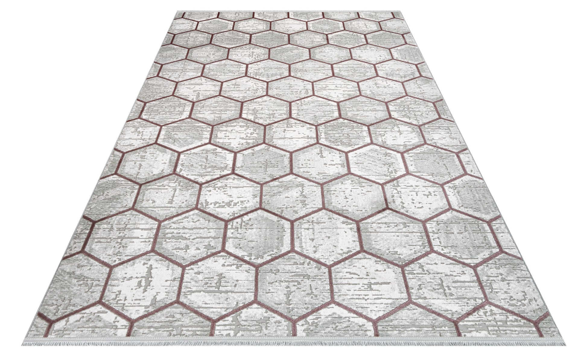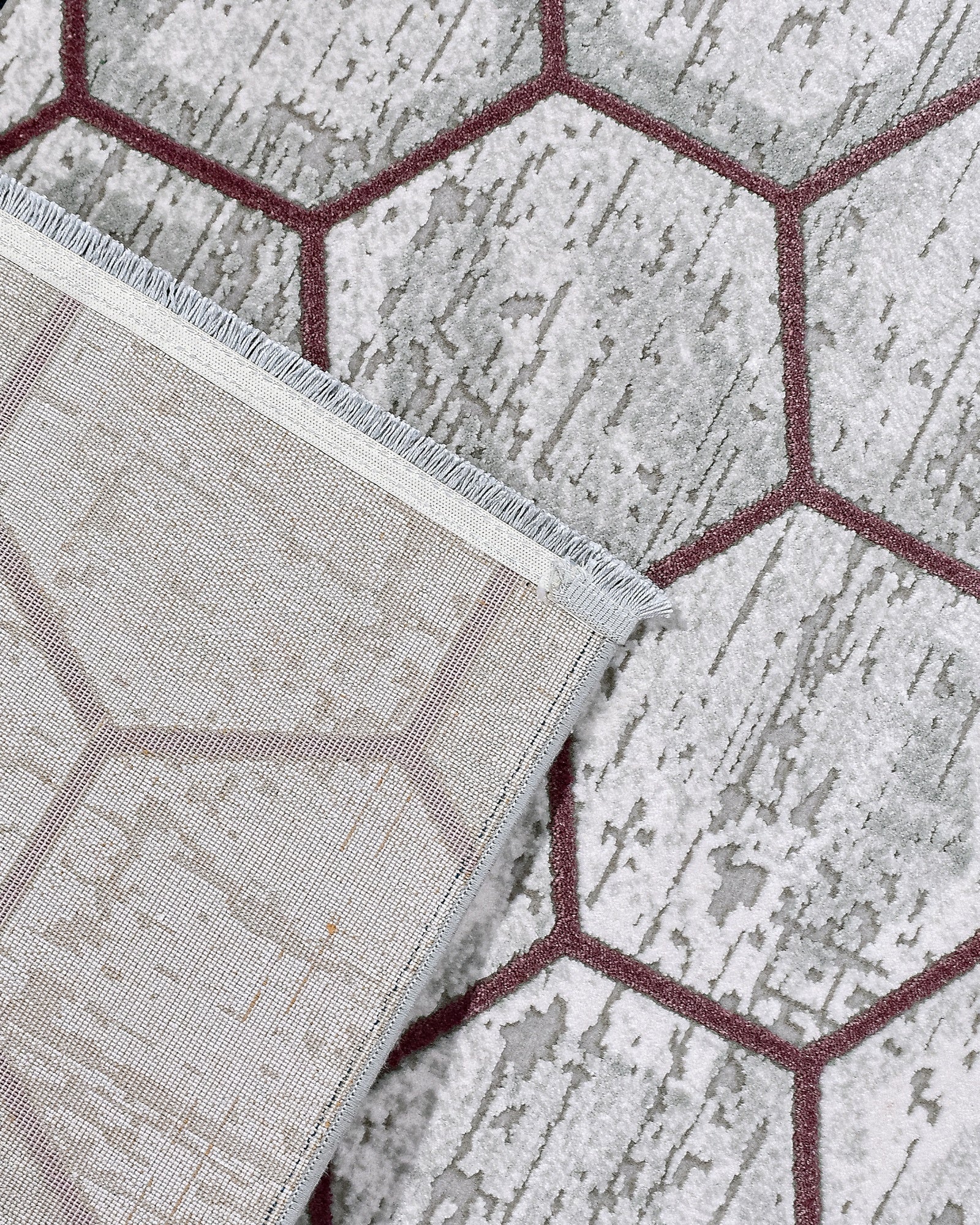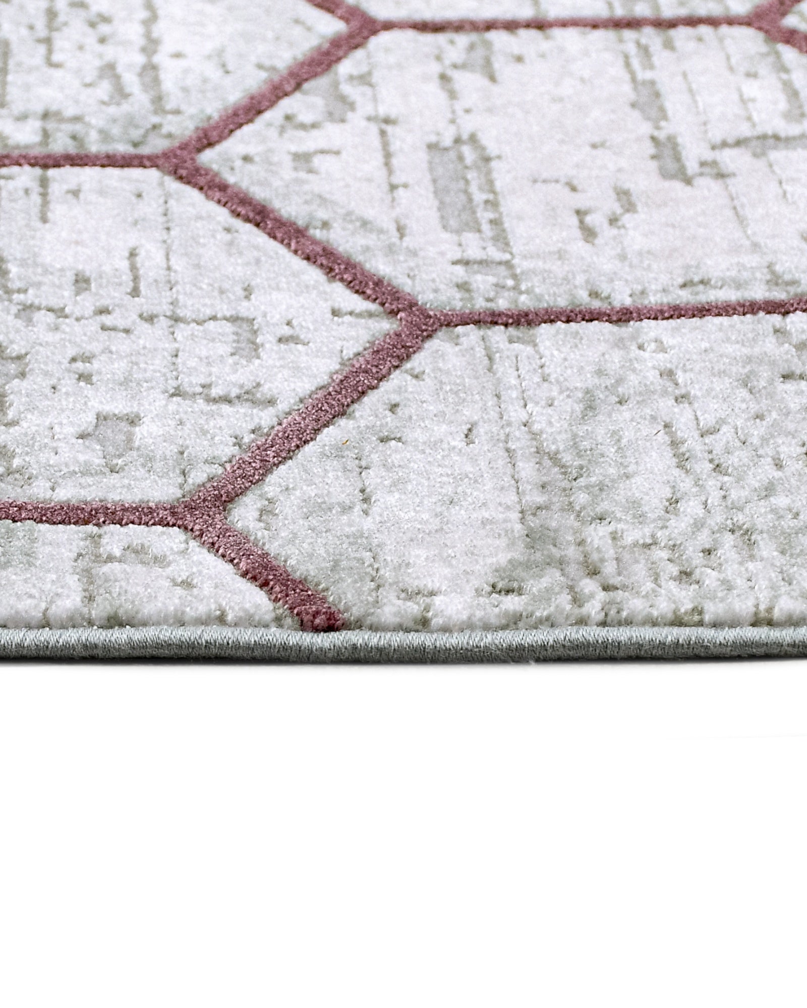 Rachel Gri Pembe Geometrik Akrilik Makine Halısı