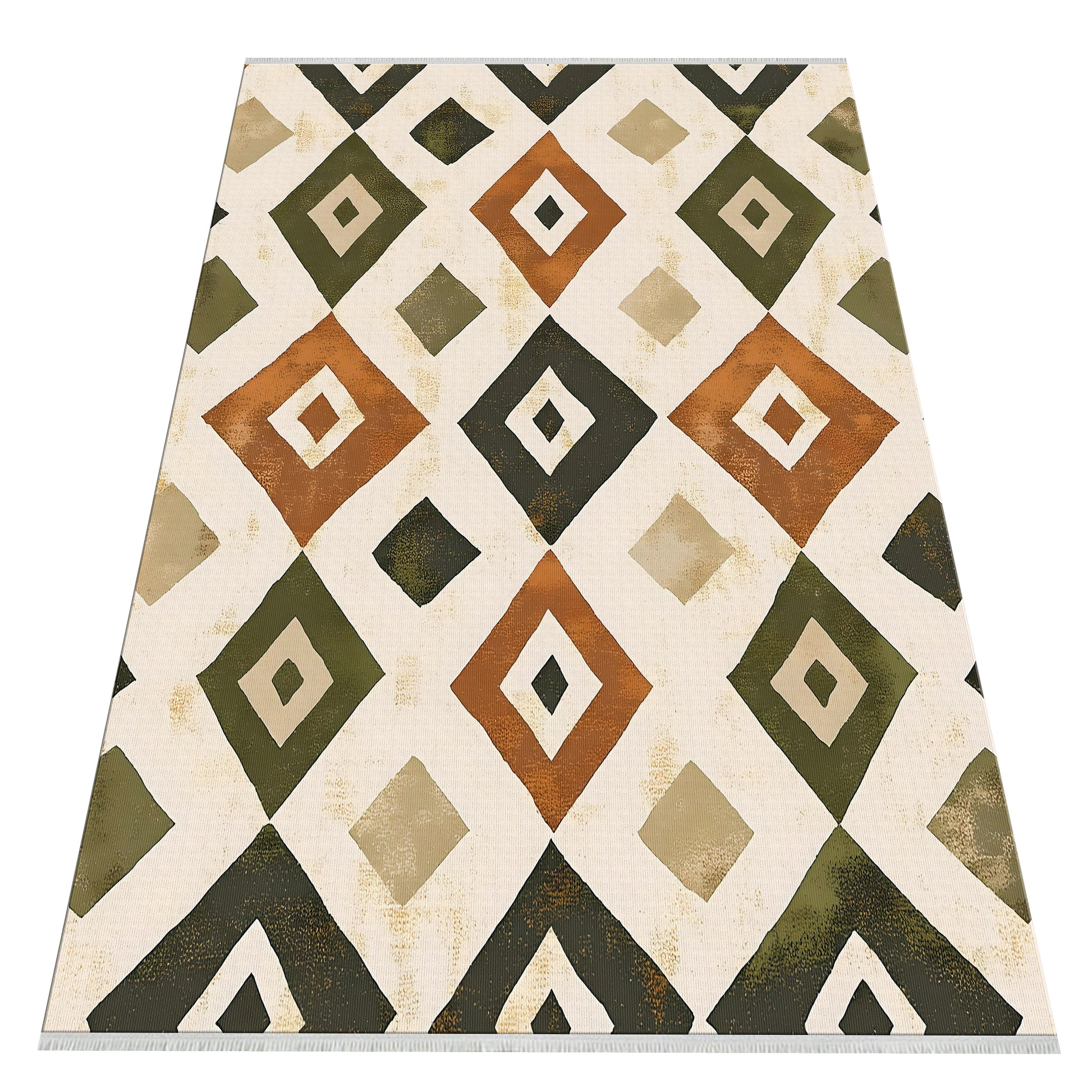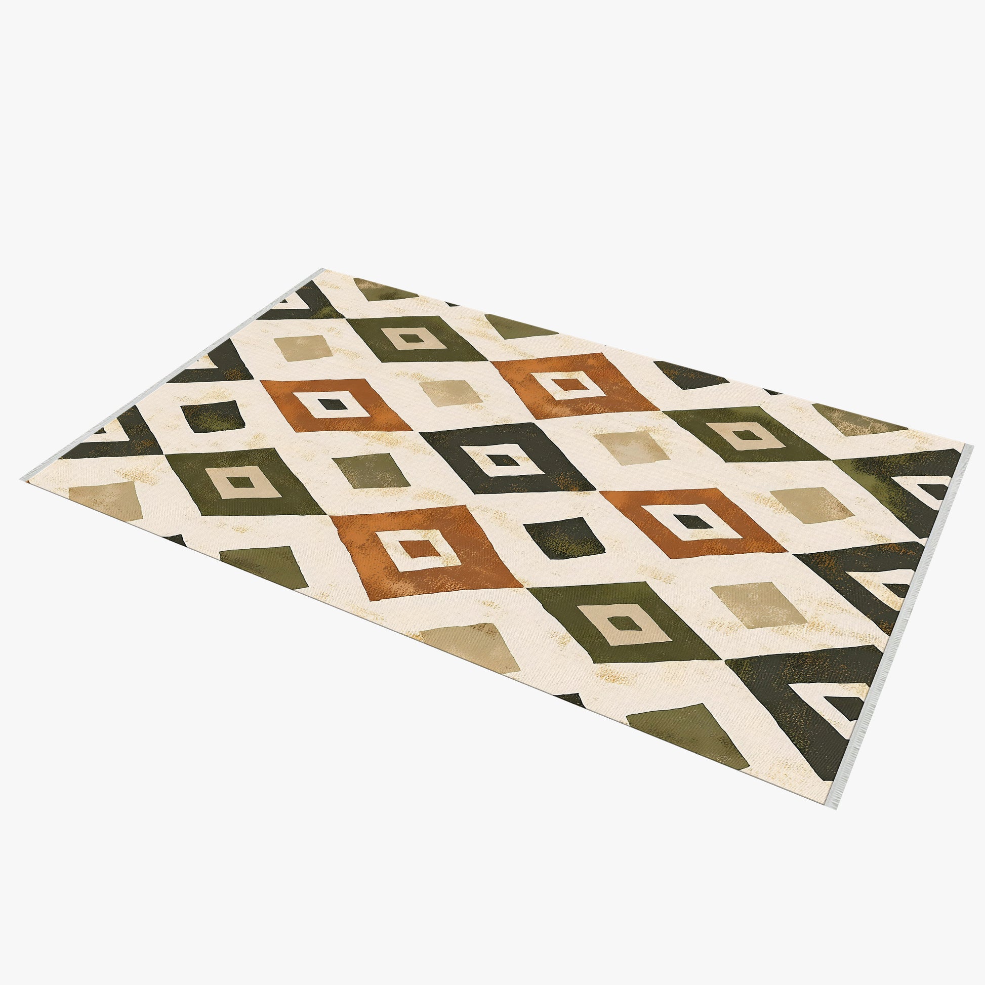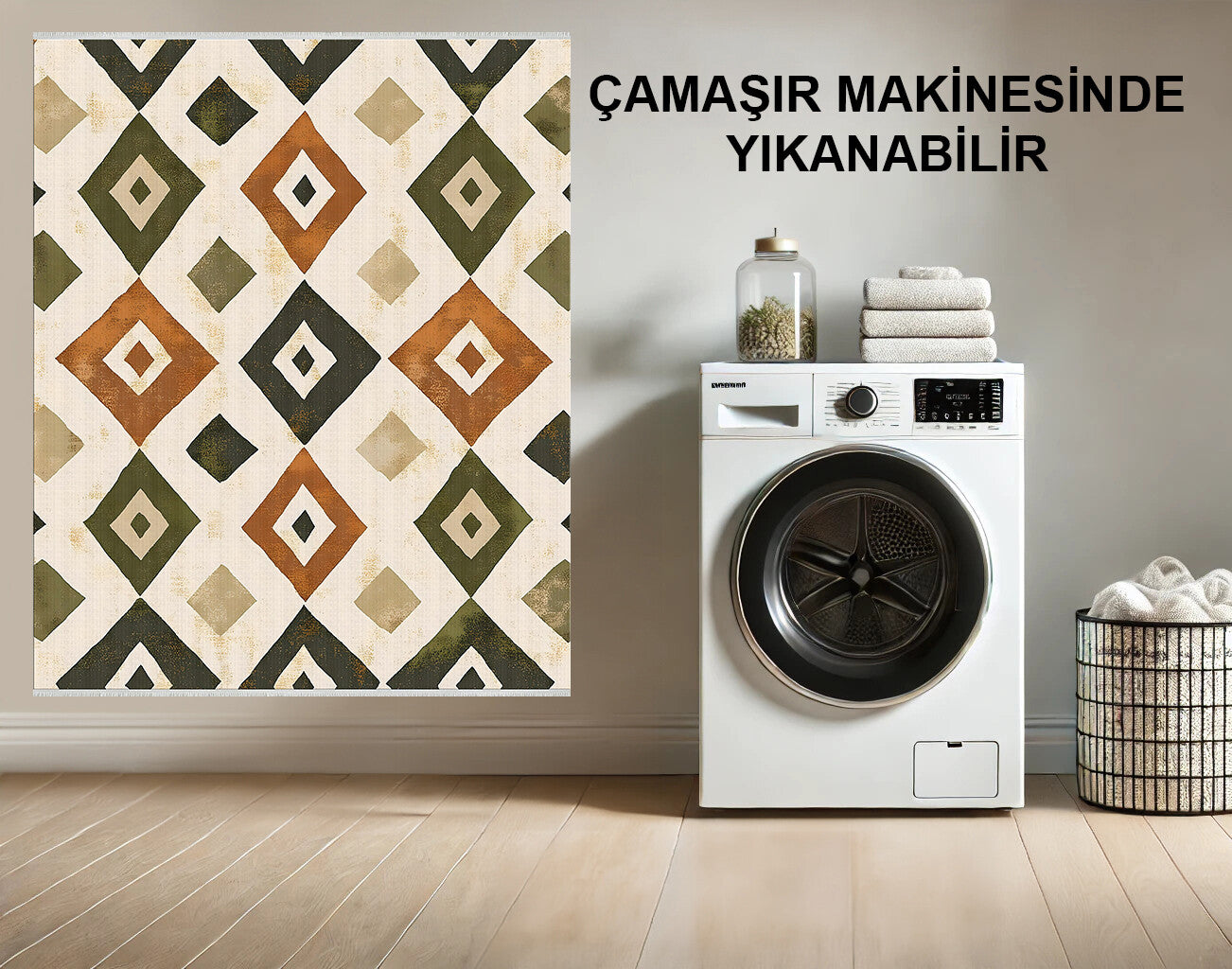 Rustik Yıkanabilir Halı - Toprak Tonlarında Geometrik Tasarım