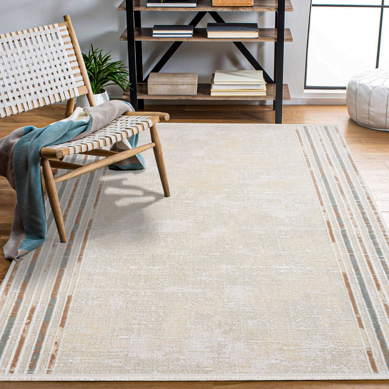 Sawyer Krem Çerçeveli Polyester Makine Halısı