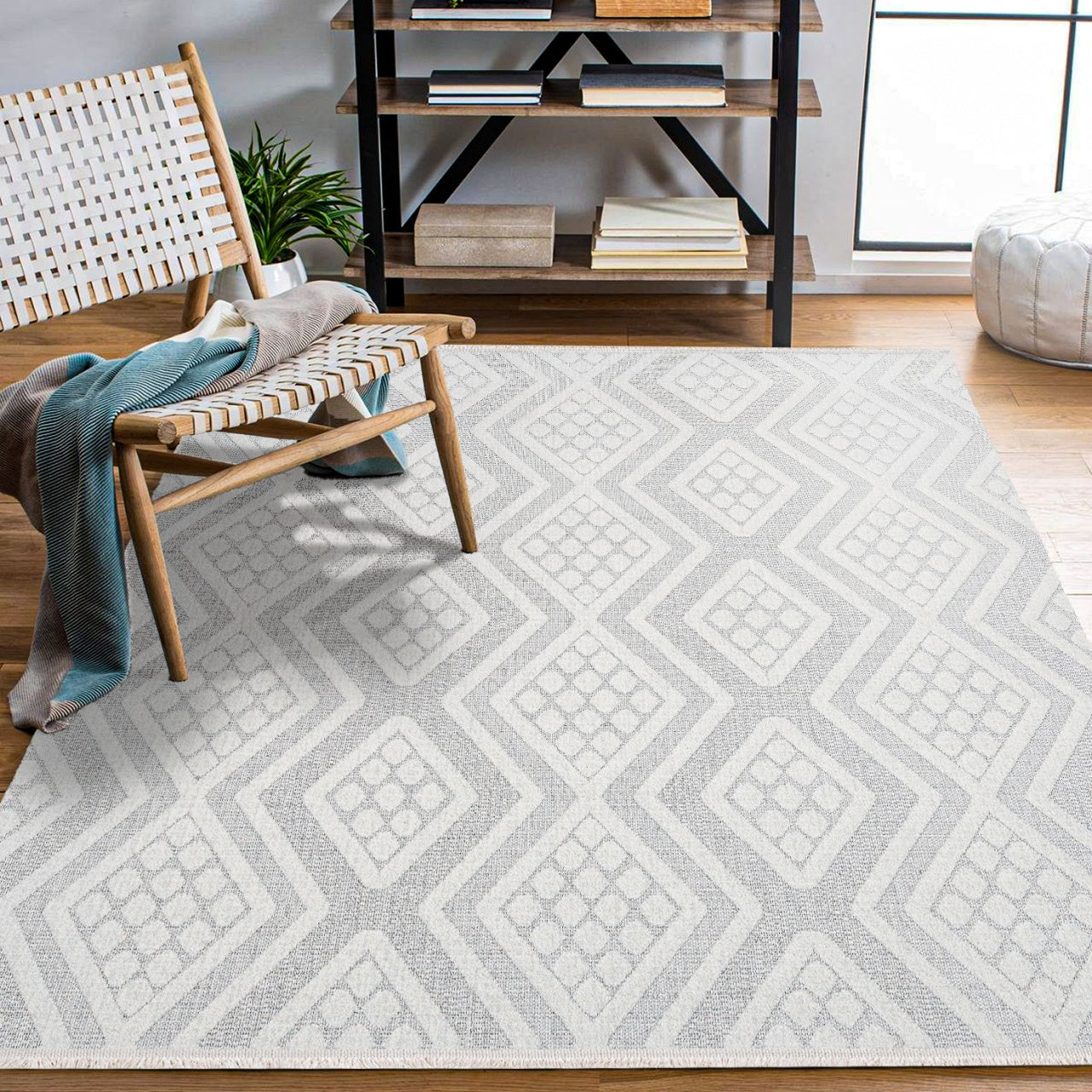 Scarlett Krem Geometrik Polyester Makine Halısı