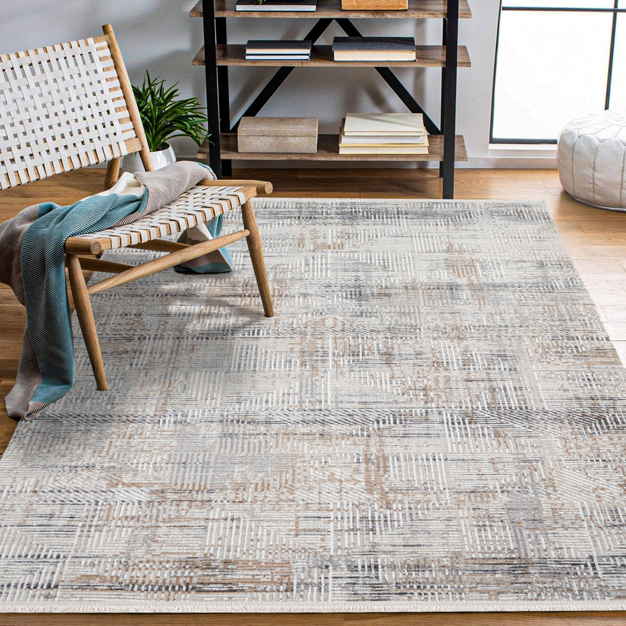 Silk Bej Çizgili Polipropilen Makine Halısı