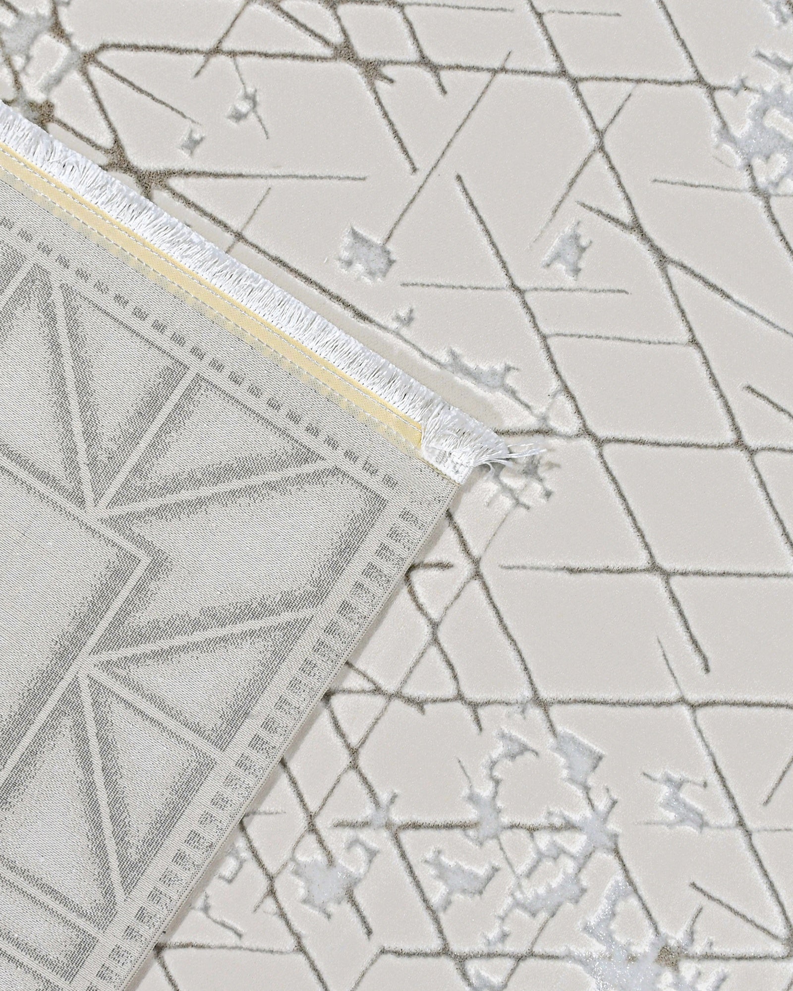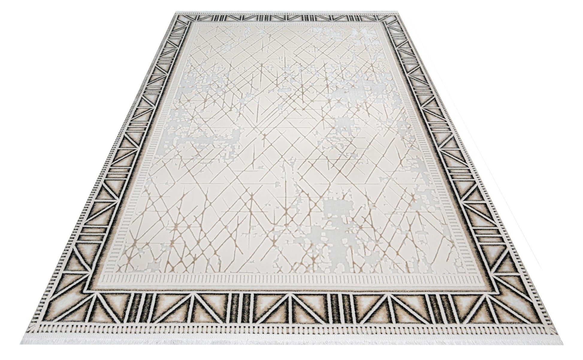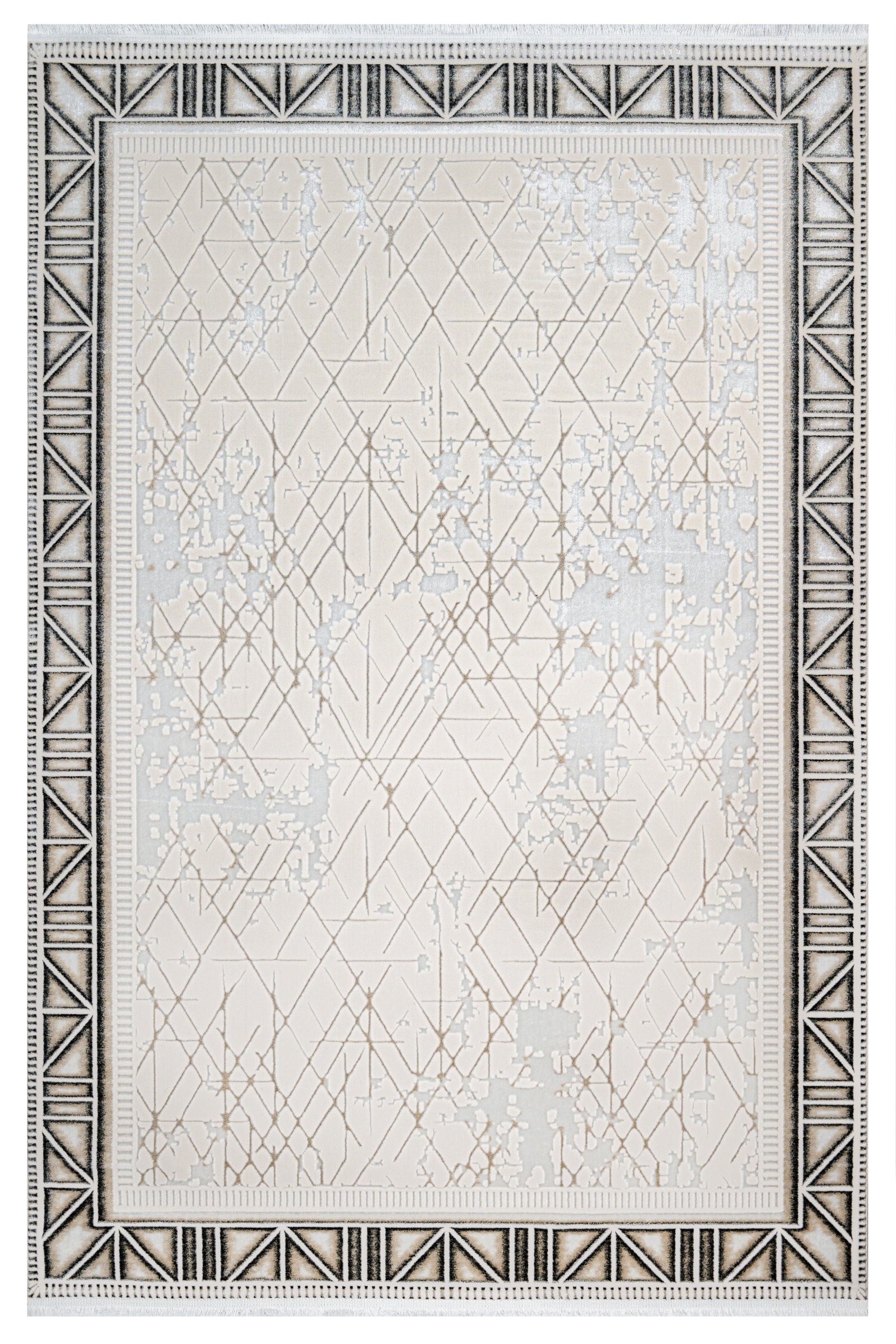 Skyla Krem Gri Çerçeveli Polyester Makine Halısı