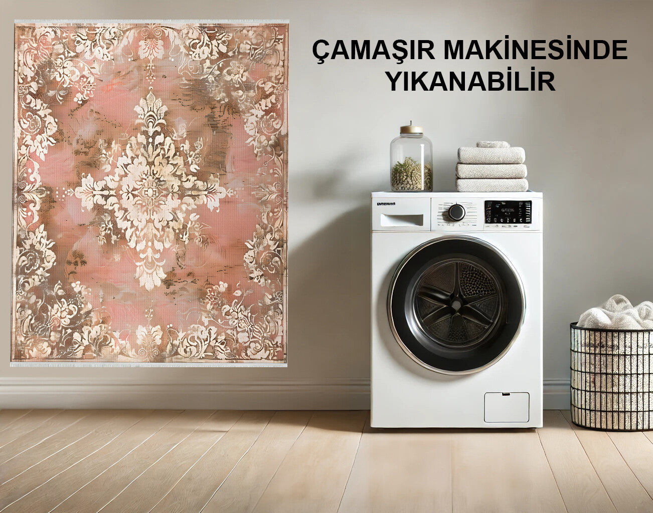 Somon Rengi Yıkanabilir Eskitme Halı