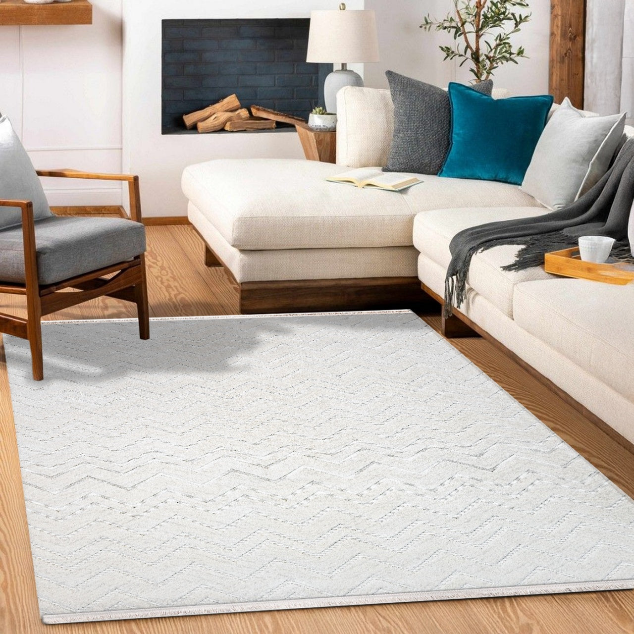 Spice Beyaz Geometrik Polyester Makine Alan Halısı
