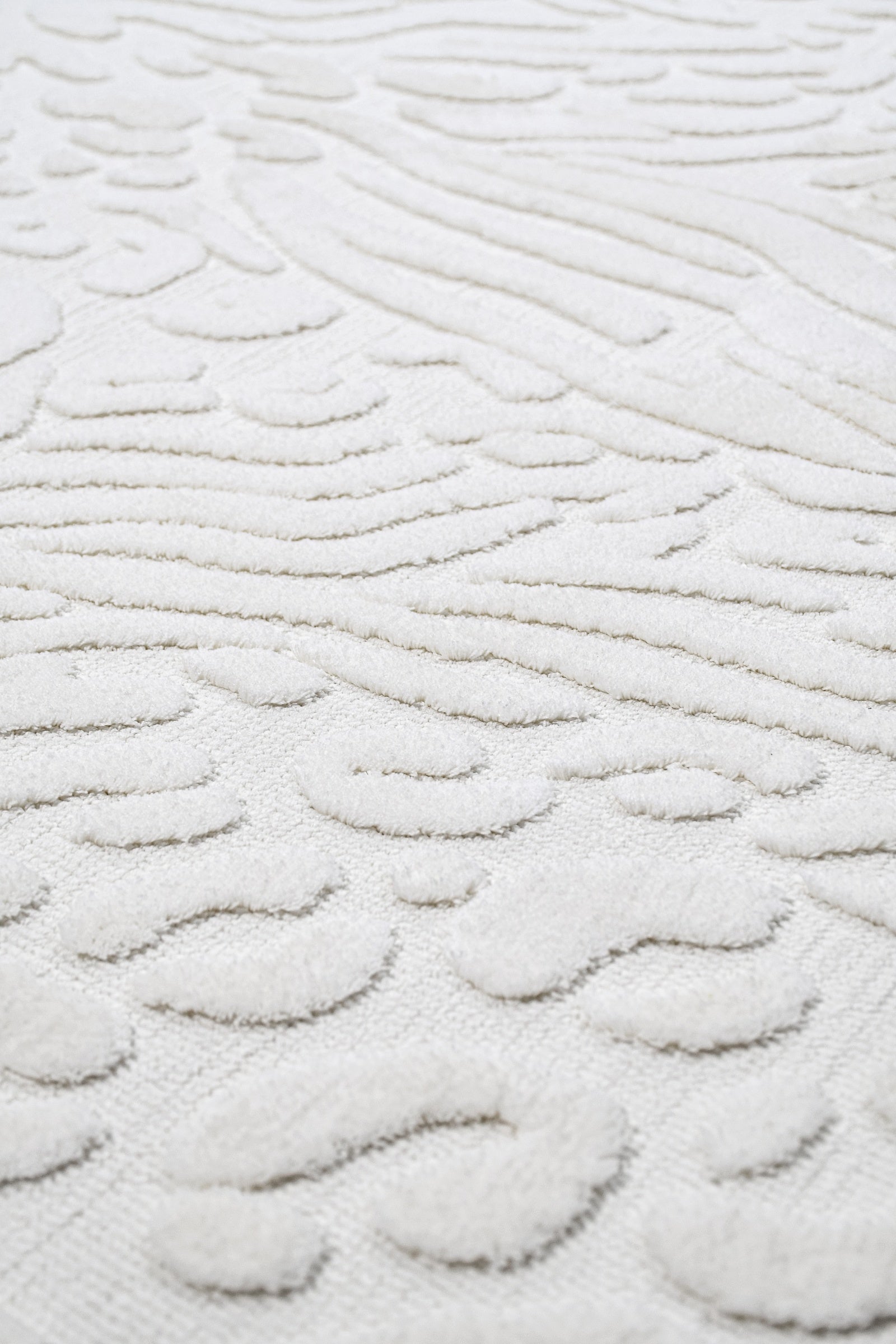 Spruce Beyaz Geometrik Polyester Makine Alan Halısı