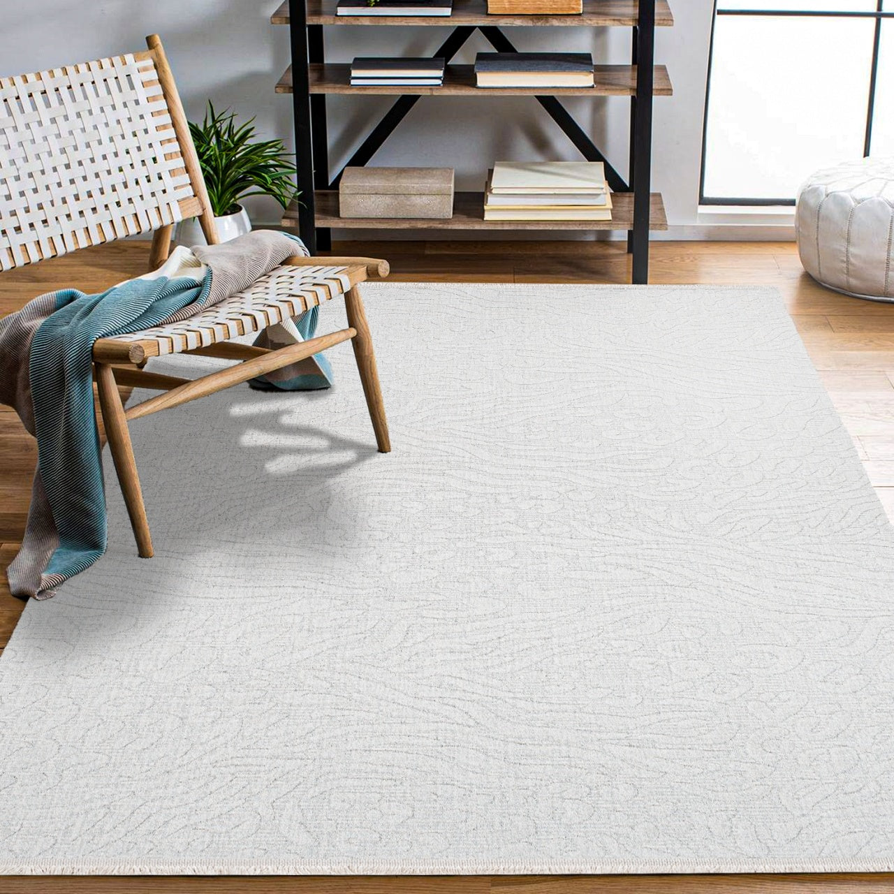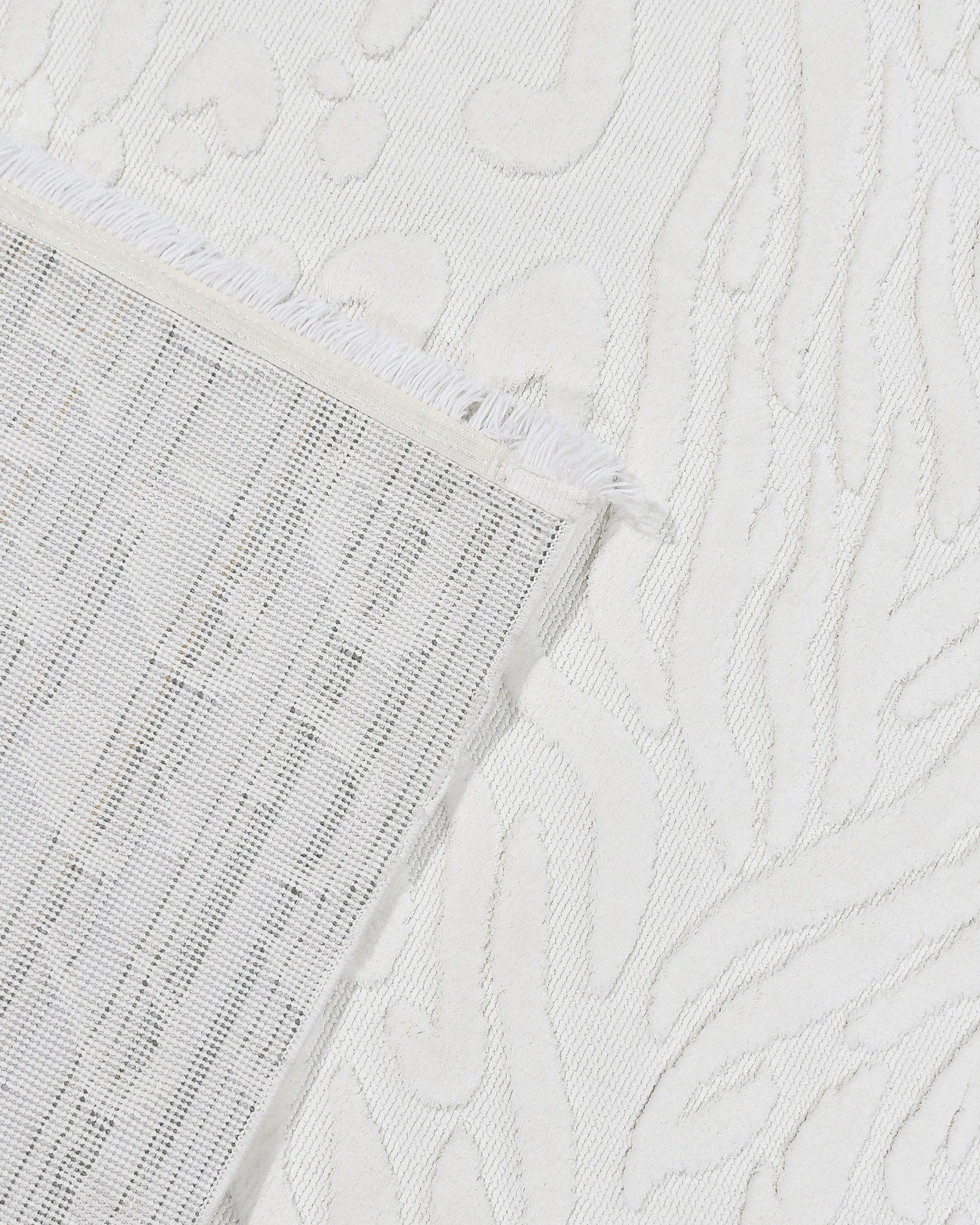 Spruce Beyaz Geometrik Polyester Makine Halısı