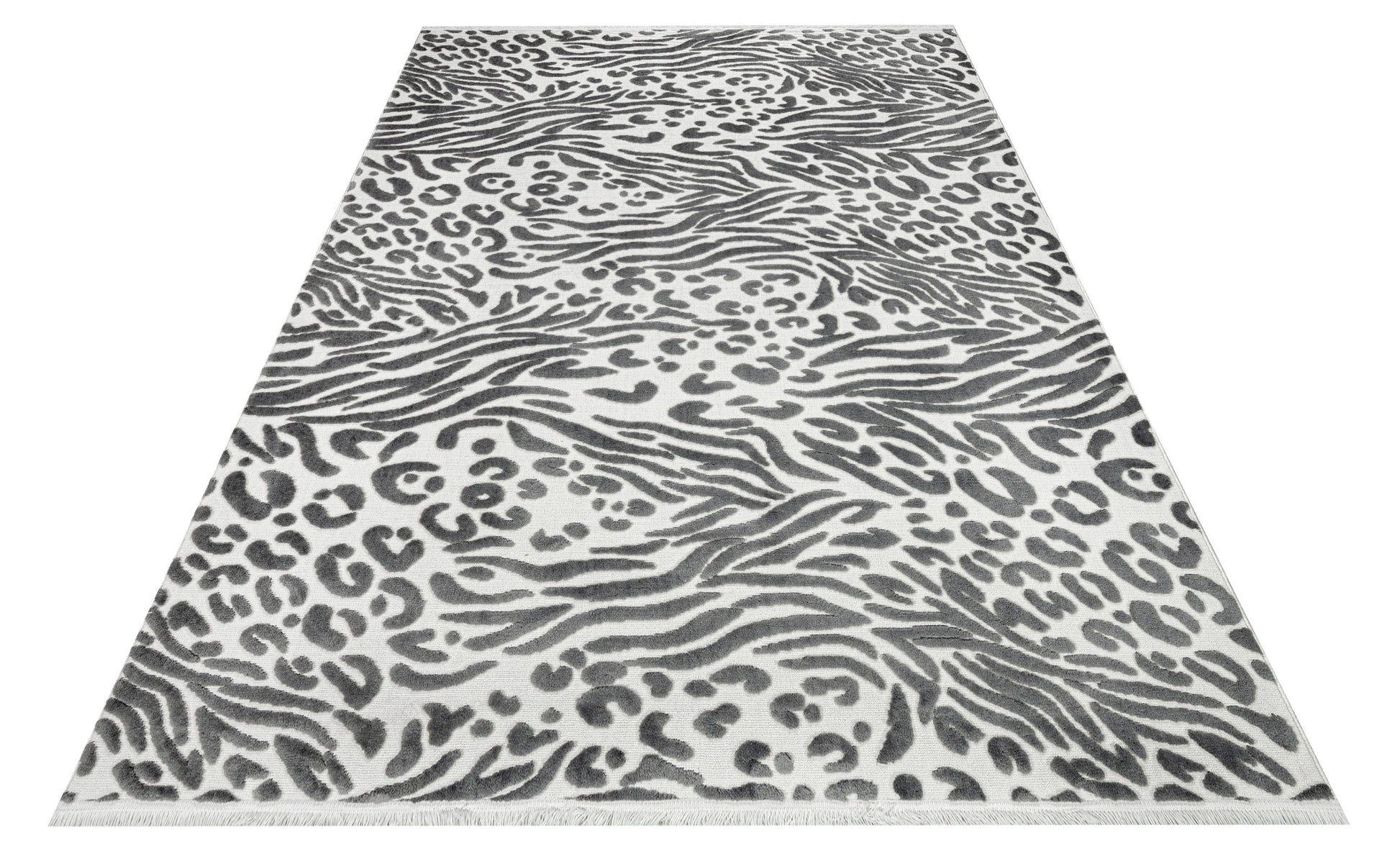 Sterling Gri Geometrik Polyester Makine Alan Halısı