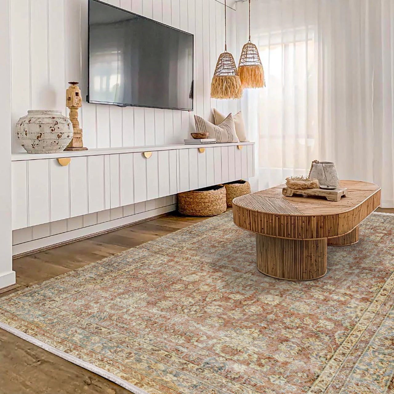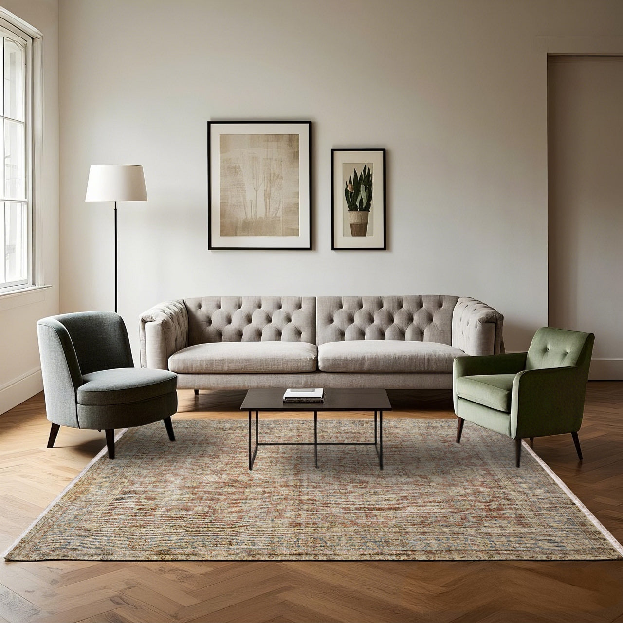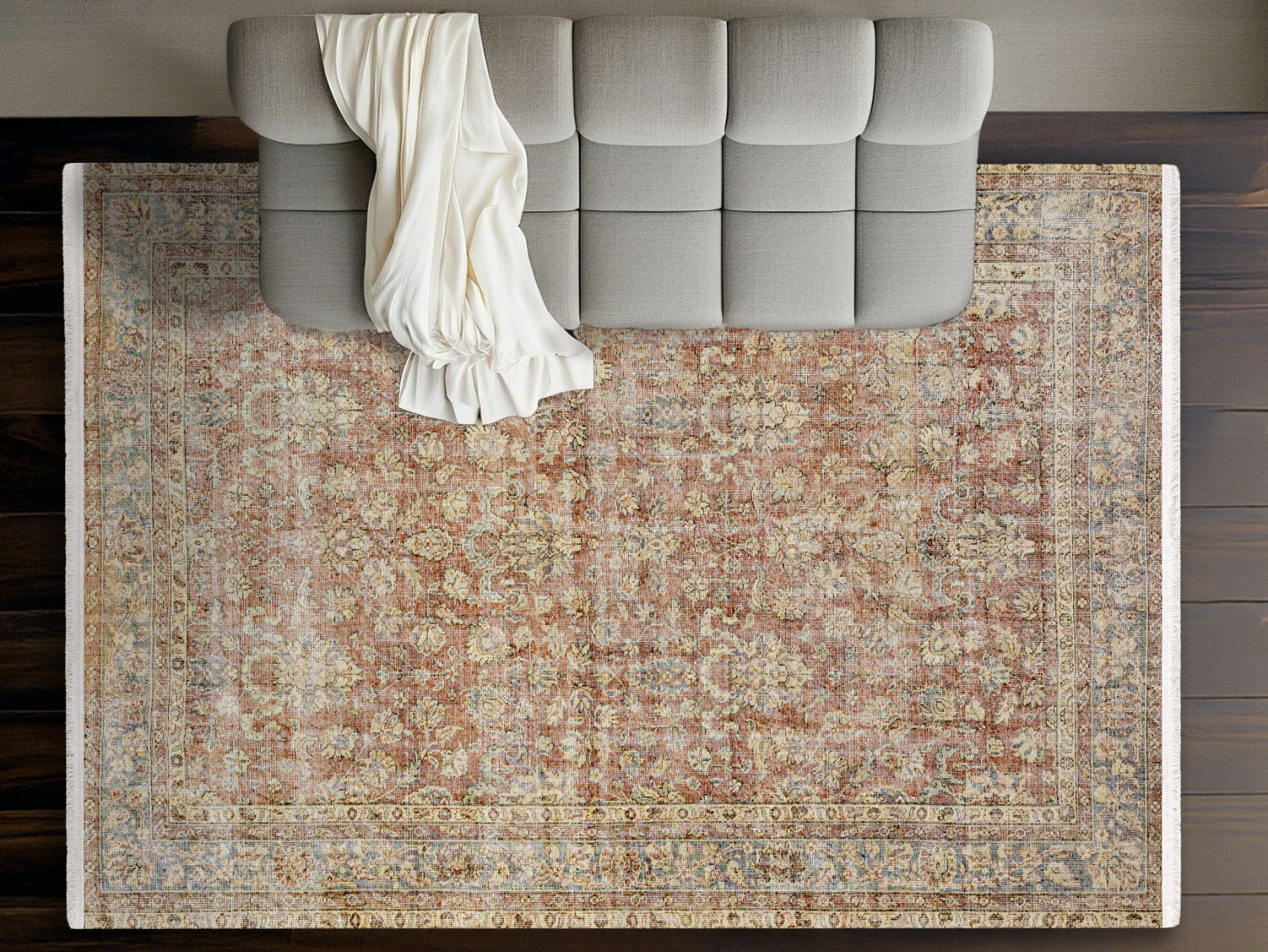 Vintage Bej Çiçekli Yün ve Pamuk El Dokuma Halı 156x240