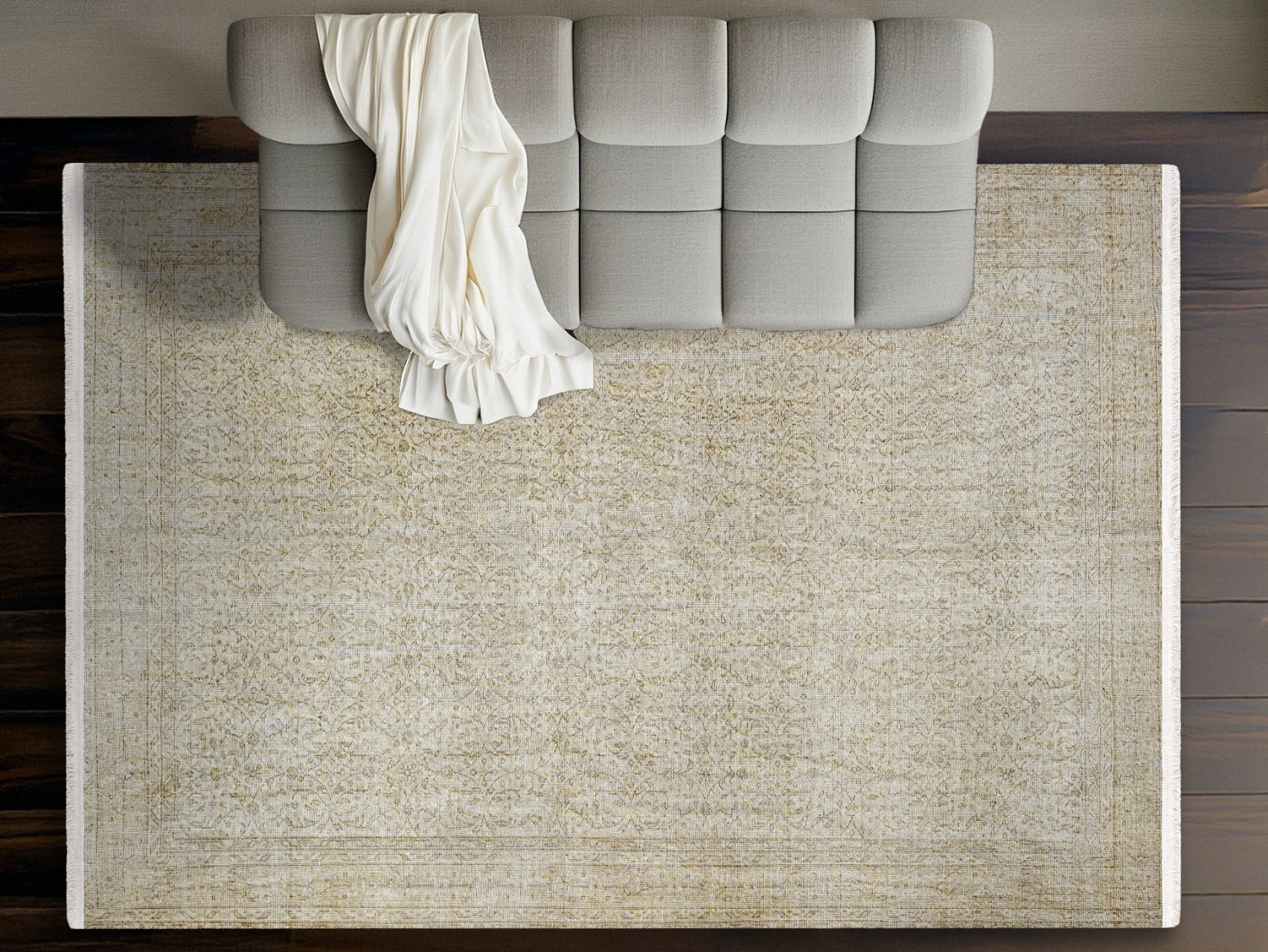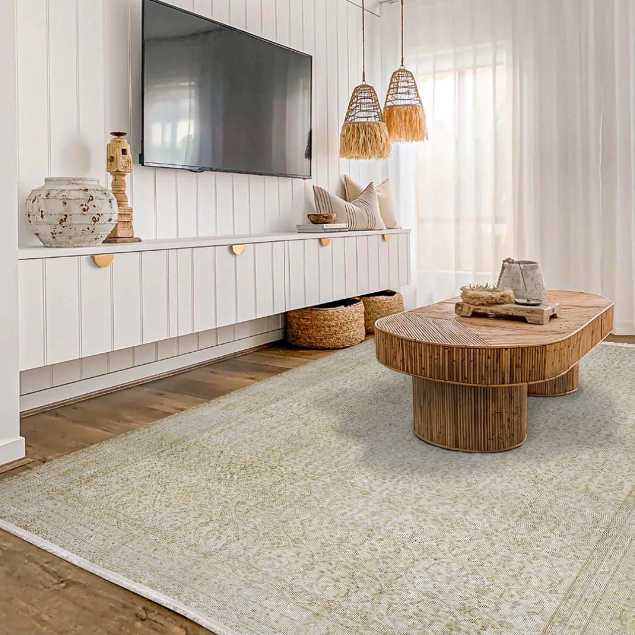 Vintage Bej Eskitme Yün ve Pamuk El Dokuma Halı 200x300