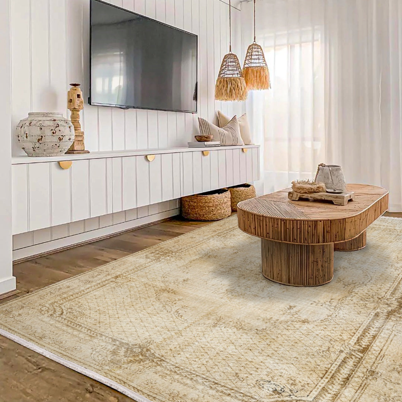 Vintage Bej Göbekli Yün ve Pamuk El Dokuma Halı 164x273