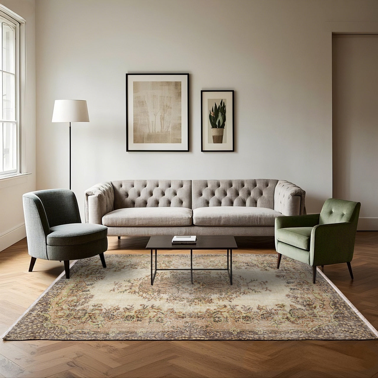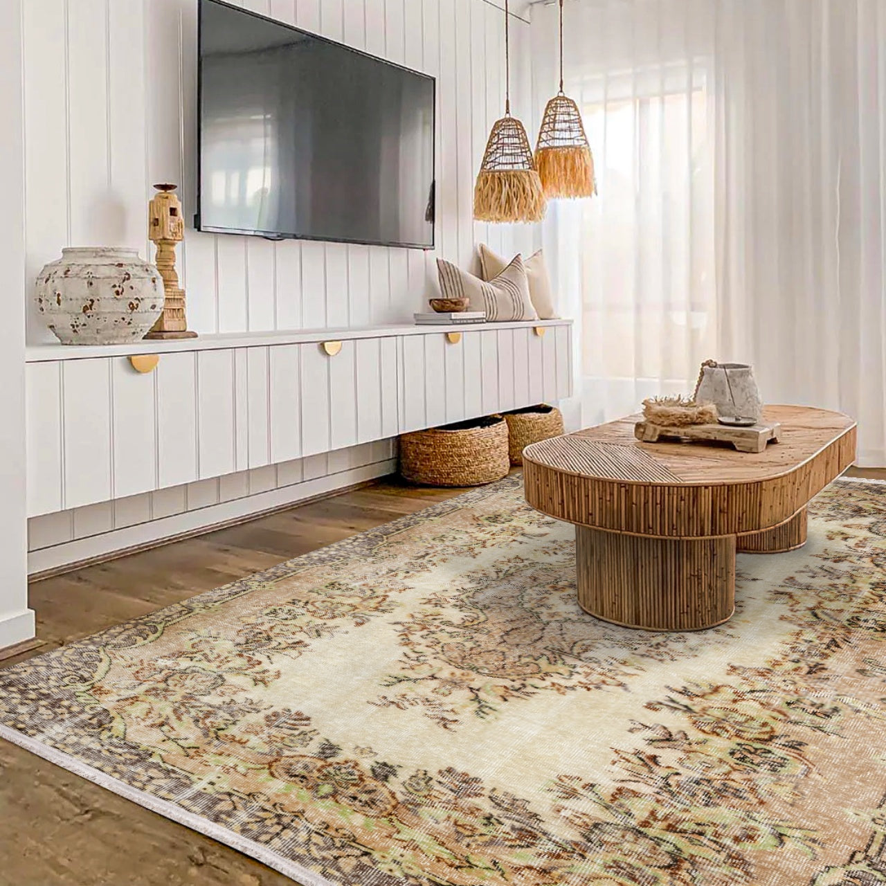 Vintage Bej Göbekli Yün ve Pamuk El Dokuma Halı 167x268