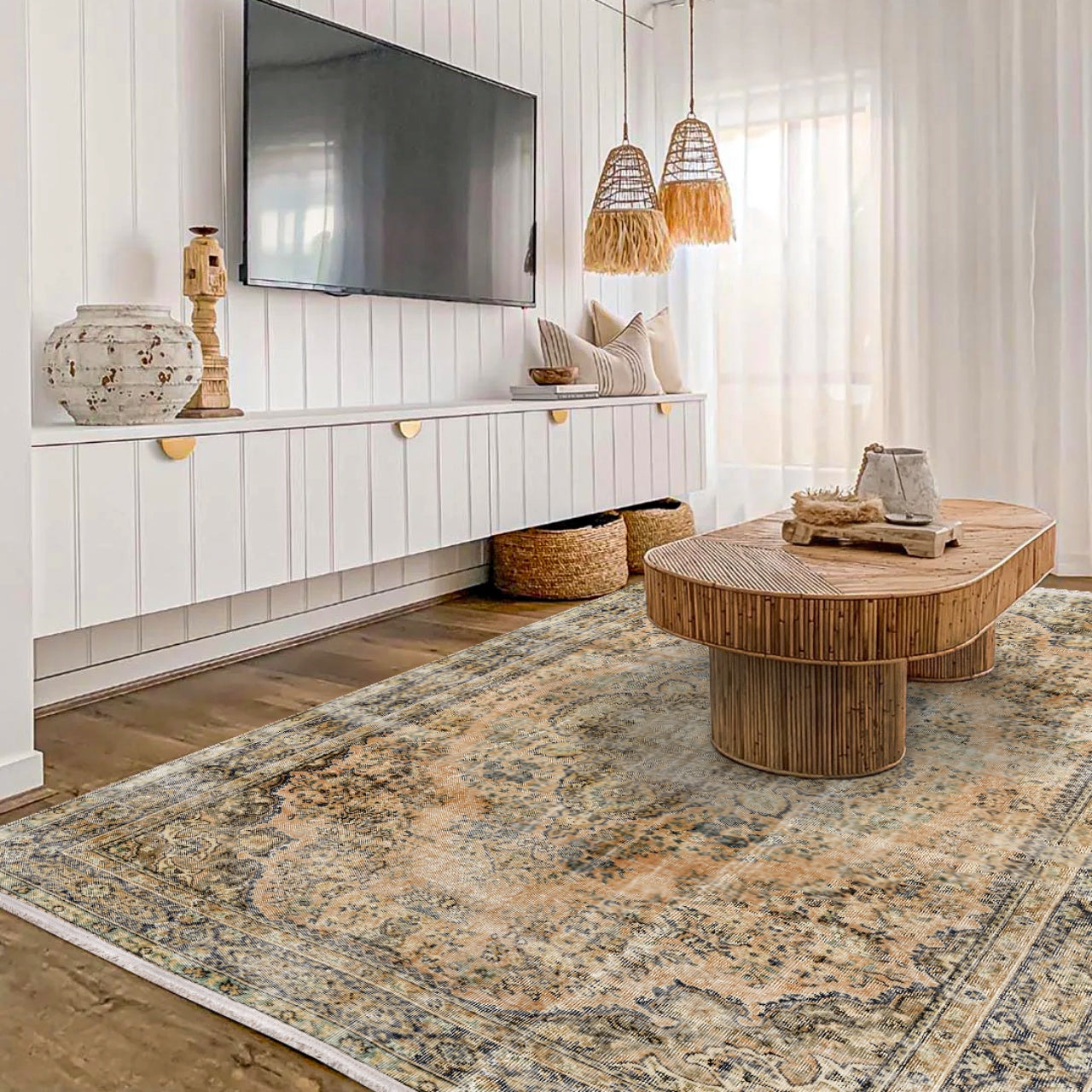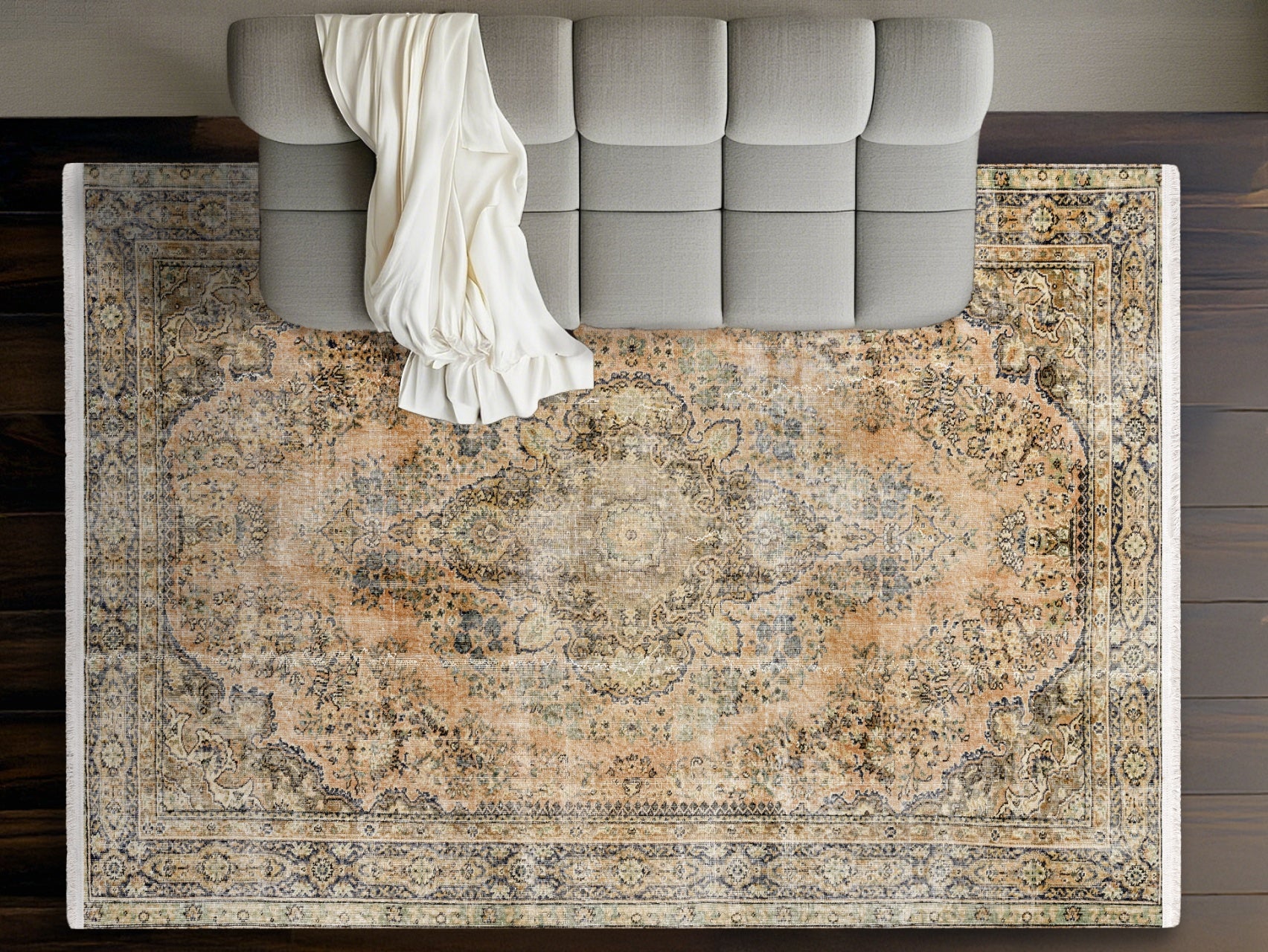 Vintage Bej Göbekli Yün ve Pamuk El Dokuma Halı 178x280