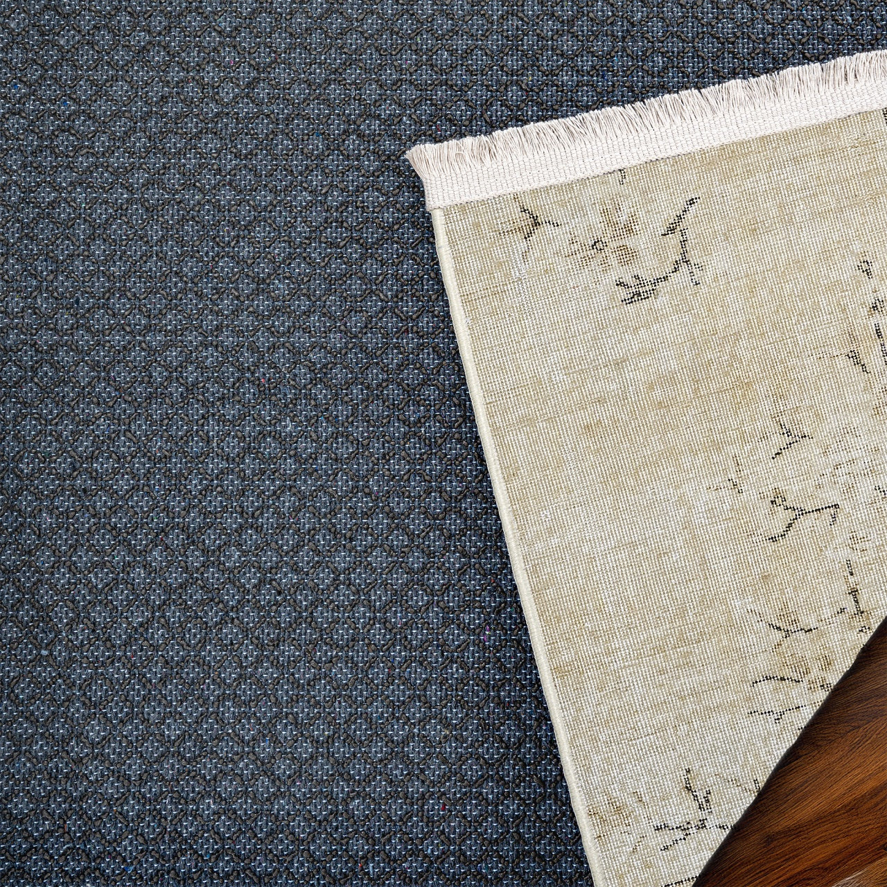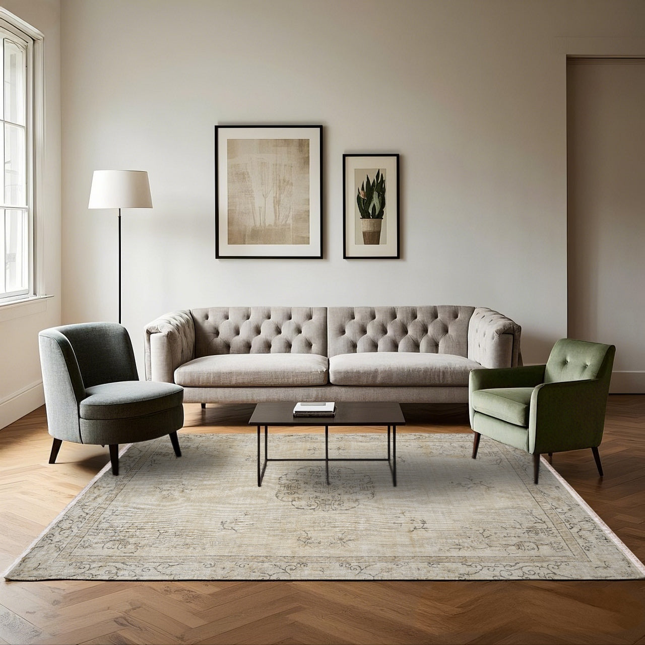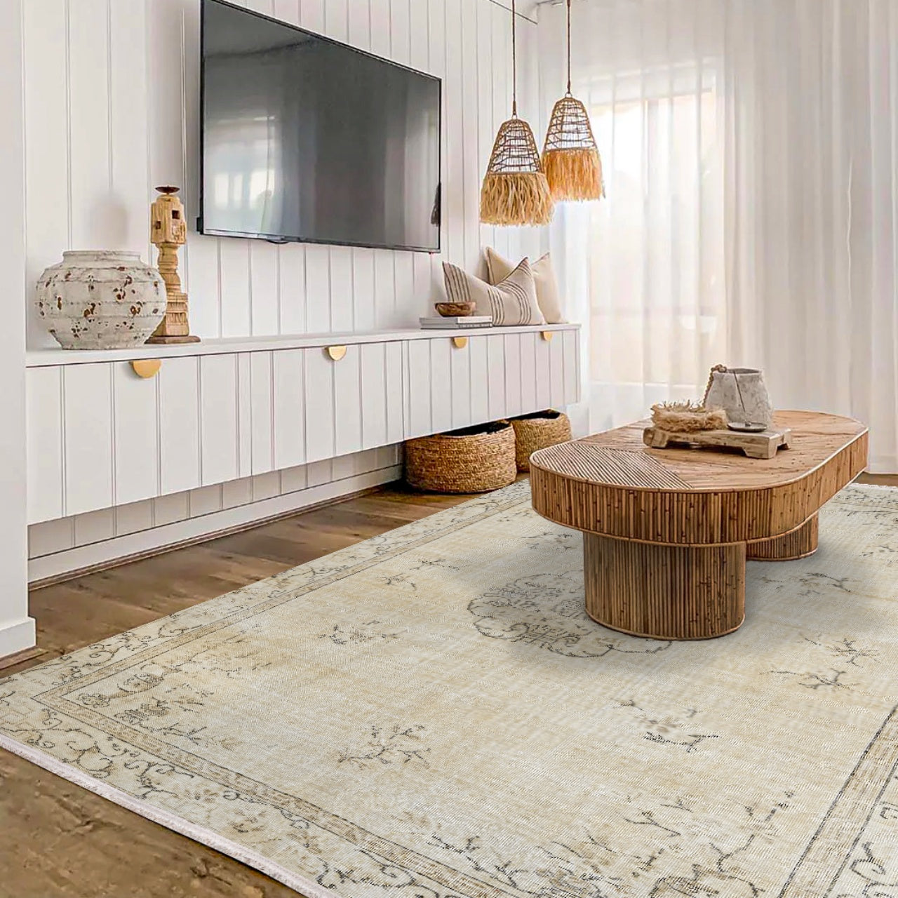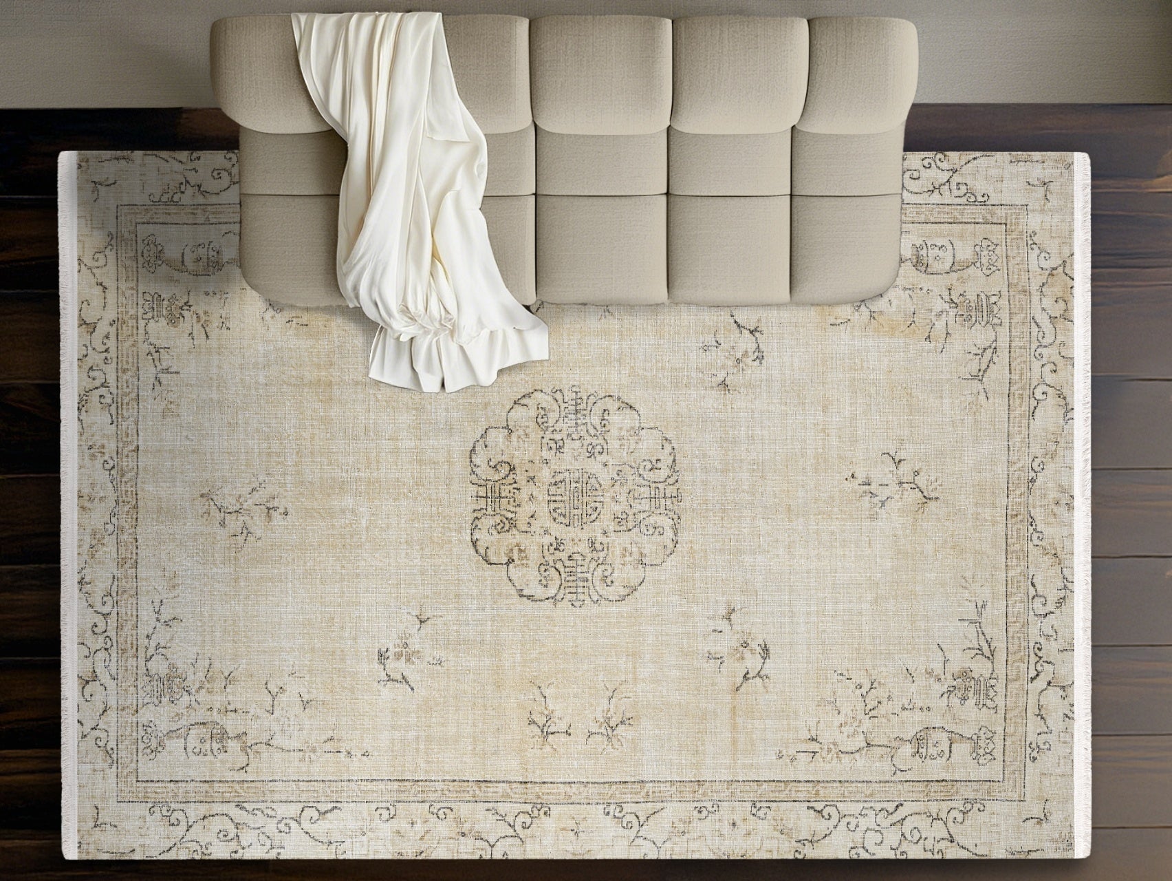 Vintage Bej Göbekli Yün ve Pamuk El Dokuma Halı 206x298