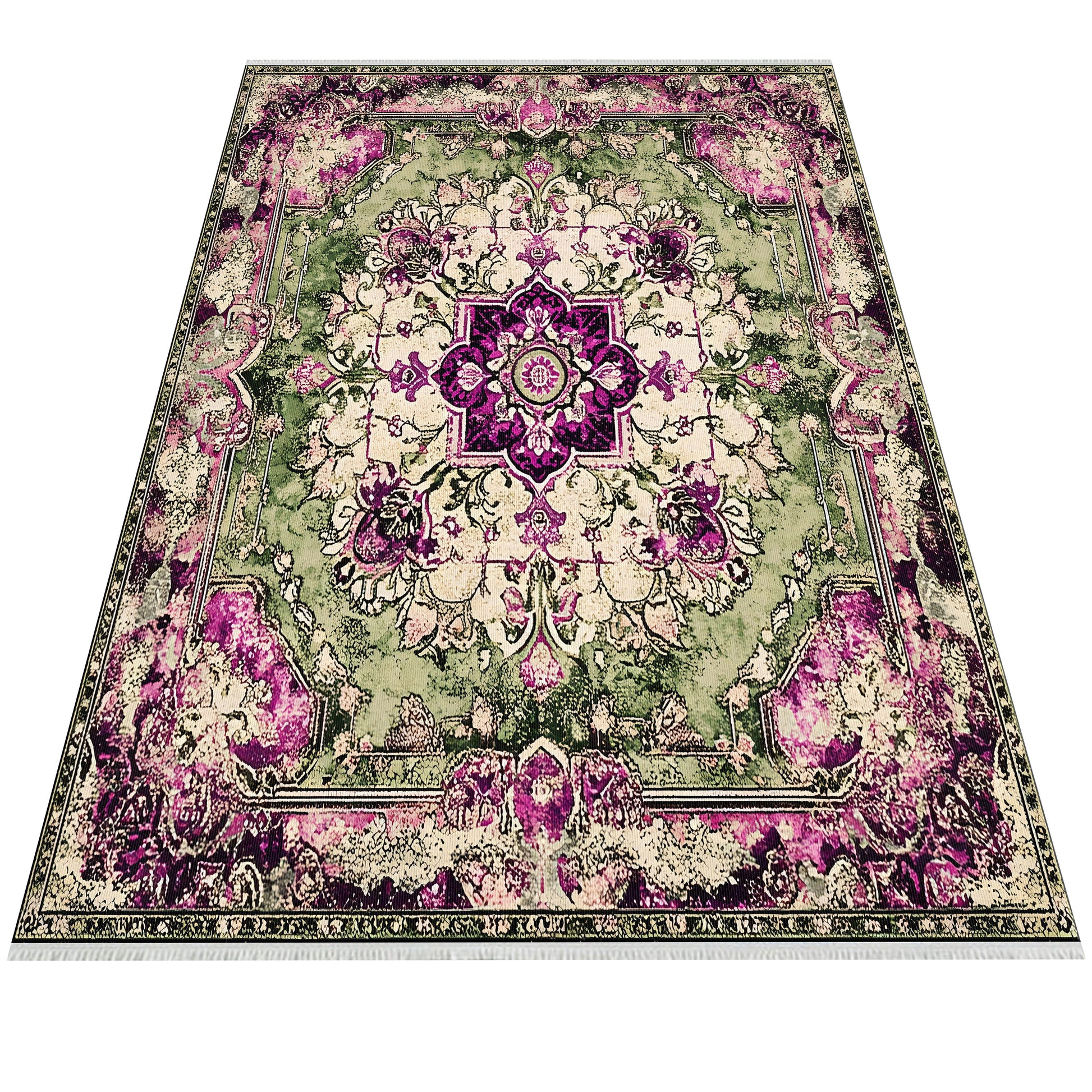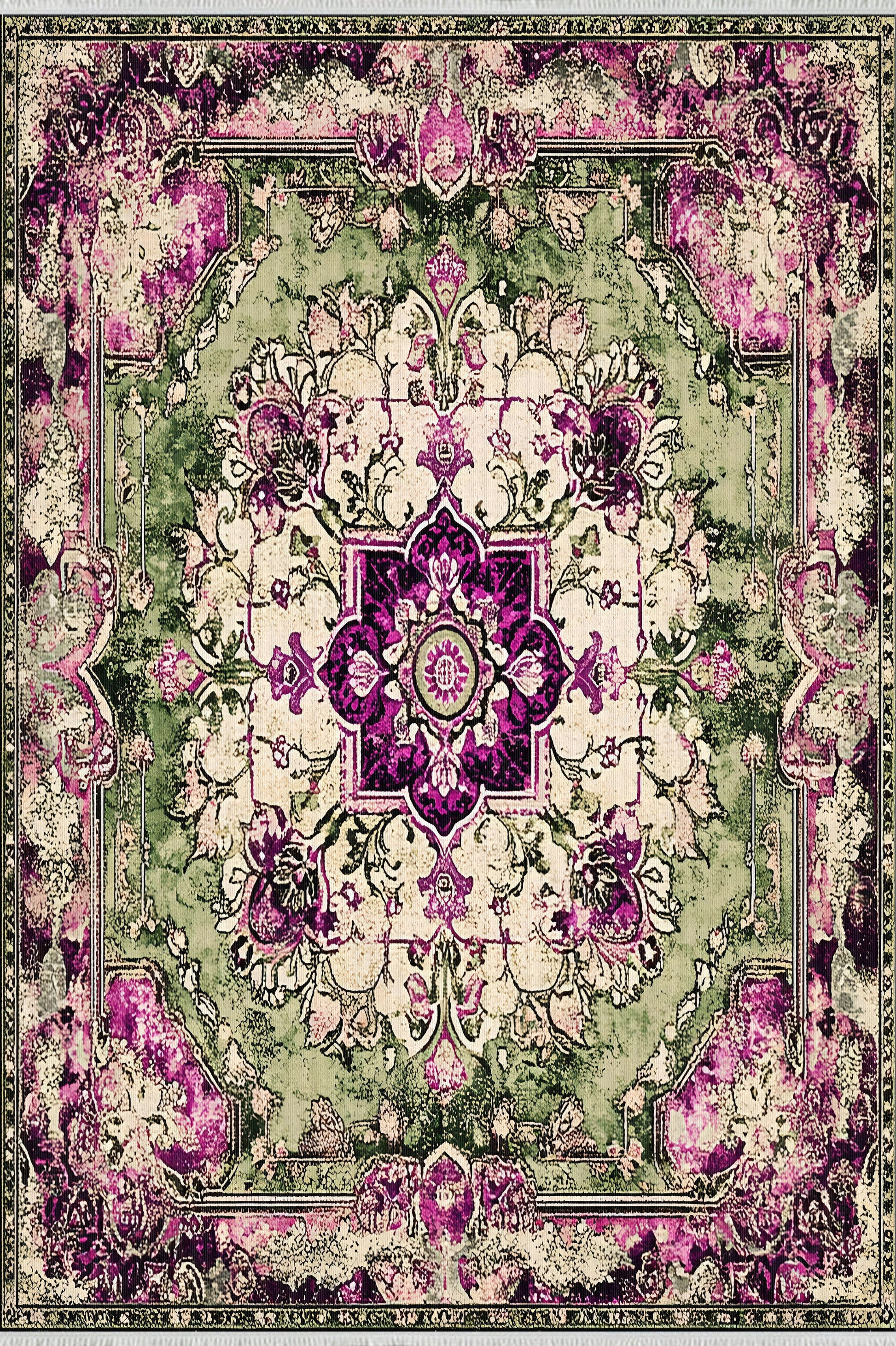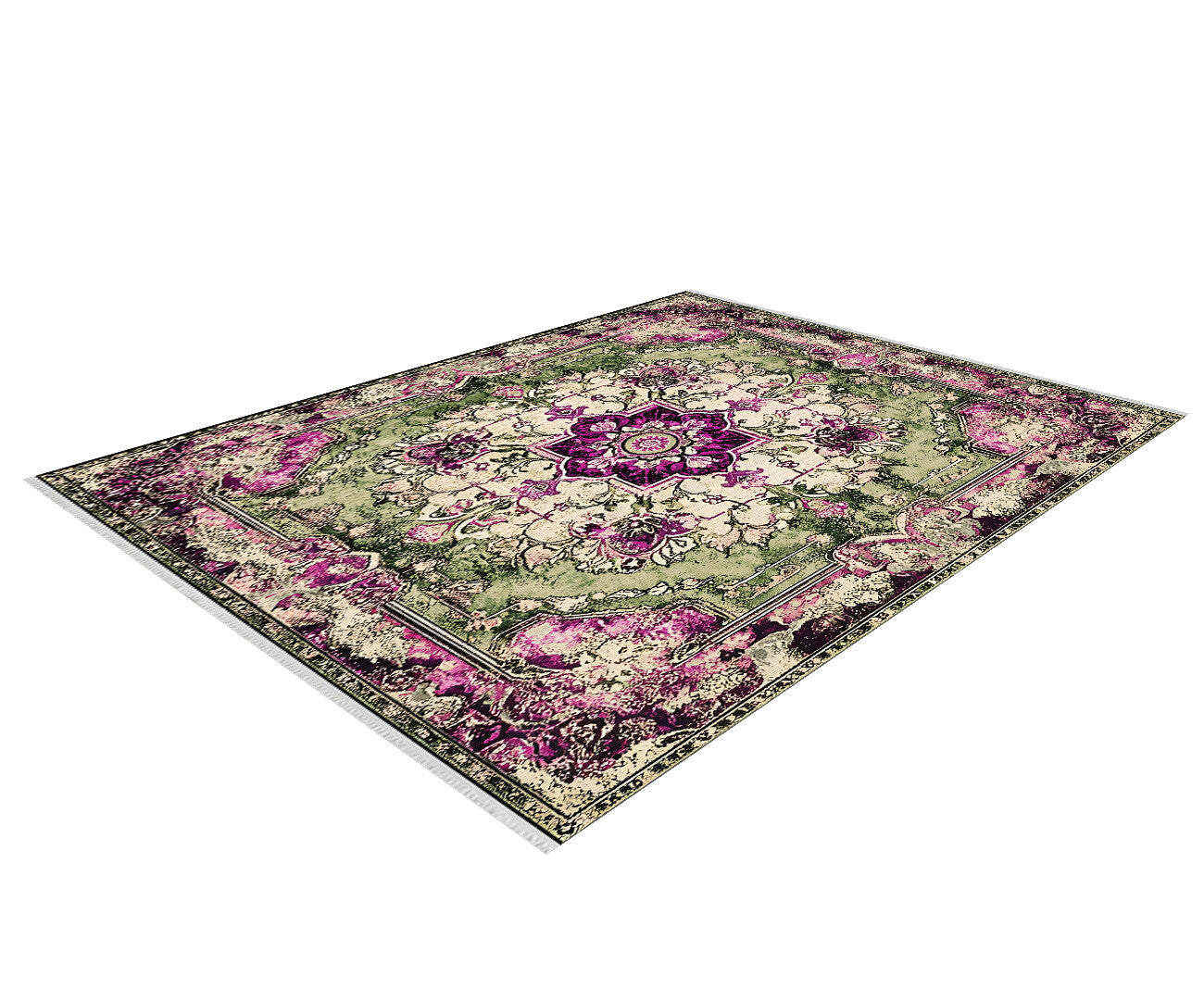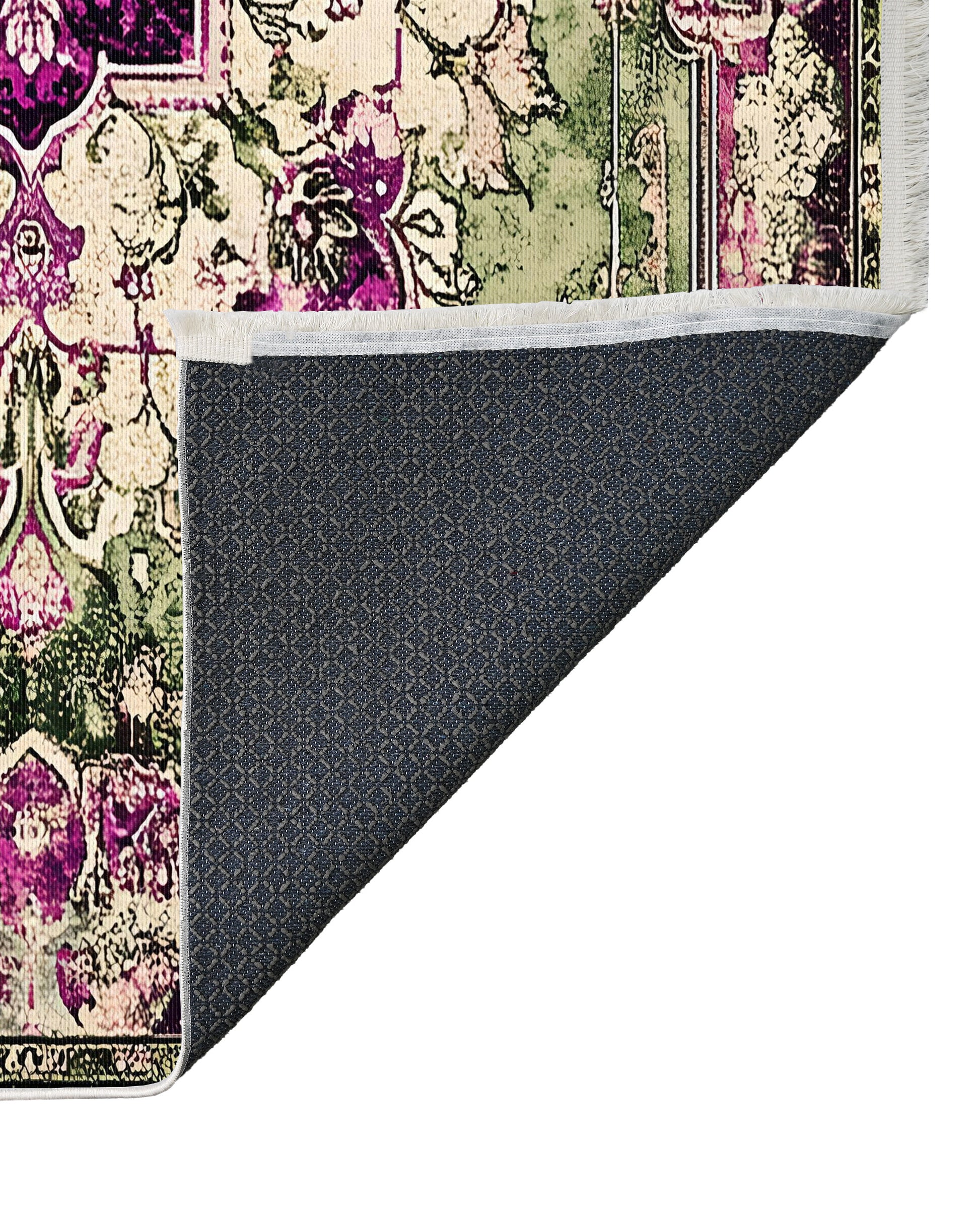 Vintage Çiçek Desenli Yıkanabilir Halı